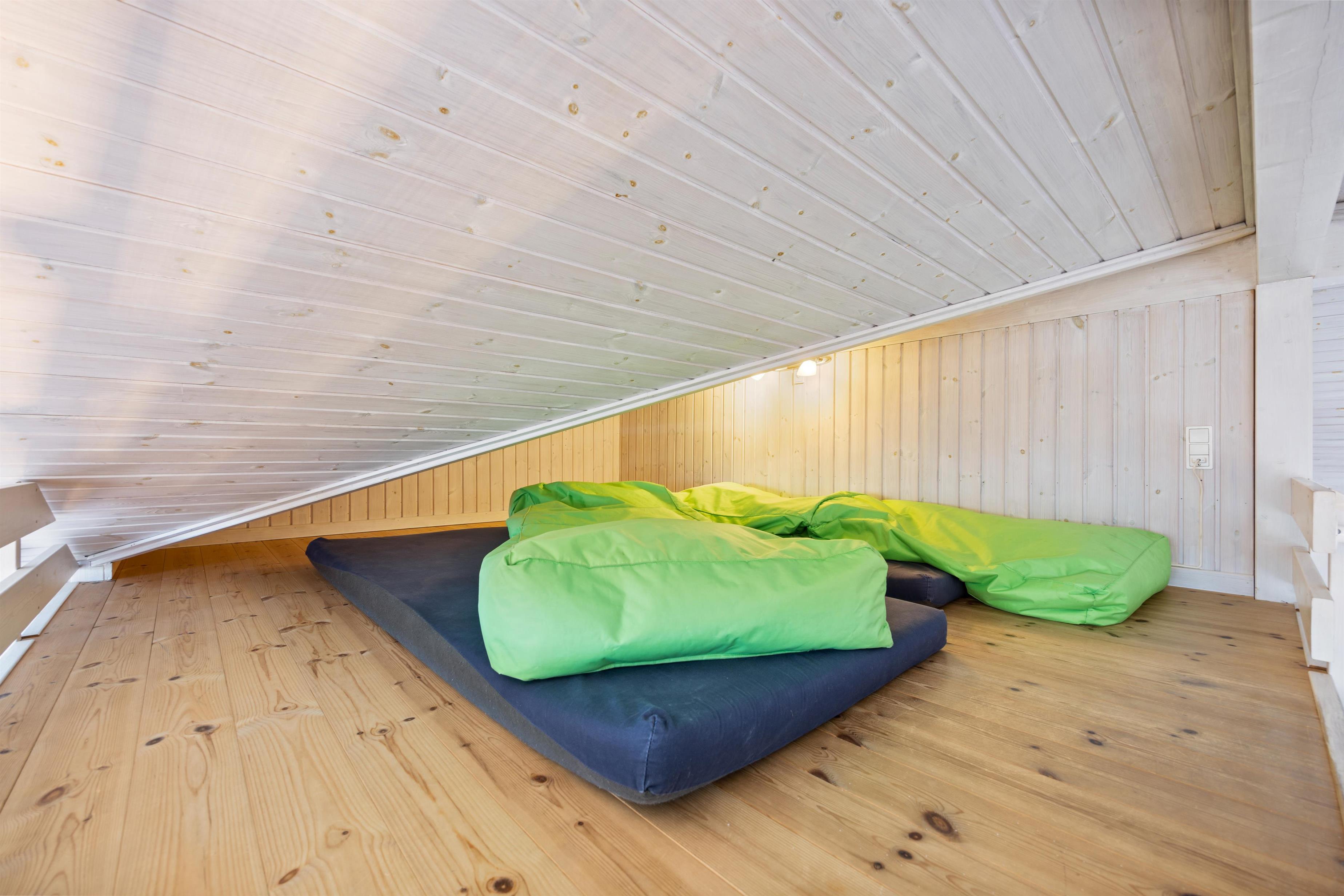 Feriehuset har desuden en hyggelig hems, som er en oplagt afslapningsmulighed for de mindste, og hvorfra der er blik til stuen.
