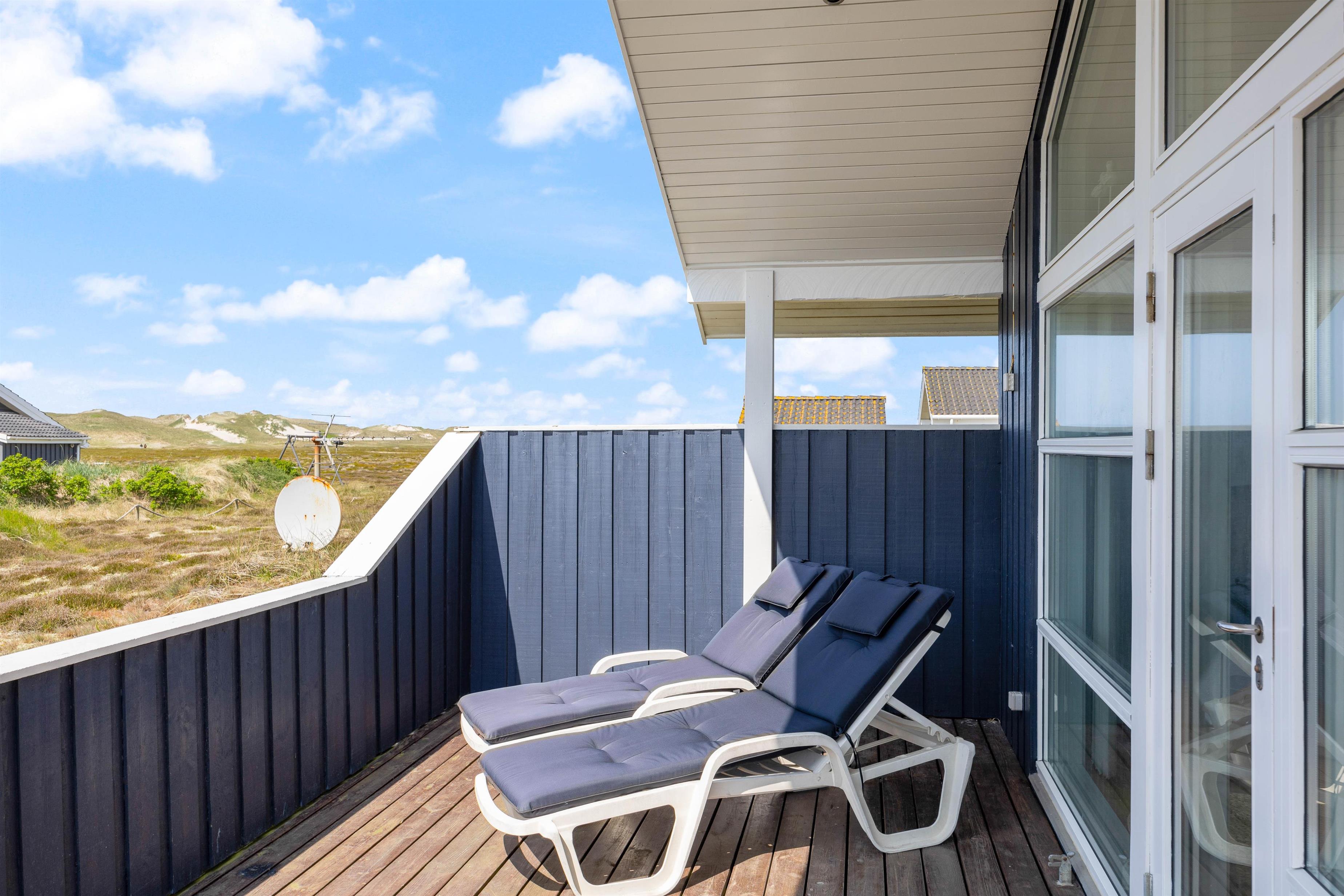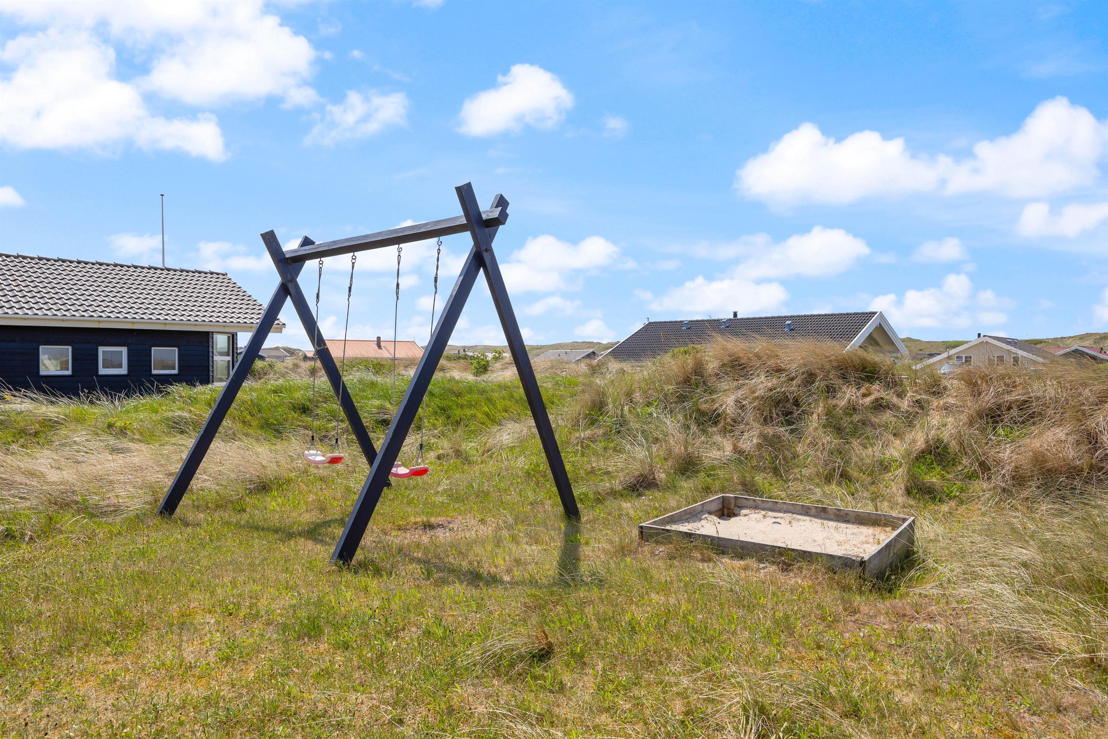 På feriehusets delvis afskærmede terrasser er der gode havemøbler og liggestole til afstressende feriehygge f. eks. med soldyrkning eller dejlige grillaftener. For familiens mindste er der gyngestativ og sandkasse.