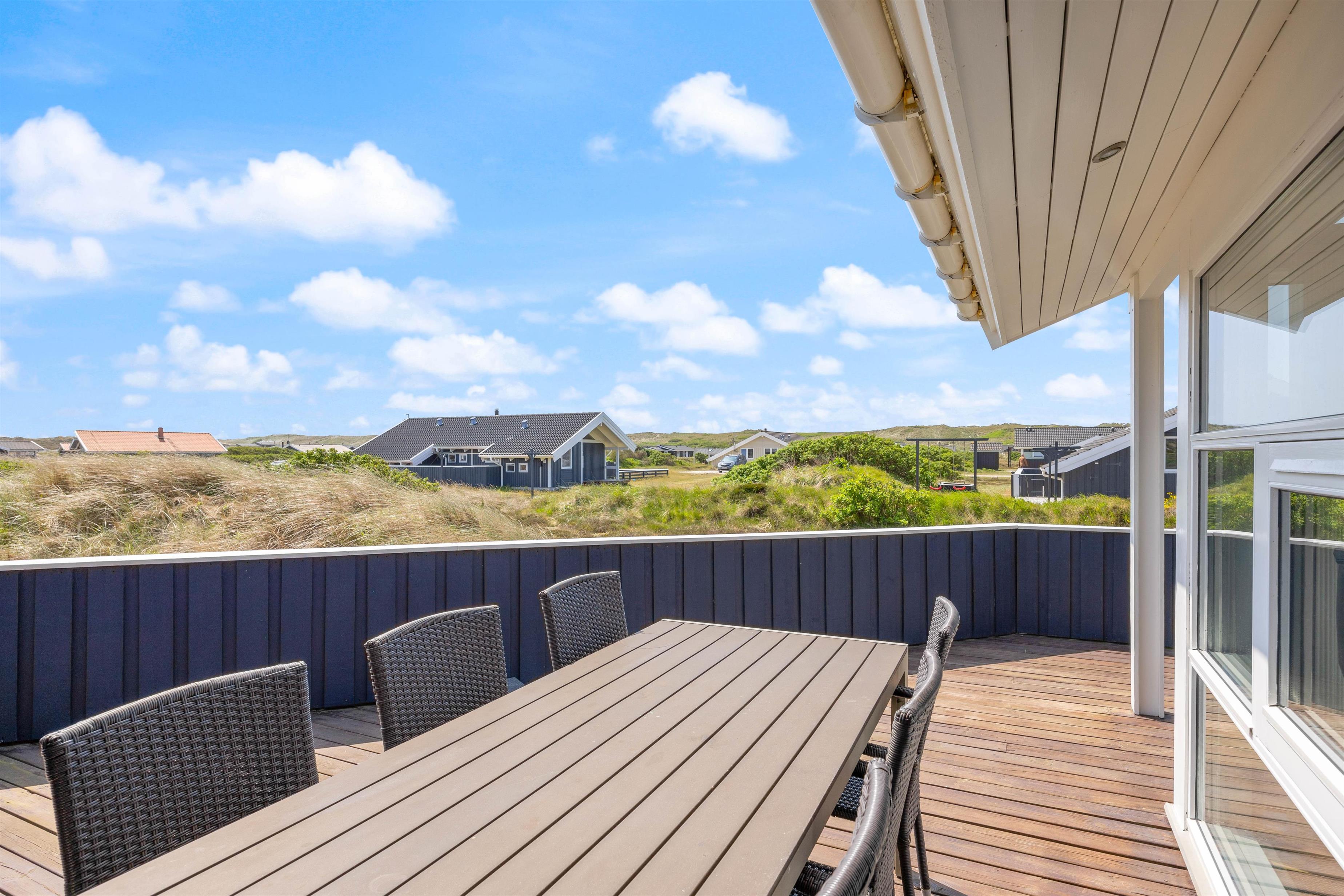 Til en vellykket familieferie er her et dejligt feriehus med lys og venlig indretning, samt spa og sauna. Feriehuset har en virkelig god beliggenhed tæt på et stort fredet hedeområde. Sommerhuset har desuden fine, delvis afskærmede terrasser, hvor I kan hygge jer med et lækkert grillmåltid. Fra sommerhuset er der blot 350 meter til stranden, som indbyder til lange gåture i den friske havluft.