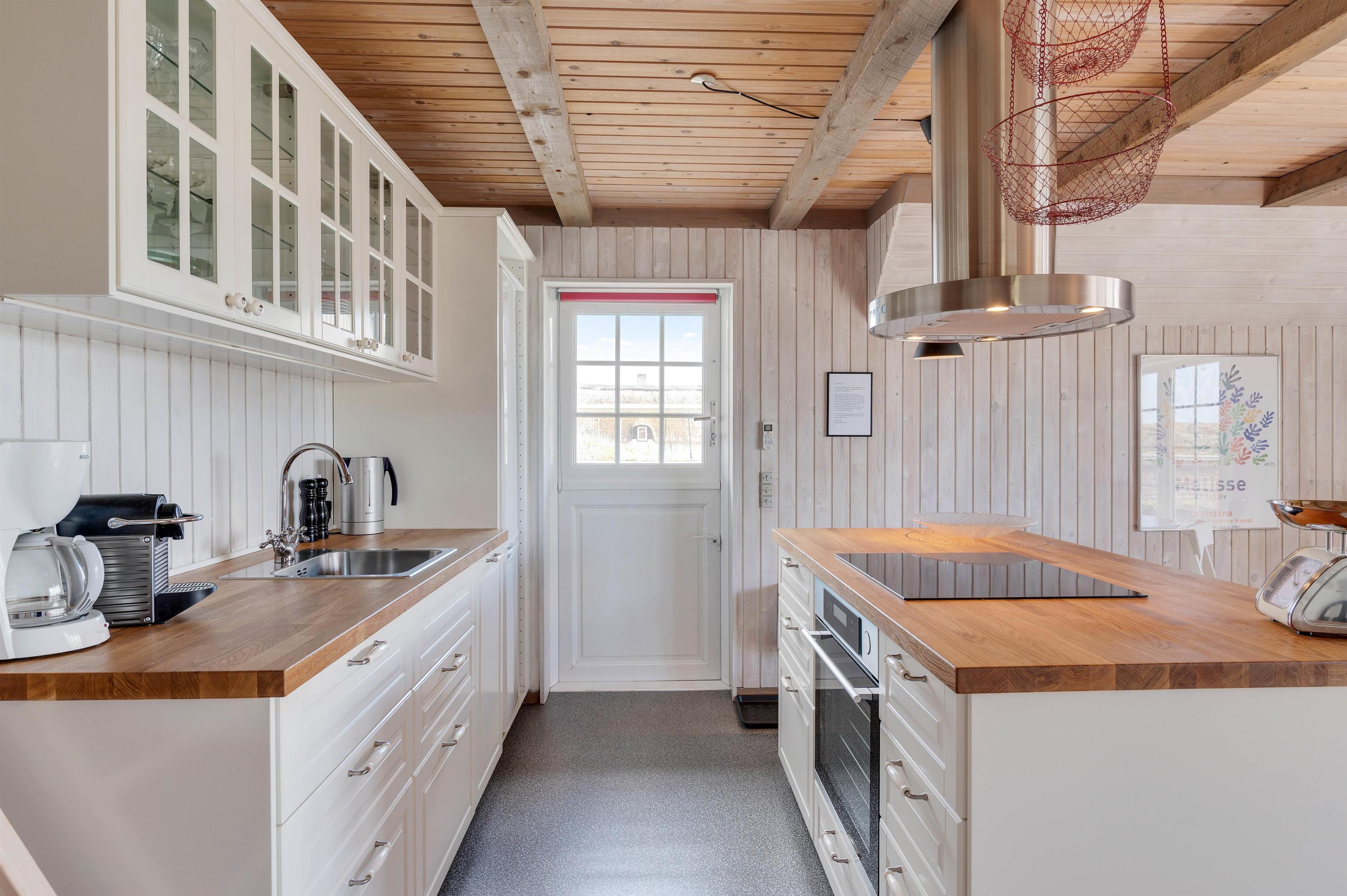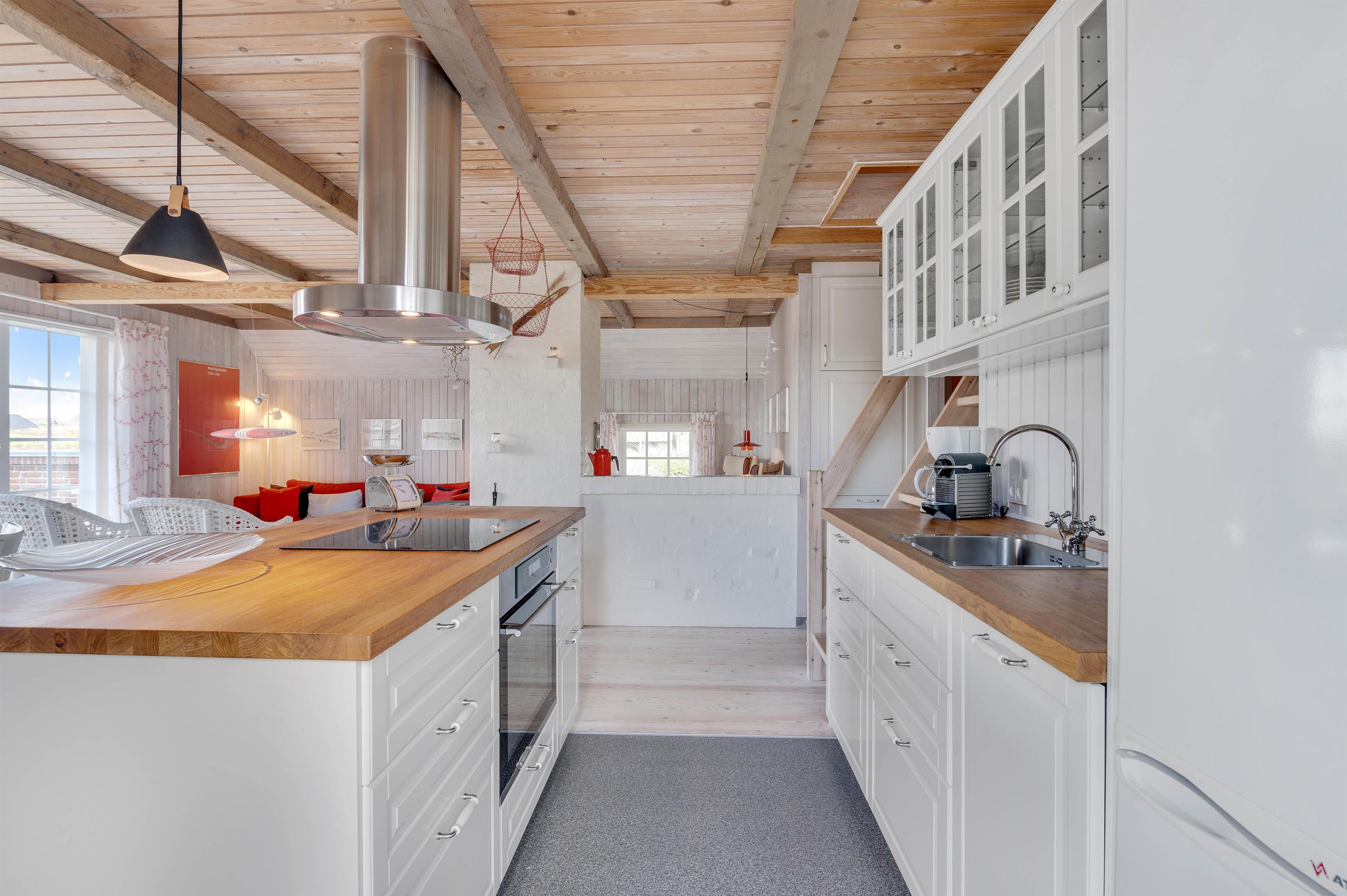 Køkkenet ligger i åben forbindelse med stuen, så familien kan være sammen mest muligt under jeres ferie – også når der skal laves et lækkert måltid i det veludstyrede køkken.
