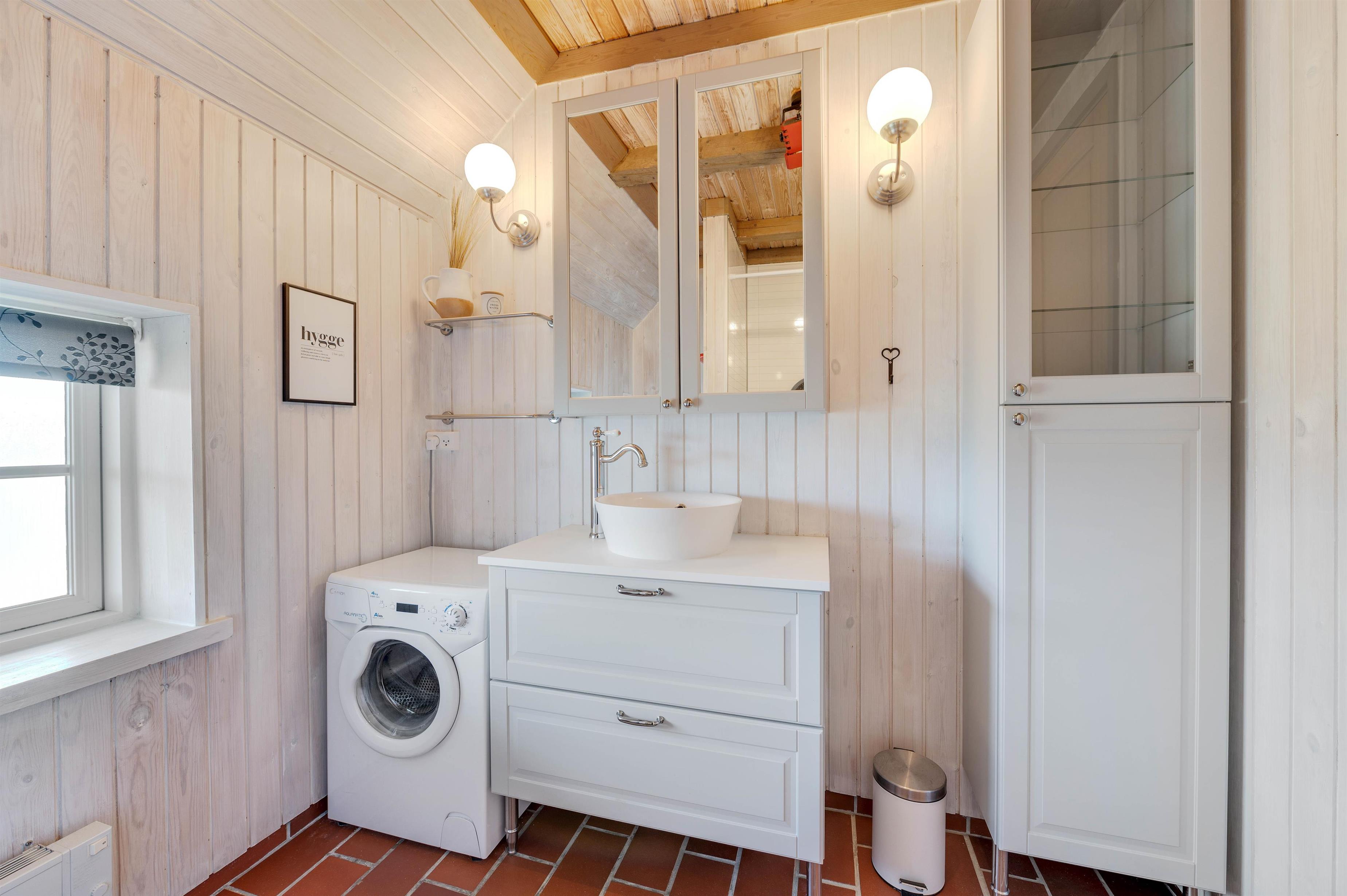 Sommerhuset har en vaskemaskine og en energibesparende varmepumpe, som I kan benytte jer af.