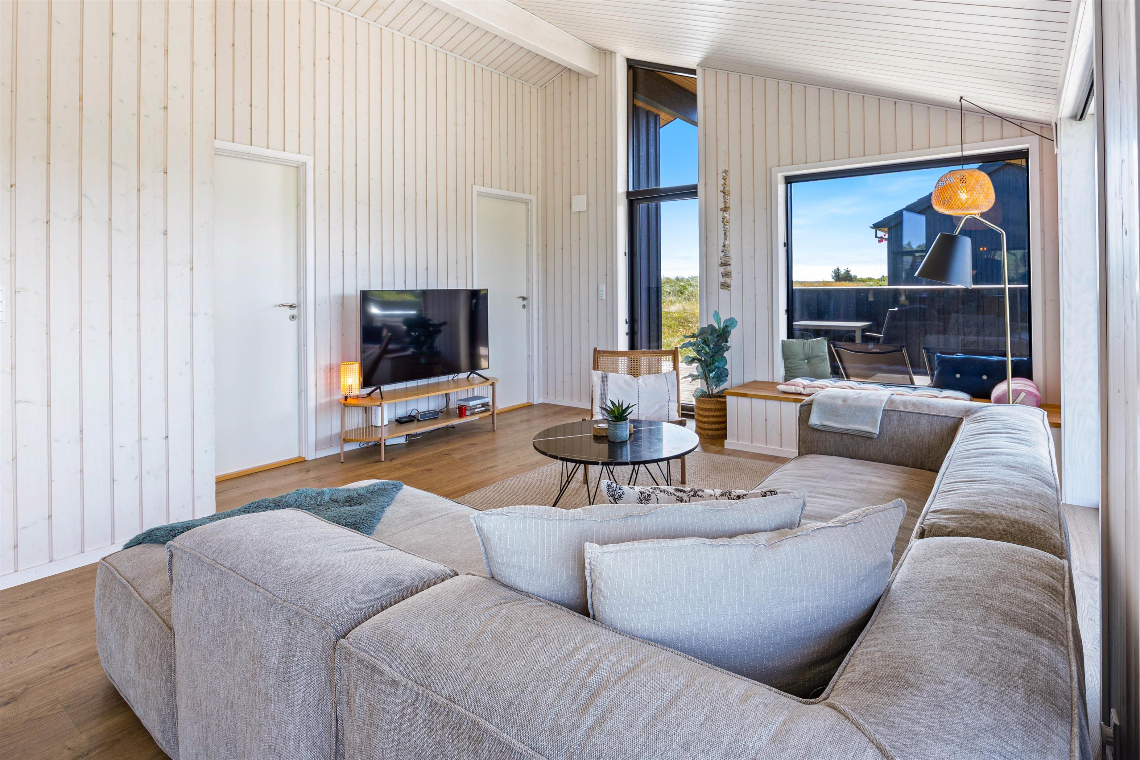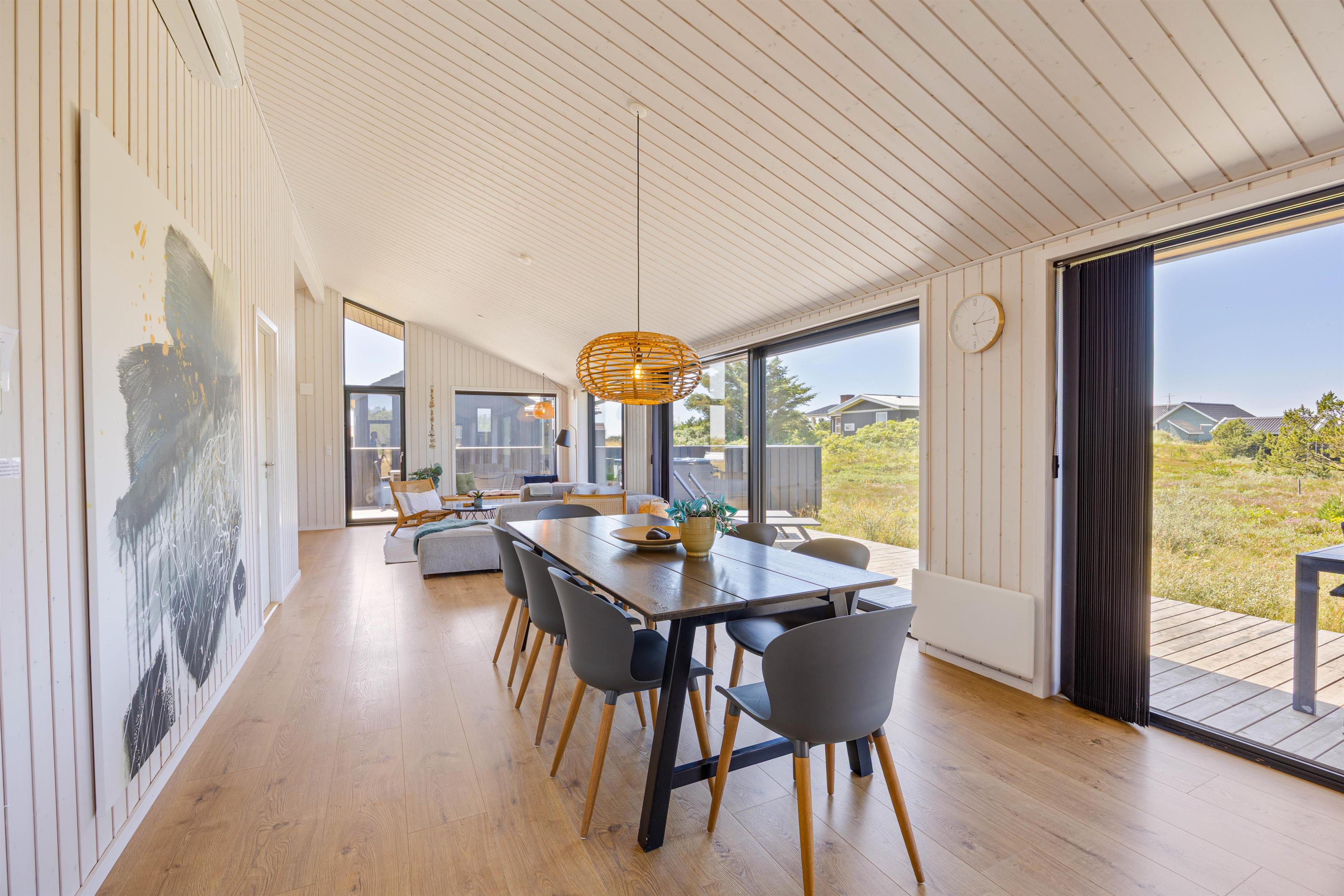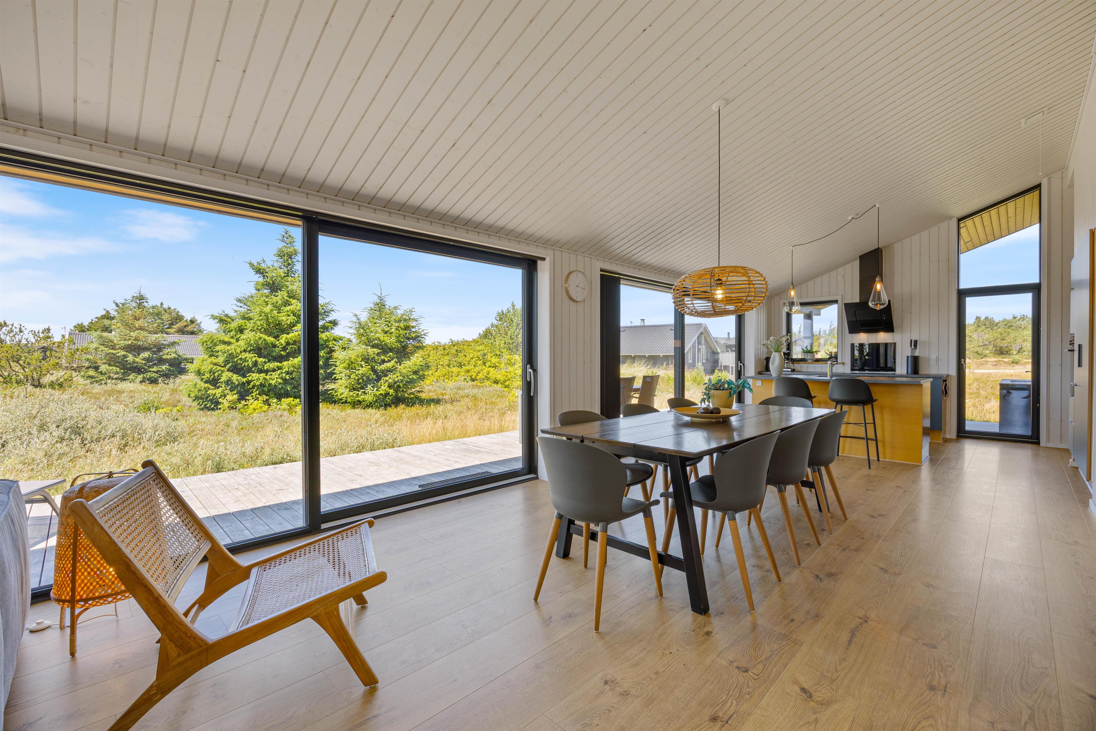 I feriehuset er der lynhurtigt internet samt Chromecast, så I har mulighed for at streame musik eller film til hele familien under jeres ophold. Nyd en hyggeaften i sofaen med en god film og popcorn eller tag et familiespil ved det store spisebord. I kan også sætte jer på bænken ved det store vindue, hvorfra I kan nyde den uforstyrrede udsigt til den smukke natur, heden og klitlandskabet og nyde stilheden.