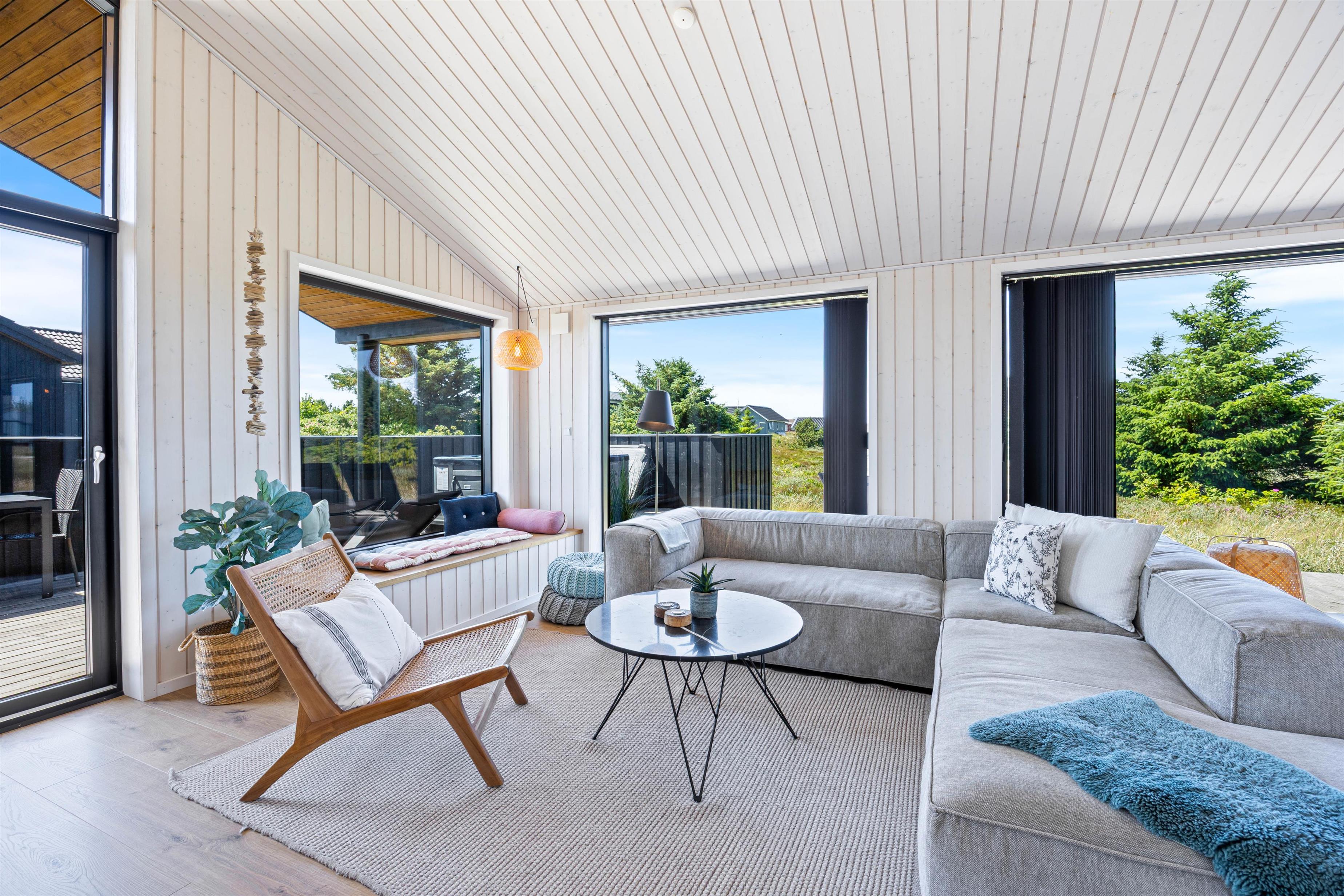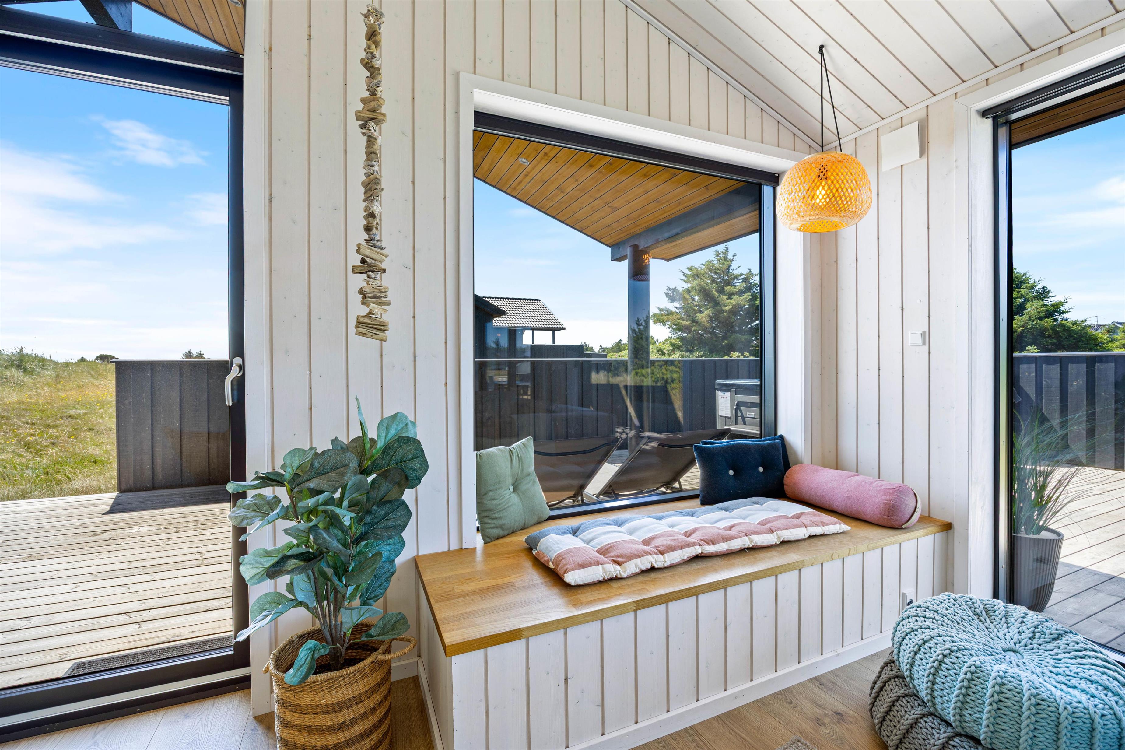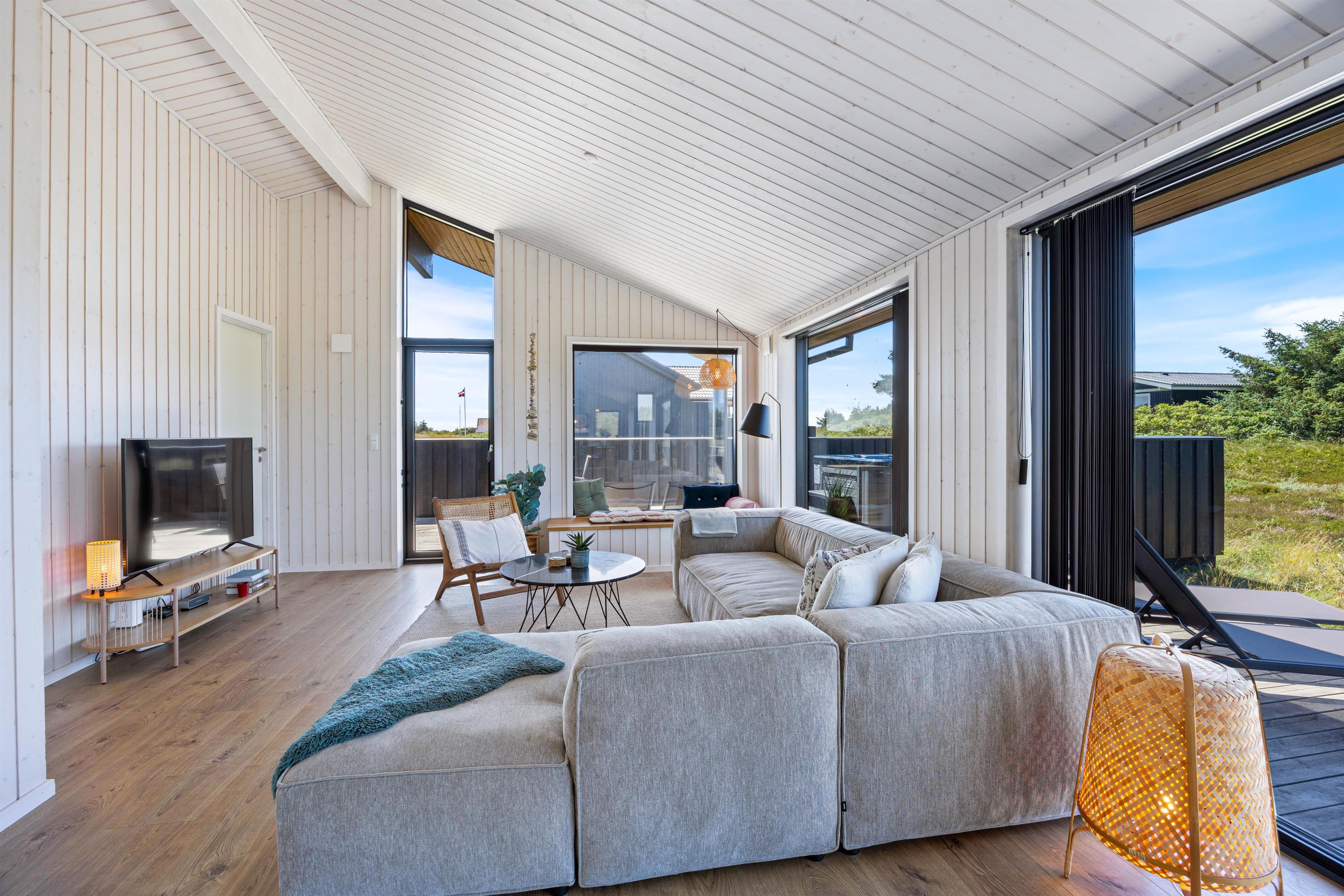 I feriehuset er der lynhurtigt internet samt Chromecast, så I har mulighed for at streame musik eller film til hele familien under jeres ophold. Nyd en hyggeaften i sofaen med en god film og popcorn eller tag et familiespil ved det store spisebord. I kan også sætte jer på bænken ved det store vindue, hvorfra I kan nyde den uforstyrrede udsigt til den smukke natur, heden og klitlandskabet og nyde stilheden.