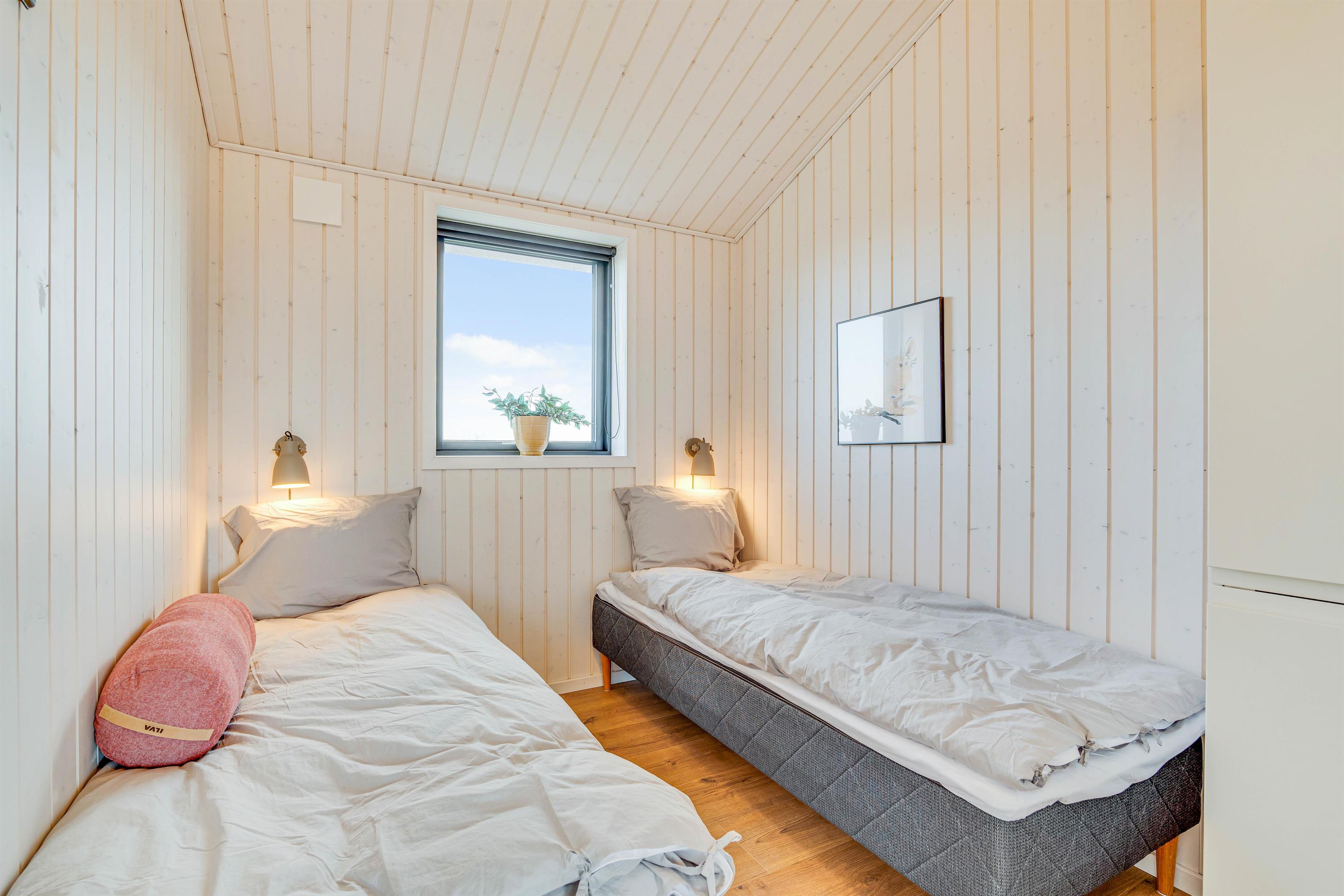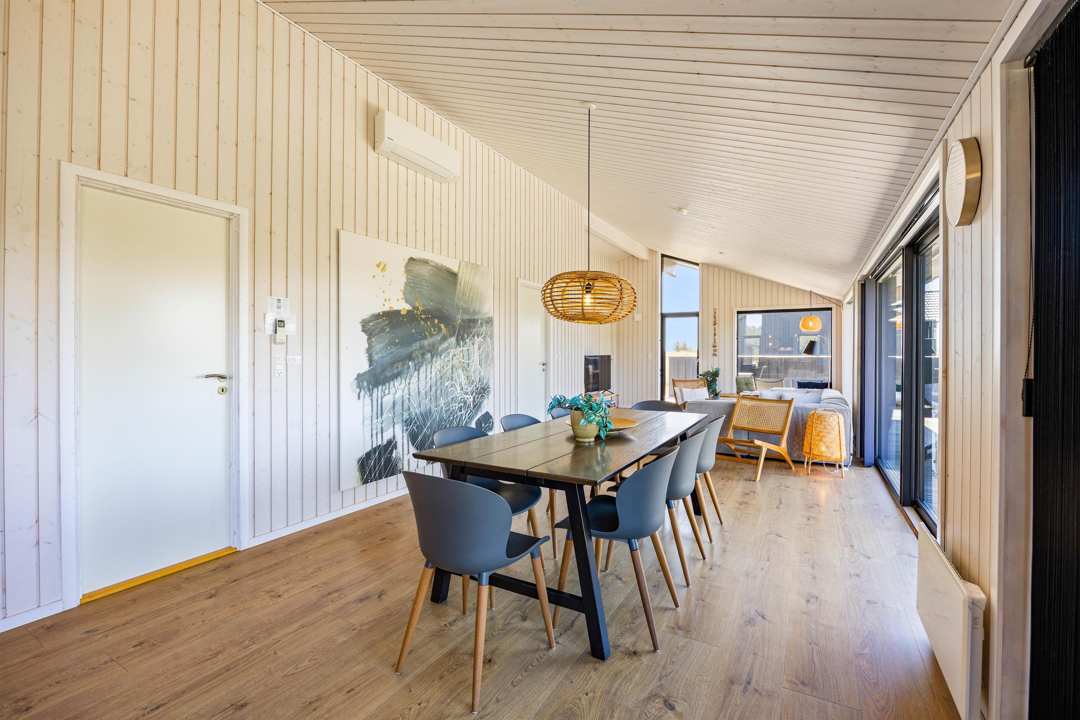 Dette lækre og moderne indrettede sommerhus er bygget i 2021. Sommerhuset er bygget i fine kvalitetsmaterialer i lys og moderne stil. Til de lidt køligere efterårsaftener kan I med fordel tænde for sommerhusets energibesparende varmepumpe, som giver en meget behagelig varme.