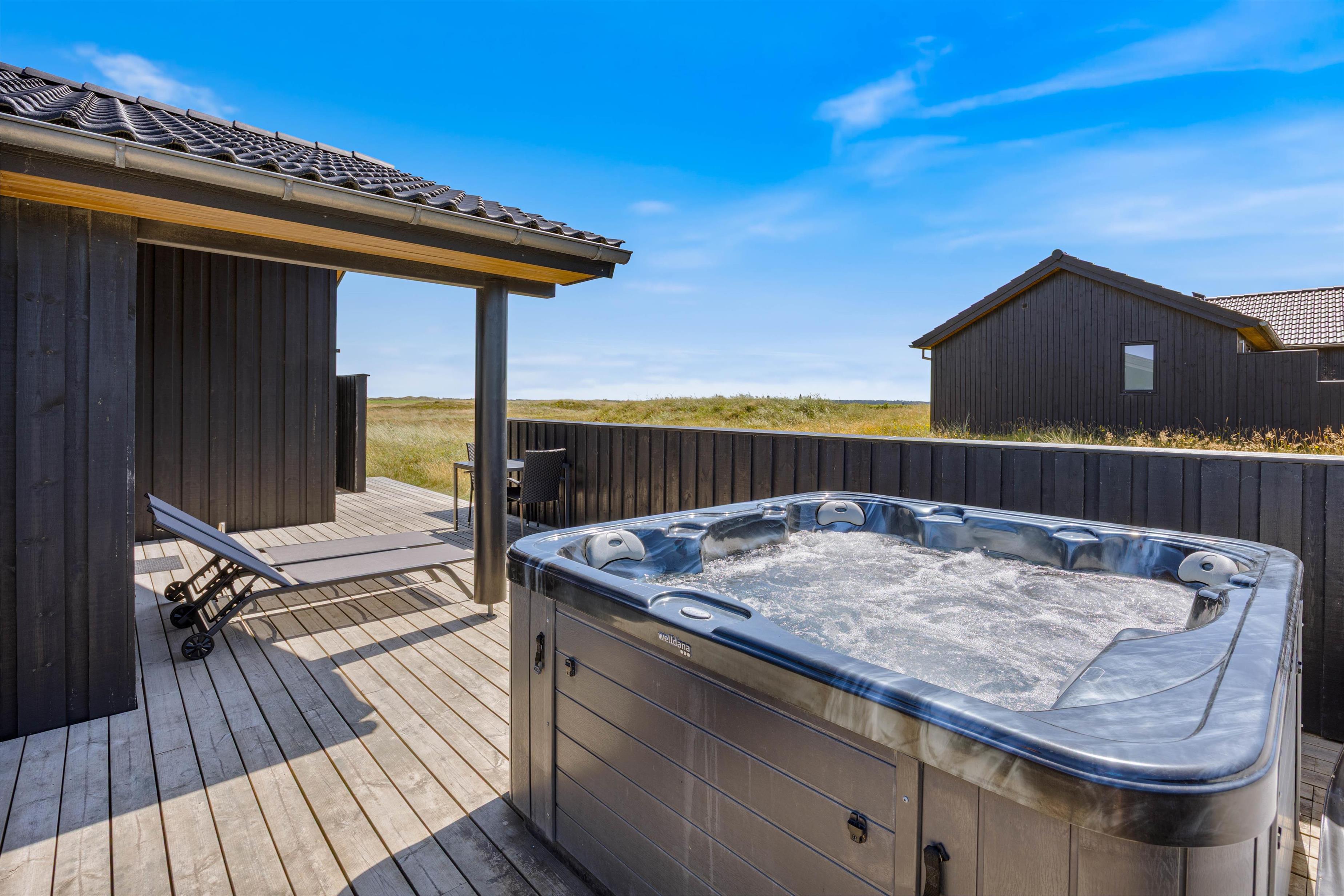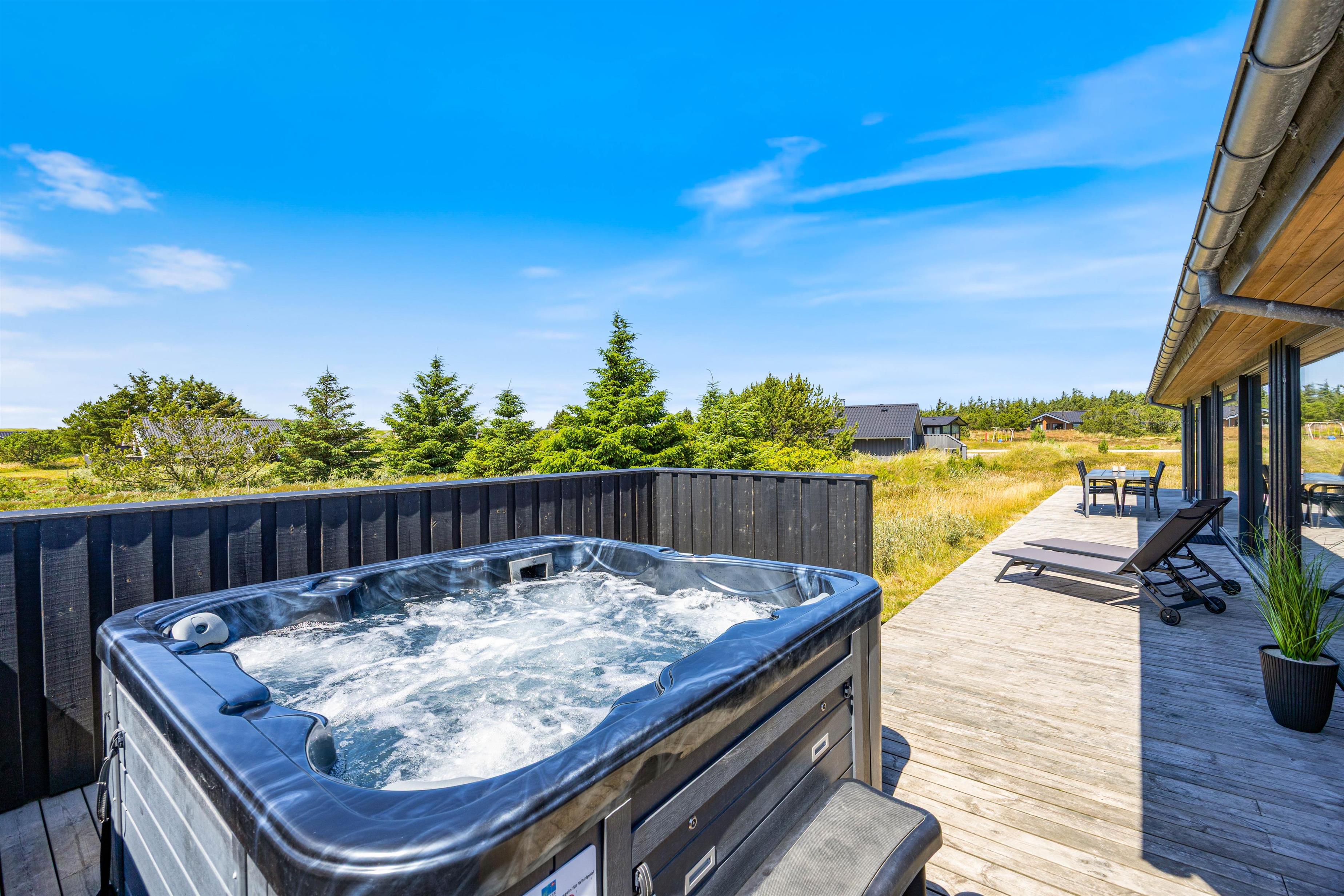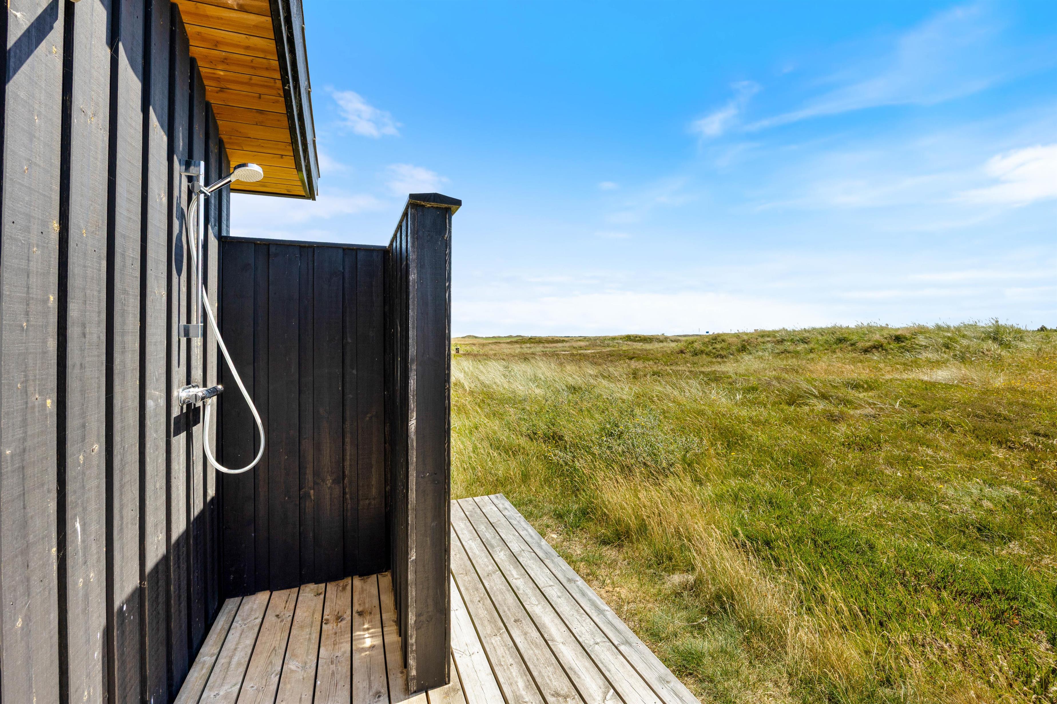 Eller hvad med at læse en god krimi i en af liggestolene, mens børnene leger omkring feriehuset? Senere på aftenen kan I nyde den smukke stjernehimmel, mens I sidder i udespaen med et glas vin. Efter en tur i det udendørs spabad kan I afslutte en skøn feriedag om sommeren med en frisk og afkølende tur under udebruseren, der kan benyttes fra april til november.