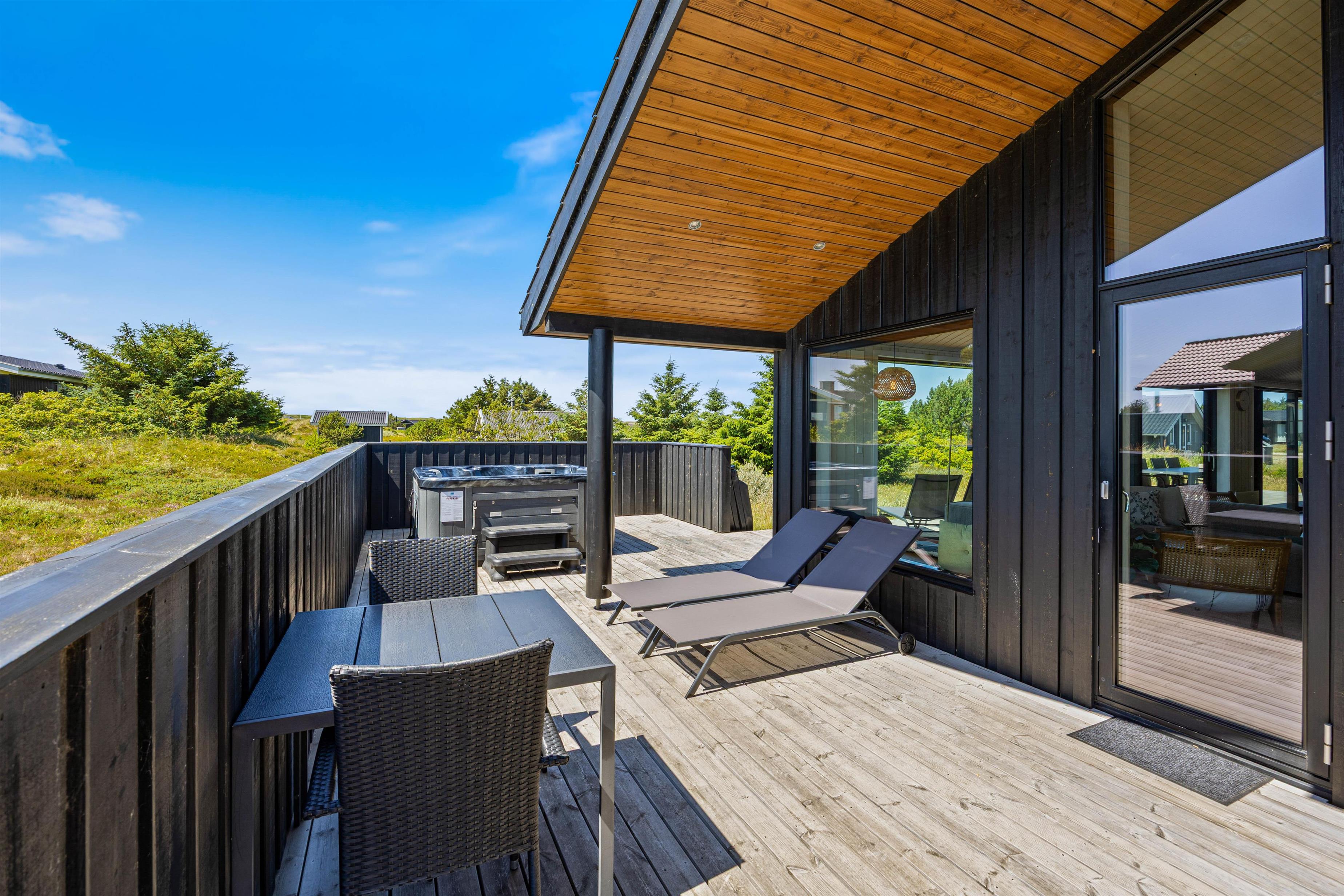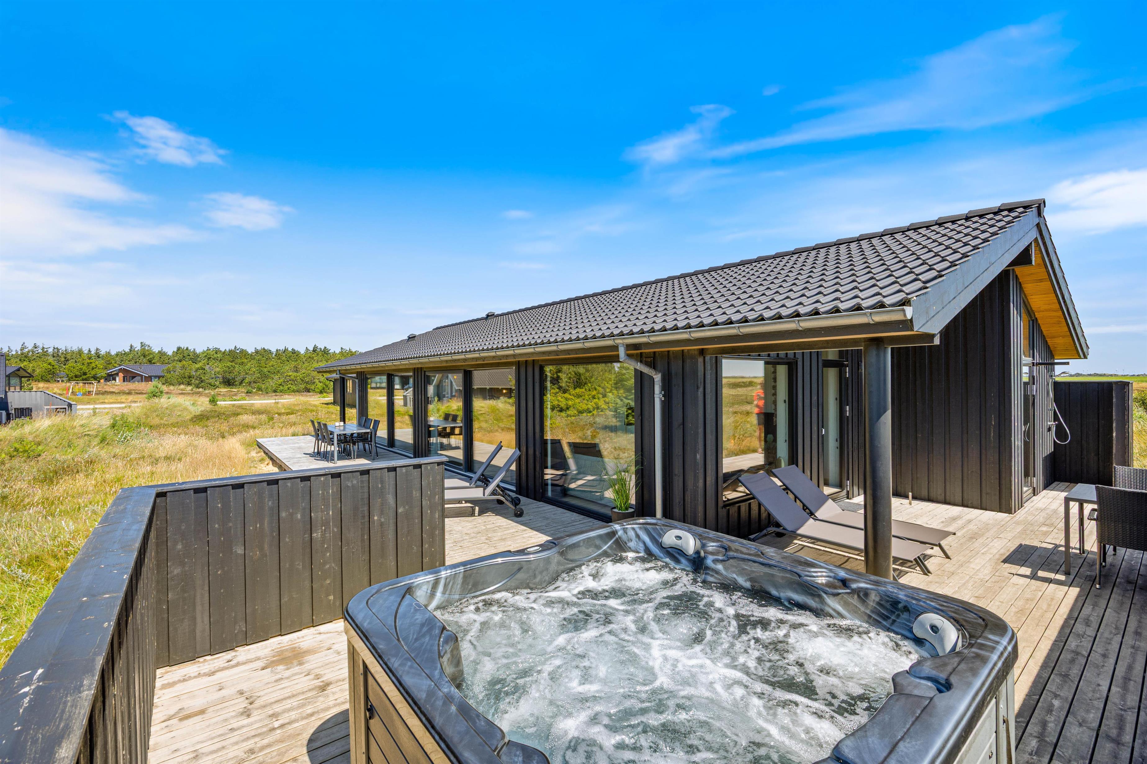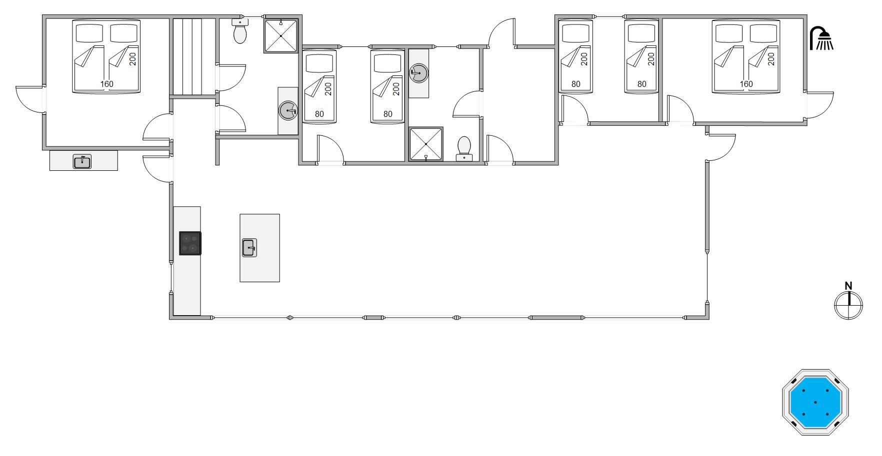 Eller hvad med at læse en god krimi i en af liggestolene, mens børnene leger omkring feriehuset? Senere på aftenen kan I nyde den smukke stjernehimmel, mens I sidder i udespaen med et glas vin. Efter en tur i det udendørs spabad kan I afslutte en skøn feriedag om sommeren med en frisk og afkølende tur under udebruseren, der kan benyttes fra april til november.