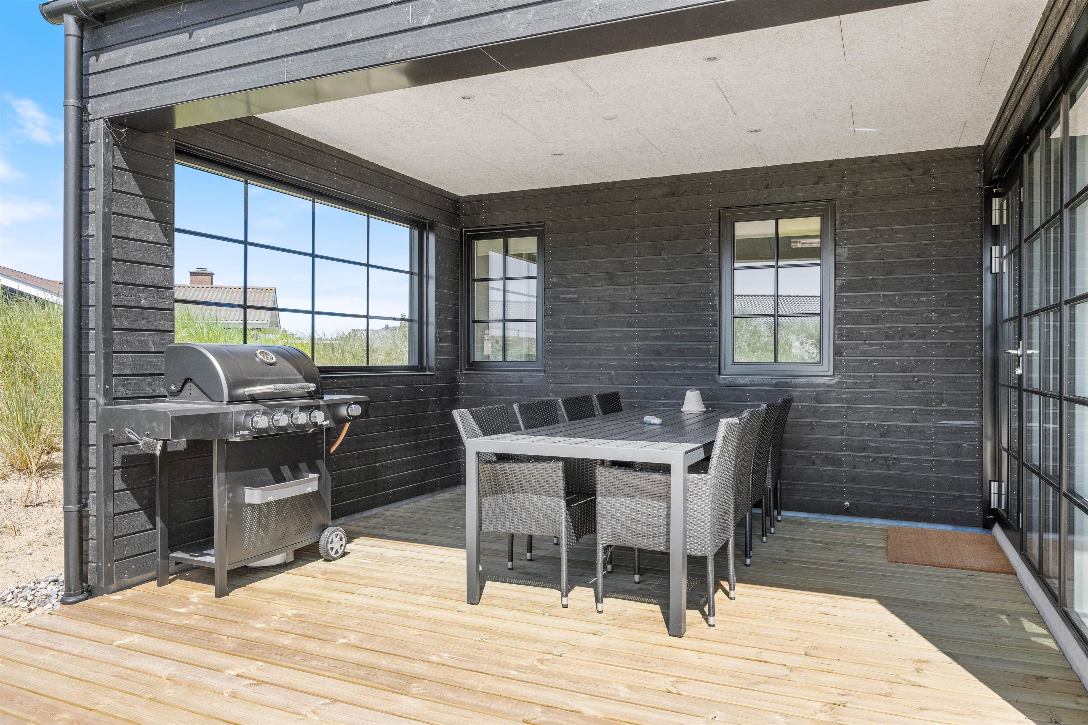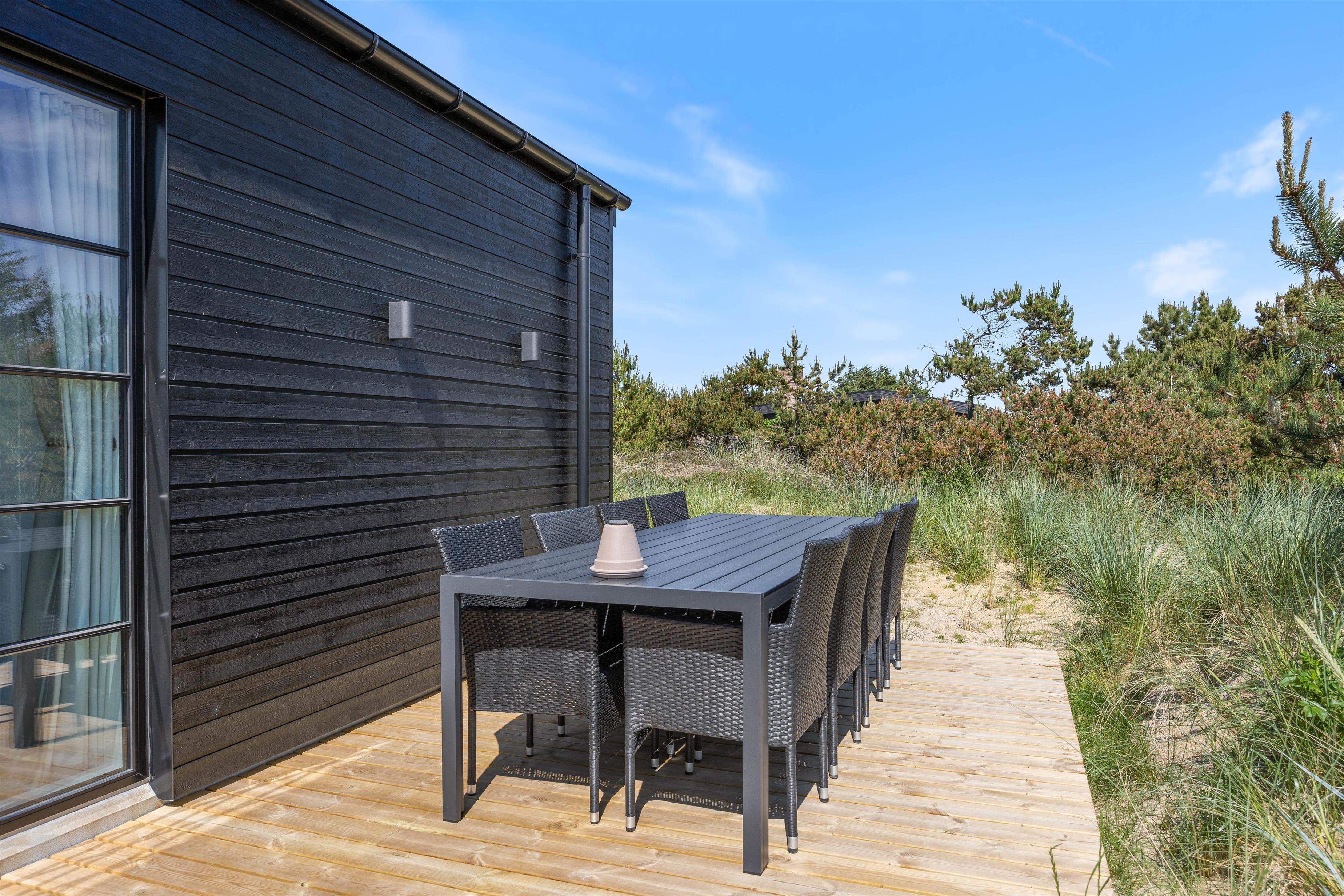 500 meter fra Vesterhavet ligger dette unikke arkitekttegnede sommerhus. Her oser det af luksus, og der er tænkt over detaljerne, når det gælder udemiljøet, privatlivet og den helt rigtige sommerhusstemning.