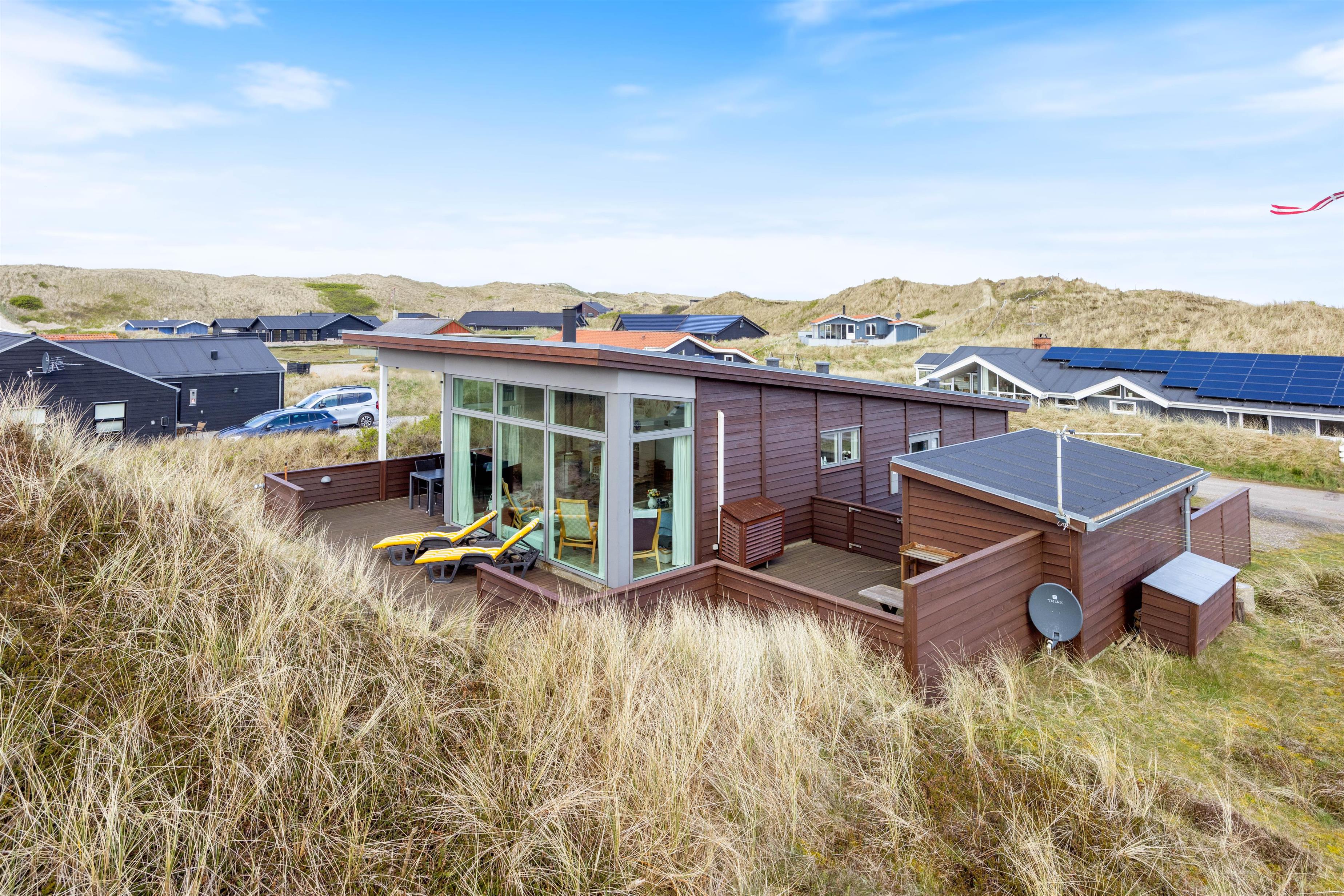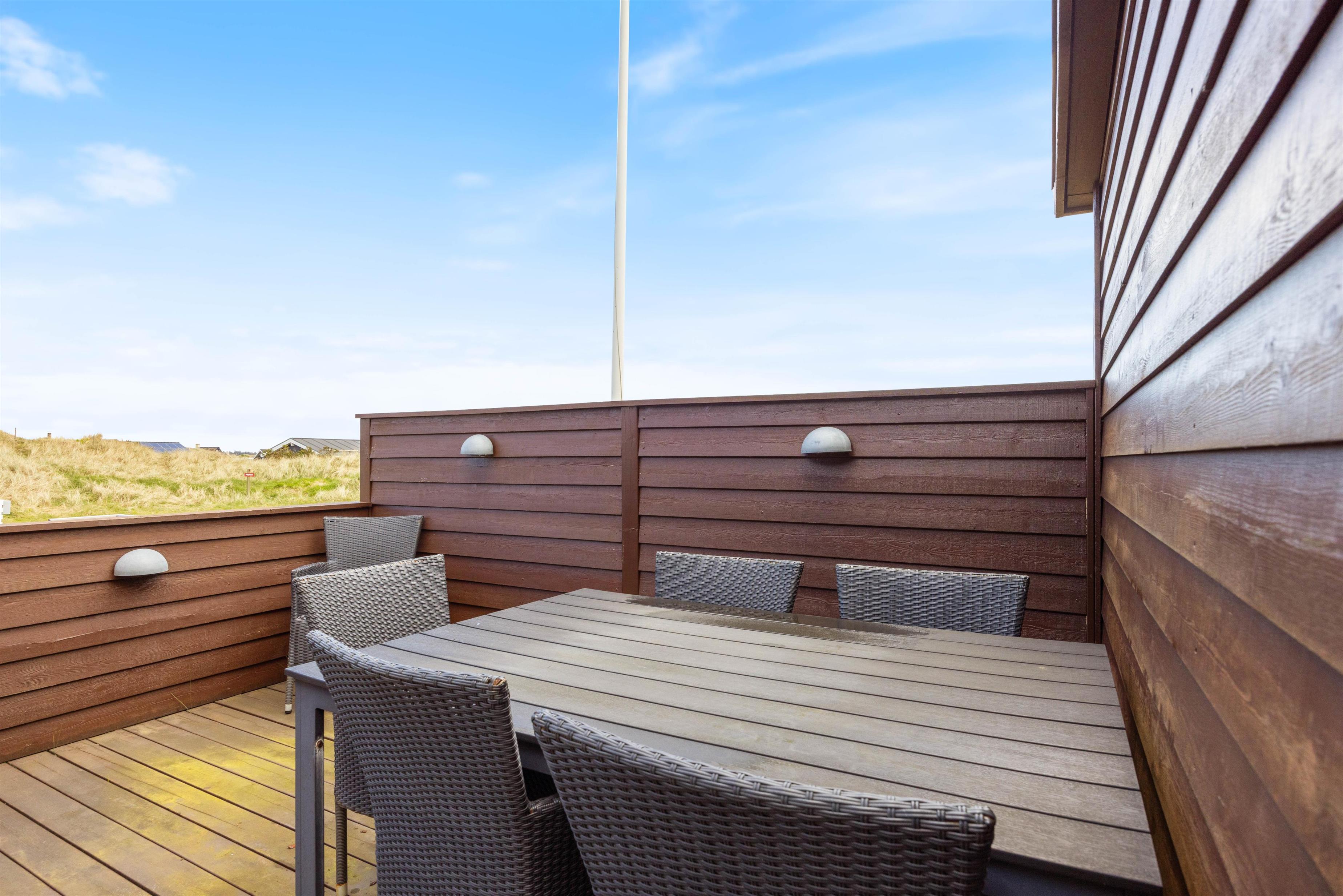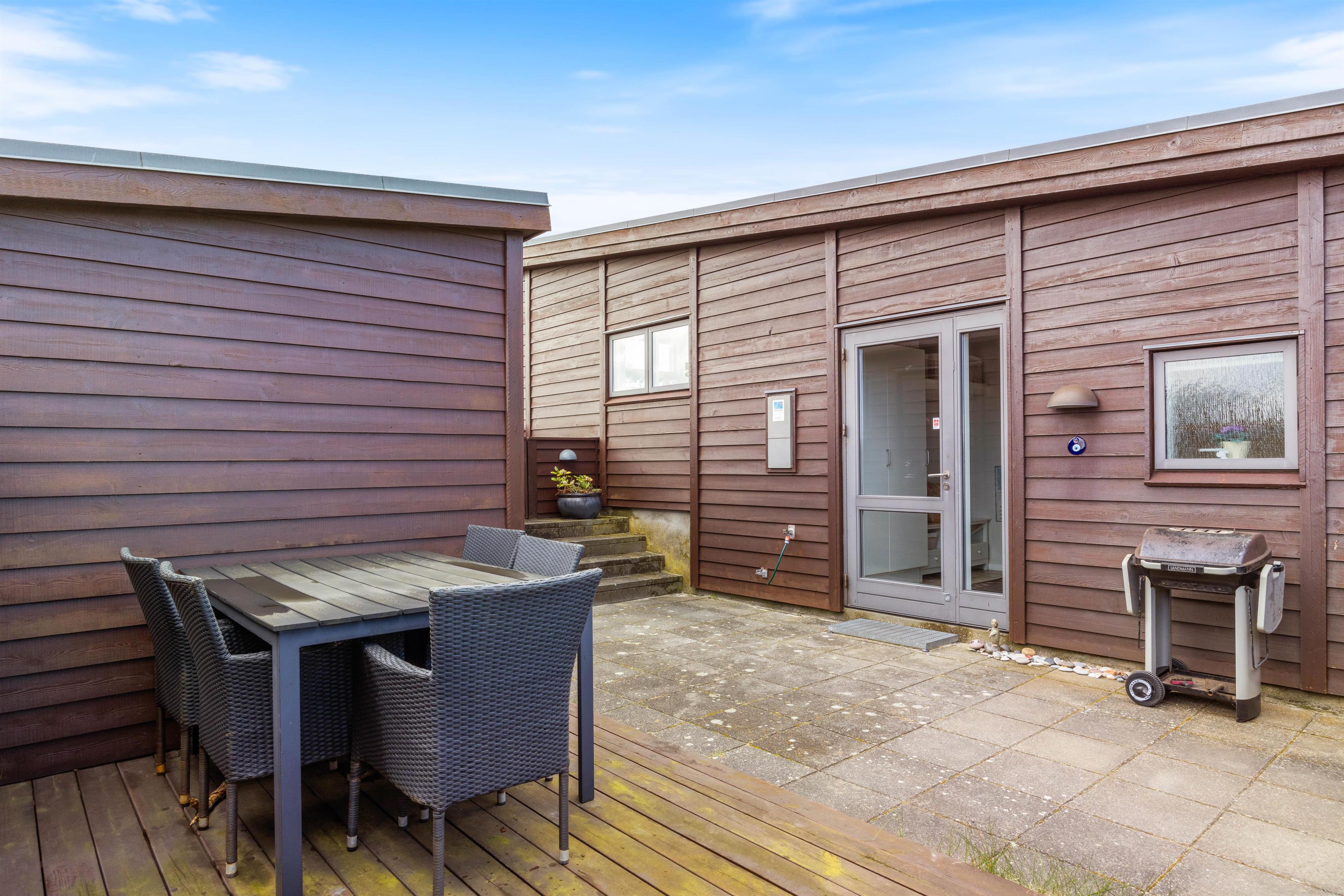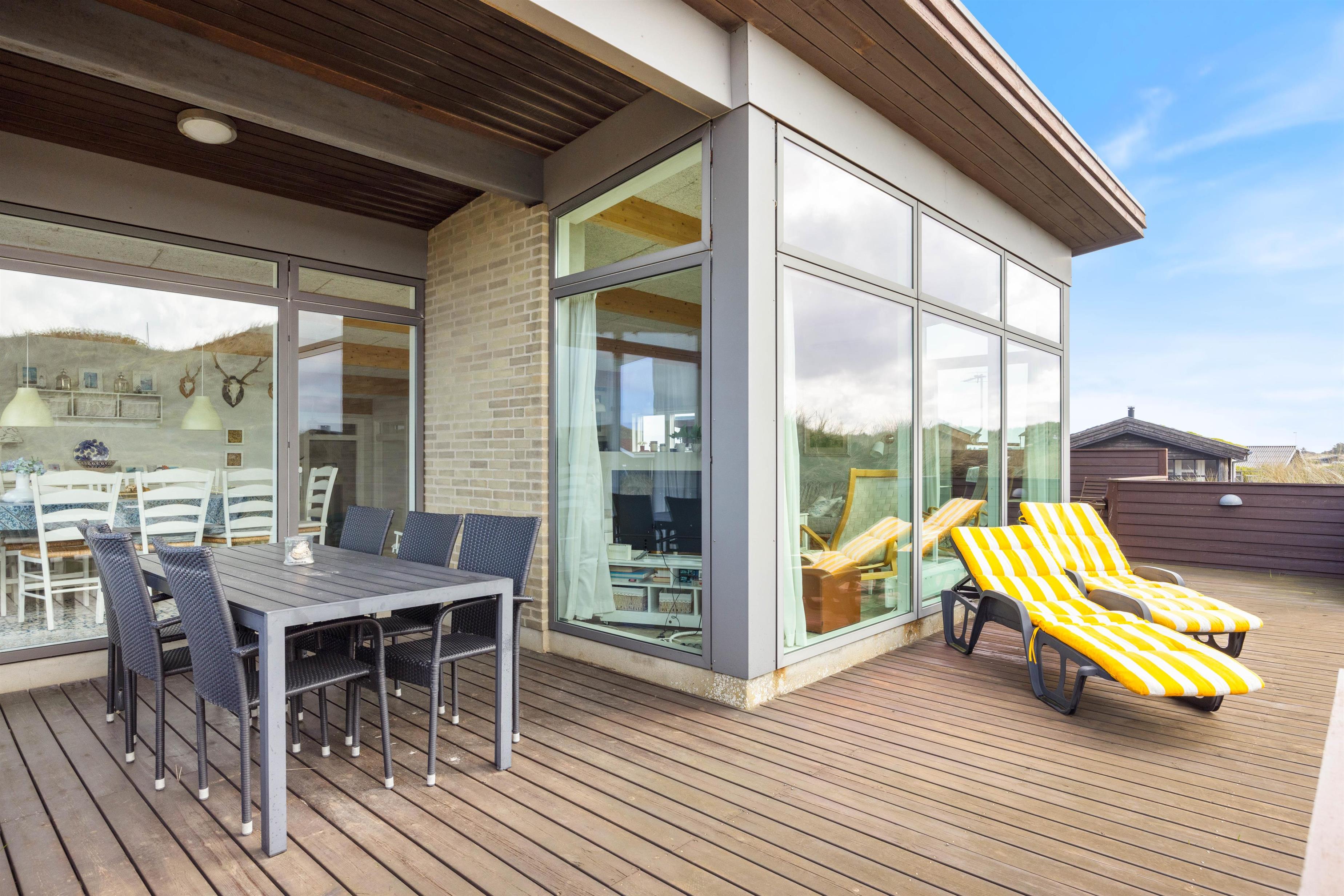 Omkring feriehuset har du nogle dejlige terrasser, der indbyder til afslapning, solbadning og grillhygge hele dagen lang. Og fra terrasserne kan du også nyde den smukke udsigt – ikke kun over naturgrunden, men også til klitterne.