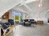 Hjerterummet er det skønne opholdsrum, der kombinerer stue og køkkenet i ét. Her er der plads til familielivet – uanset om I vil lave mad sammen, slappe af i sofaen eller spille brætspil omkring spisebordet. Tænd op i brændeovnen, der sørger for, at stemningen er i top. Praktisk er her også installeret gulvvarme. Trappen i stuen fører jer op på hemsen, hvor I finder 2 sovepladser. Herunder er her 2 soveværelser og et badeværelse. Bemærk venligst, at der ikke er gelænder på trappen.