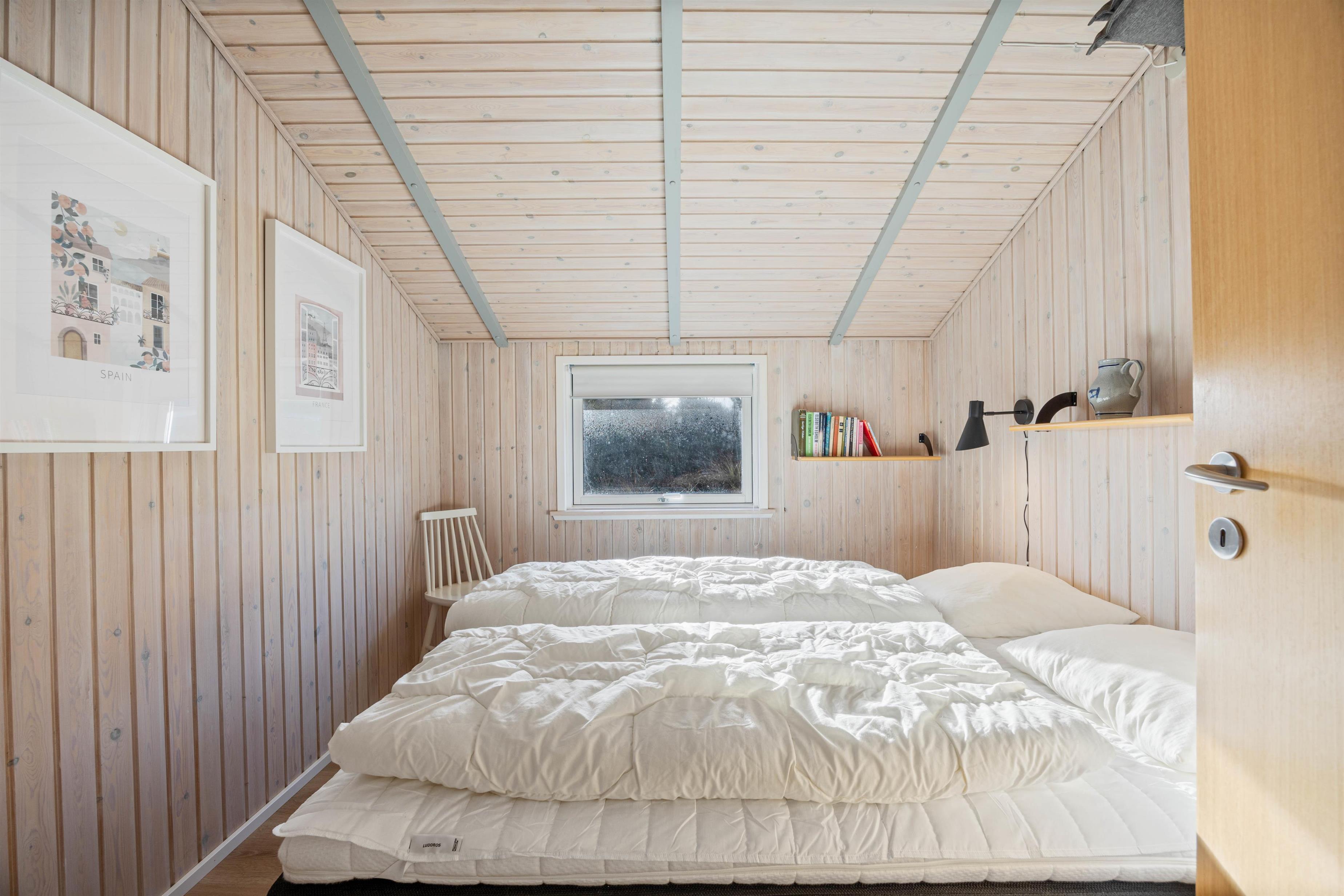 På badeværelset er der gulvvarme og vaskemaskine. Bemærk, at der er meget lavt til loftet i bruseren. Når I efter en dag fyldt med oplevelser er trætte af havluften, kan I fordele jer på 3 soveværelser: ét med dobbeltseng, ét med 2 enkeltsenge og ét med en enkeltseng.