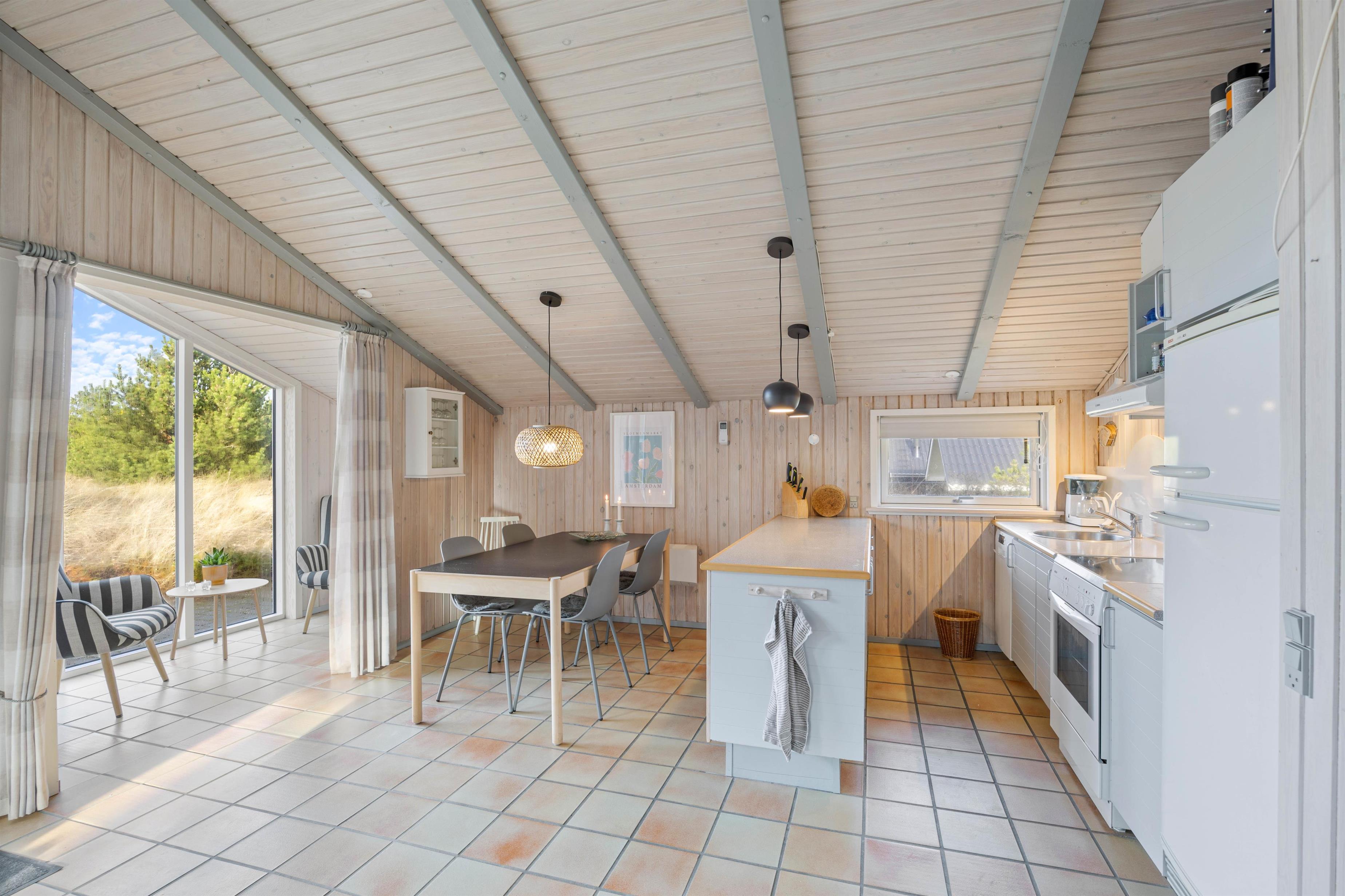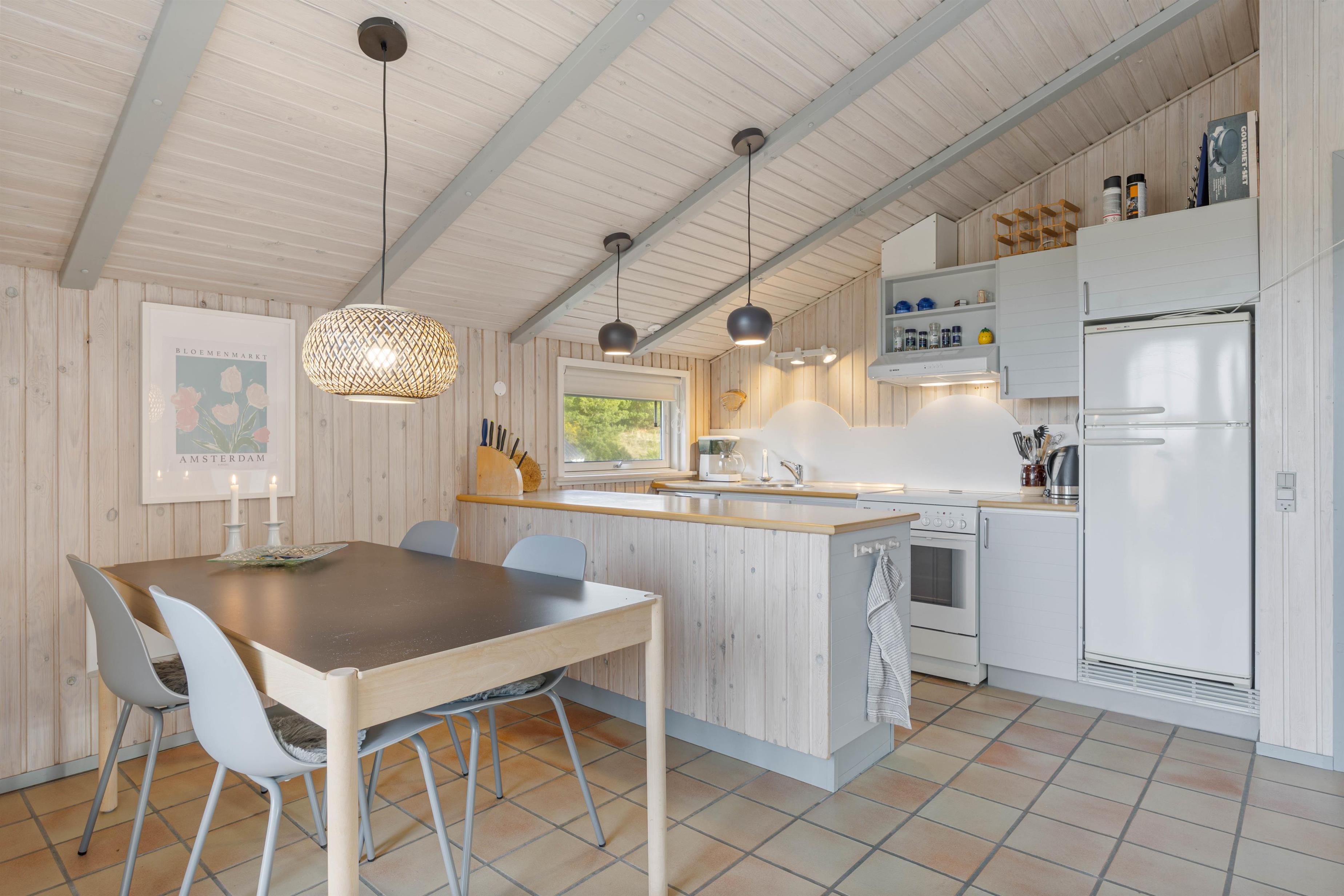 Om aftenen kan I se en film sammen eller nyde et brætspil ved spisebordet. Her er også god plads til at tilberede og nyde lækre måltider i køkkenet, der bl.a. har opvaskemaskine, mikrobølgeovn, køle-/fryseskab og elkomfur.