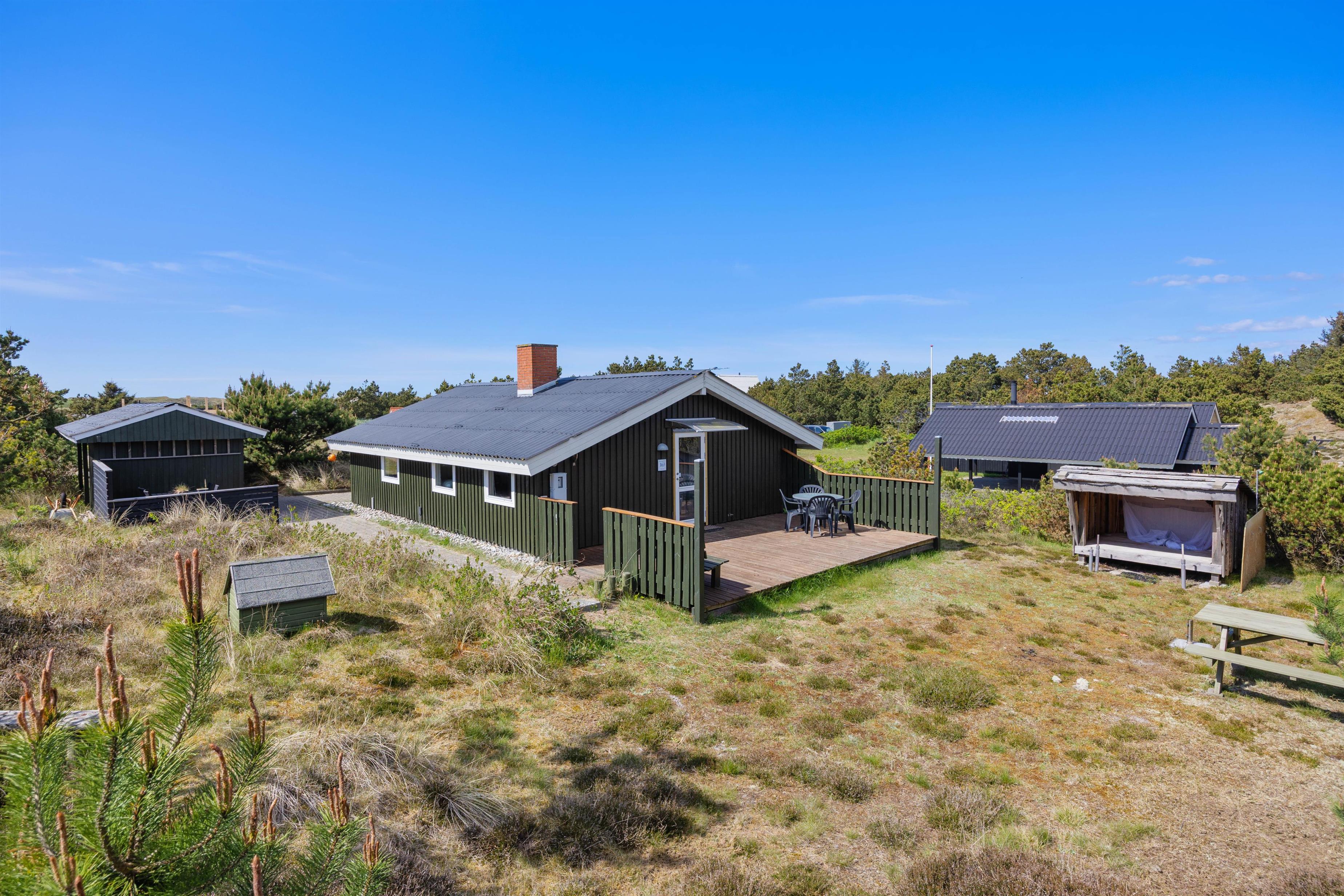 Sommerhuset ligger i hjertet af ferieområdet Bjerregård, hvor I har kort afstand til både Vesterhavet og Ringkøbing Fjord. Her kan I dyrke vandsport, fiske, flyve med drage eller nyde lange gåture med jeres hund.