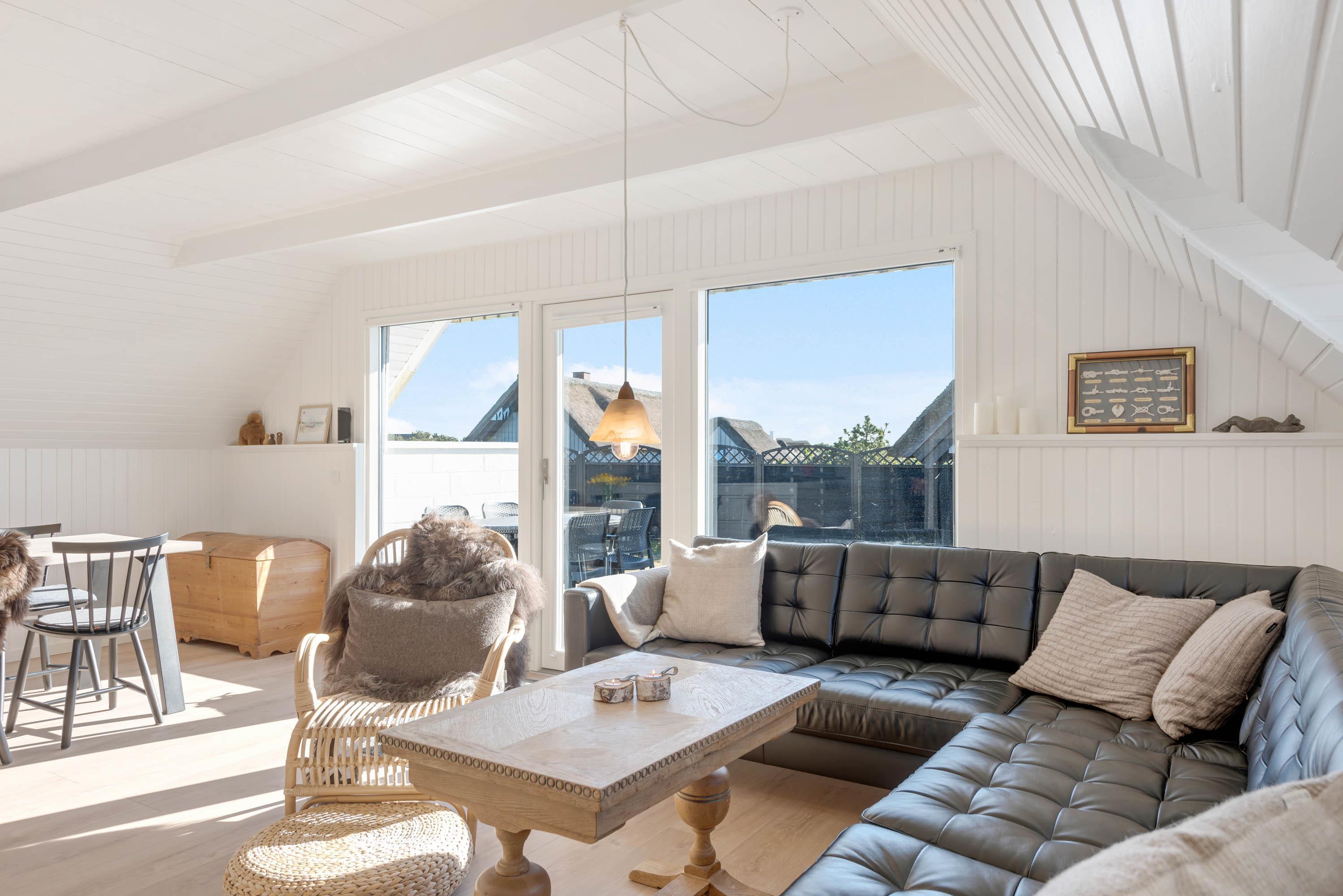 Med både havemøbler, liggestole og grill til rådighed kan I tilbringe feriedagene på terrassen hele dagen lang. En perfekt måde at slutte dagene af på er ved at lave en lækker middag på grillen efterfulgt af en gåtur på bare 600 meter til det enestående Vesterhav, hvor solnedgangen kan nydes fra første parket.