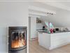 Opholdsstuen ligger i åben forbindelse med køkkenalrummet. Det dejlige køkken byder på moderne faciliteter som opvaskemaskine, mikroovn og induktionskomfur, der tilgodeser familiens kok. Mens der kokkereres i køkkenet, kan der hygges med resten af familien, der spiller spil ved det flotte spisebord.