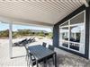 Omkring feriehuset på Julianevej 21 er der to flisebelagt terrasser, og der er rig mulighed for at finde både sol og skygge. Den overdækkede del af terrassen gør det muligt at bruge grillen en stor del af året, og det er også hertil I kan trække jer tilbage, når duggen falder på de lange og lyse sommeraftner. Mens bøfferne bliver færdige på grillen, kan børnene hygge sig med gynger og sandkasse.
