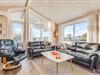 I både køkken og stue står sommerhusets gennemgående mørkere gulve i flot kontrast til de lyse vægge og hvide lofter. Ud ad de store vinduer i stuen, der giver et flot lysindfald, kan den smukke natur nydes i fulde drag, mens der slappes af i de lækre lædermøbler og børnene dyster i bordfodbold. Det hyggelige skær og den knitrende lyd fra brændeovnen fuldender scenariet for en hyggelig aften, og på de kølige dage og aftner sørger varmepumpen for en behagelig temperatur døgnet rundt.