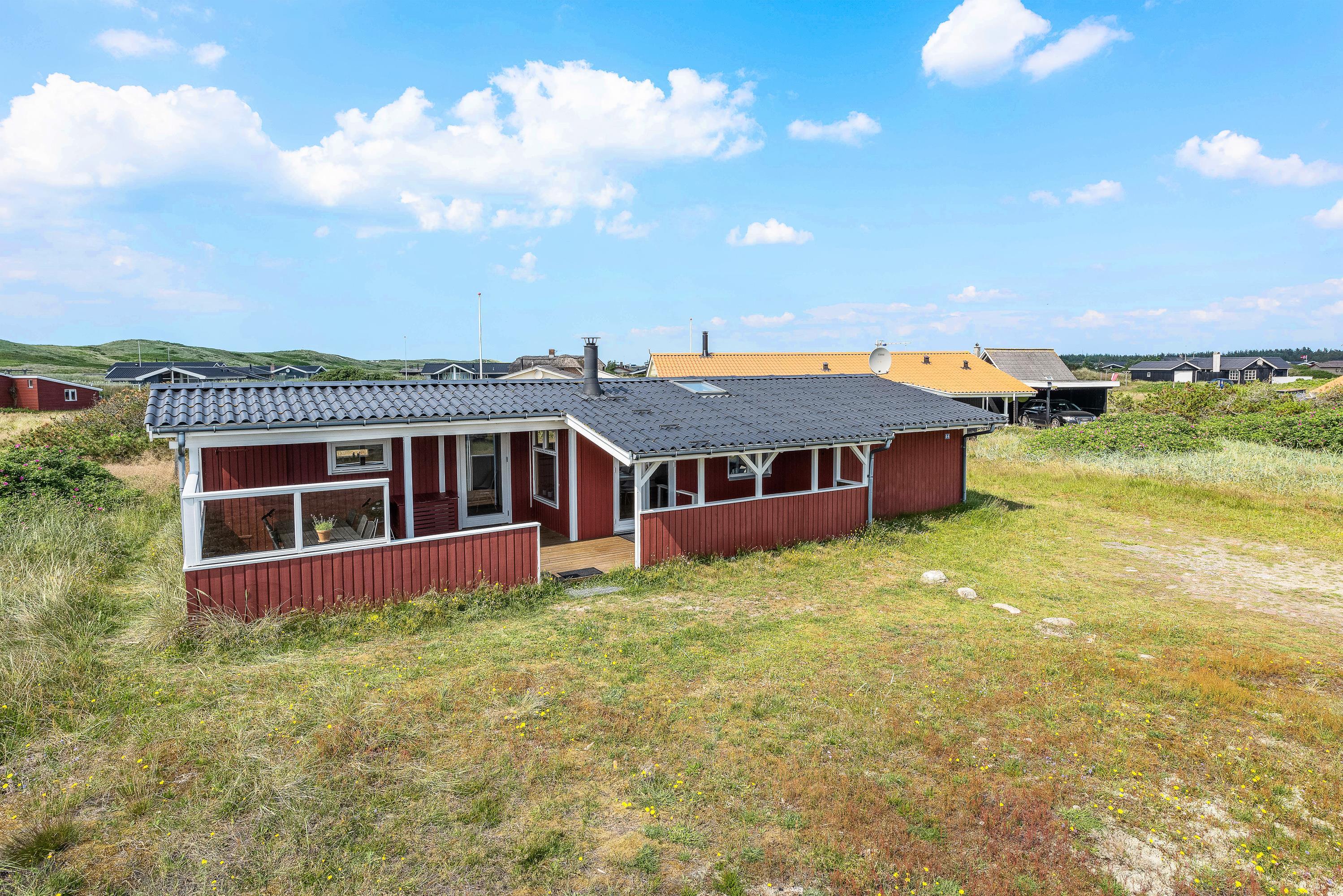 Hold jeres ferie i dette lille charmerende sommerhus i den sydlige del af Bjerregård på P Chr Dahls Vej 44 kun 200 meter fra det fascinerende Vesterhav. Her bor I roligt – midt i det smukke klitlandskab, tæt på de fredede hedearealer og næsten midt imellem hav og fjord. Op til 2 hunde er også velkommne i sommerhuset.