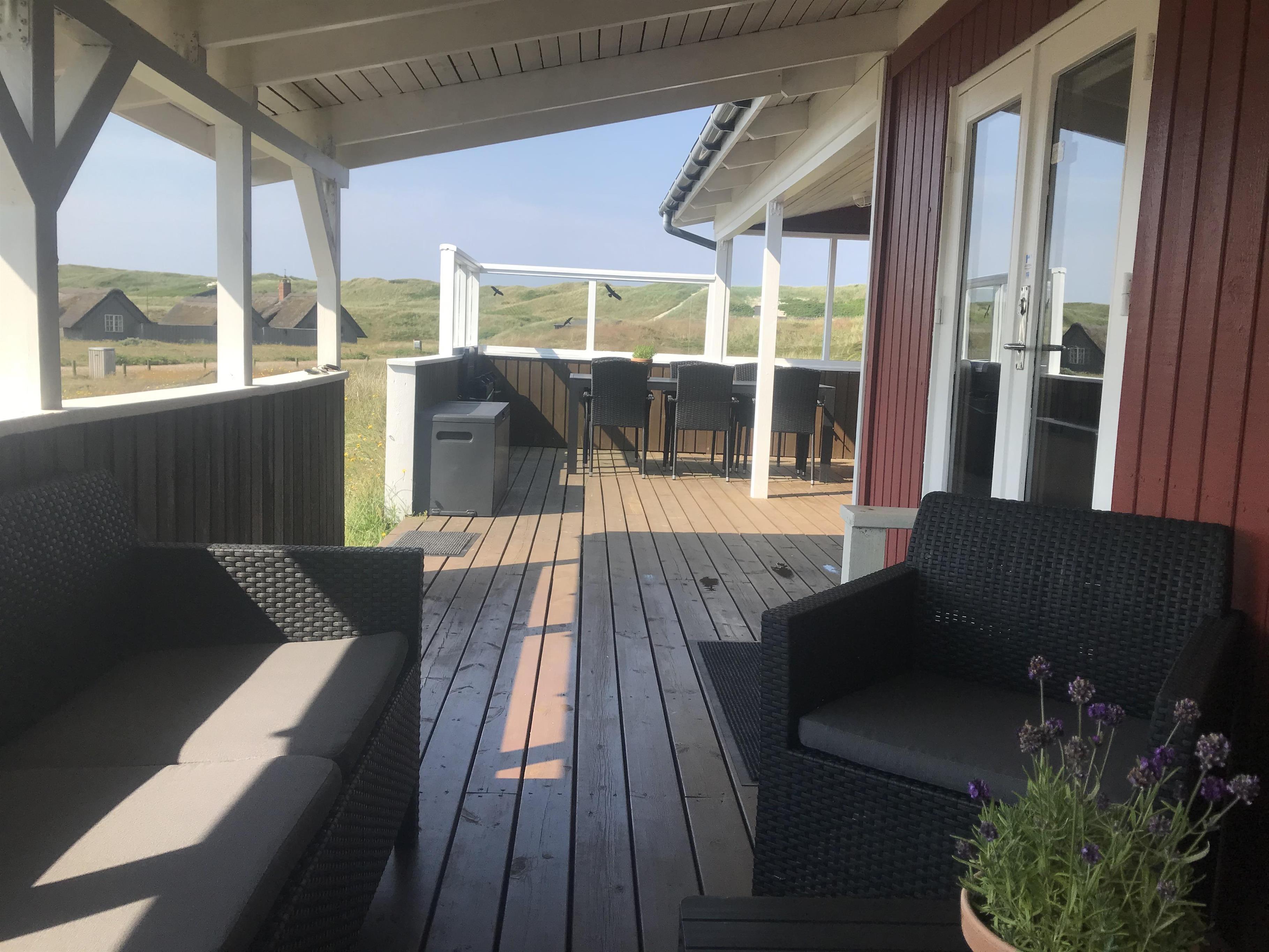 Sommerhuset byder på gode og delvist overdækkede terrasser mod sydøst, der sikrer jer muligheden for masser af udeliv. Her kan I starte med morgenkaffen til solopgangen over Ringkøbing Fjord, for dernæst at følge solens rytme og flytte om på den sydvestvendte terrasse. Lav en lækker grillmiddag og nyd den, mens roen sænker sig, og I ser solen gå ned bag klitterne.