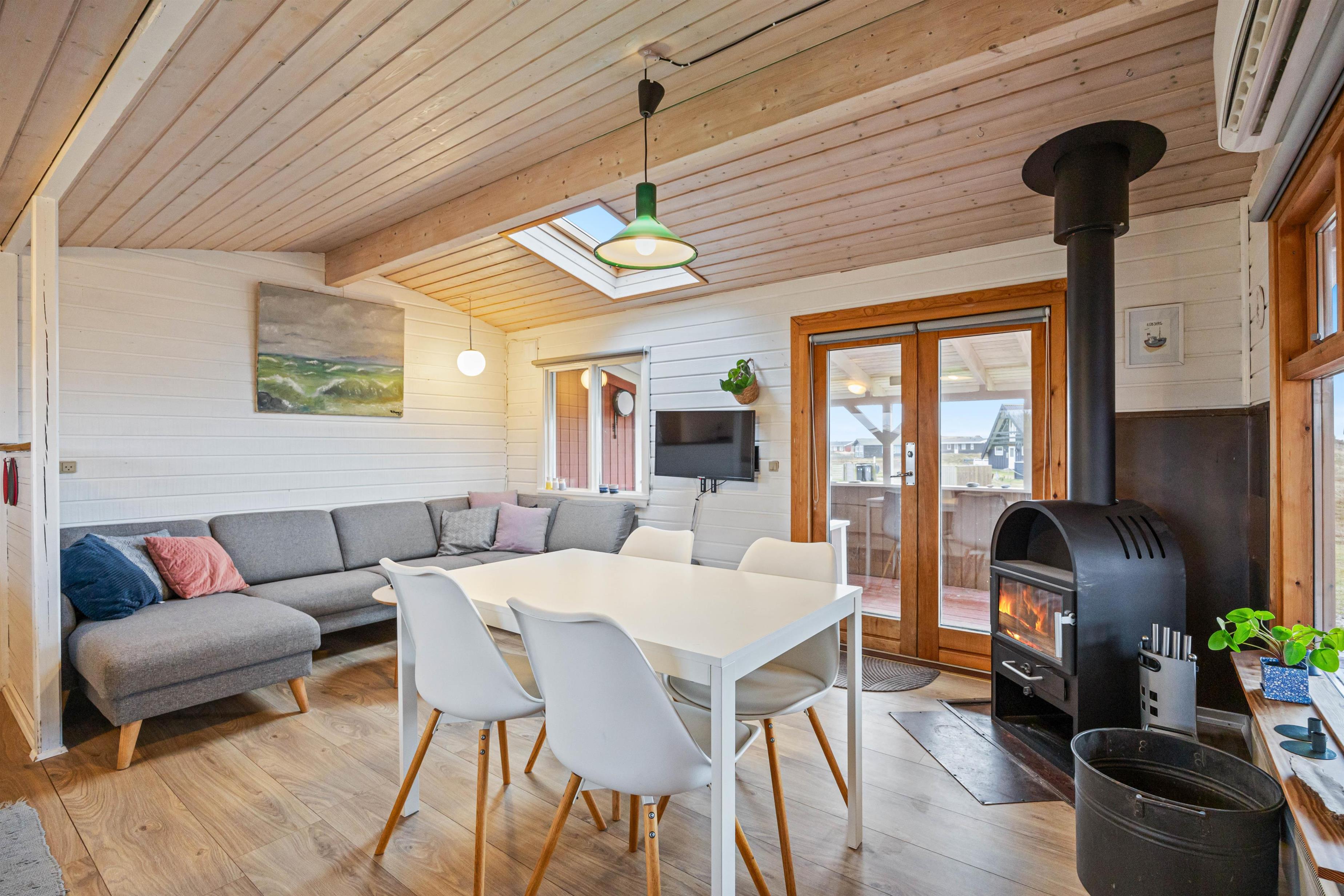 Sommerhuset fremstår lyst og hjemligt med bl.a. flotte og praktiske trægulve overalt. Ovenlysvinduer giver et fantastisk lys i sommerhuset – og når det er mørkt, kan I se stjernehimlen fra sofaen.