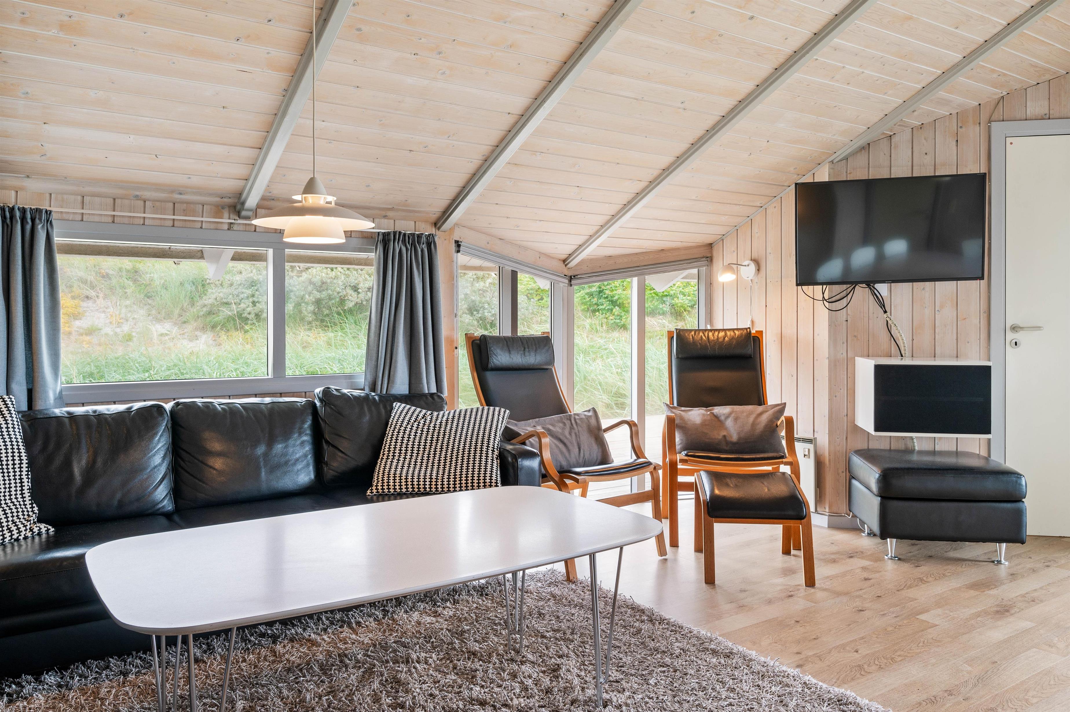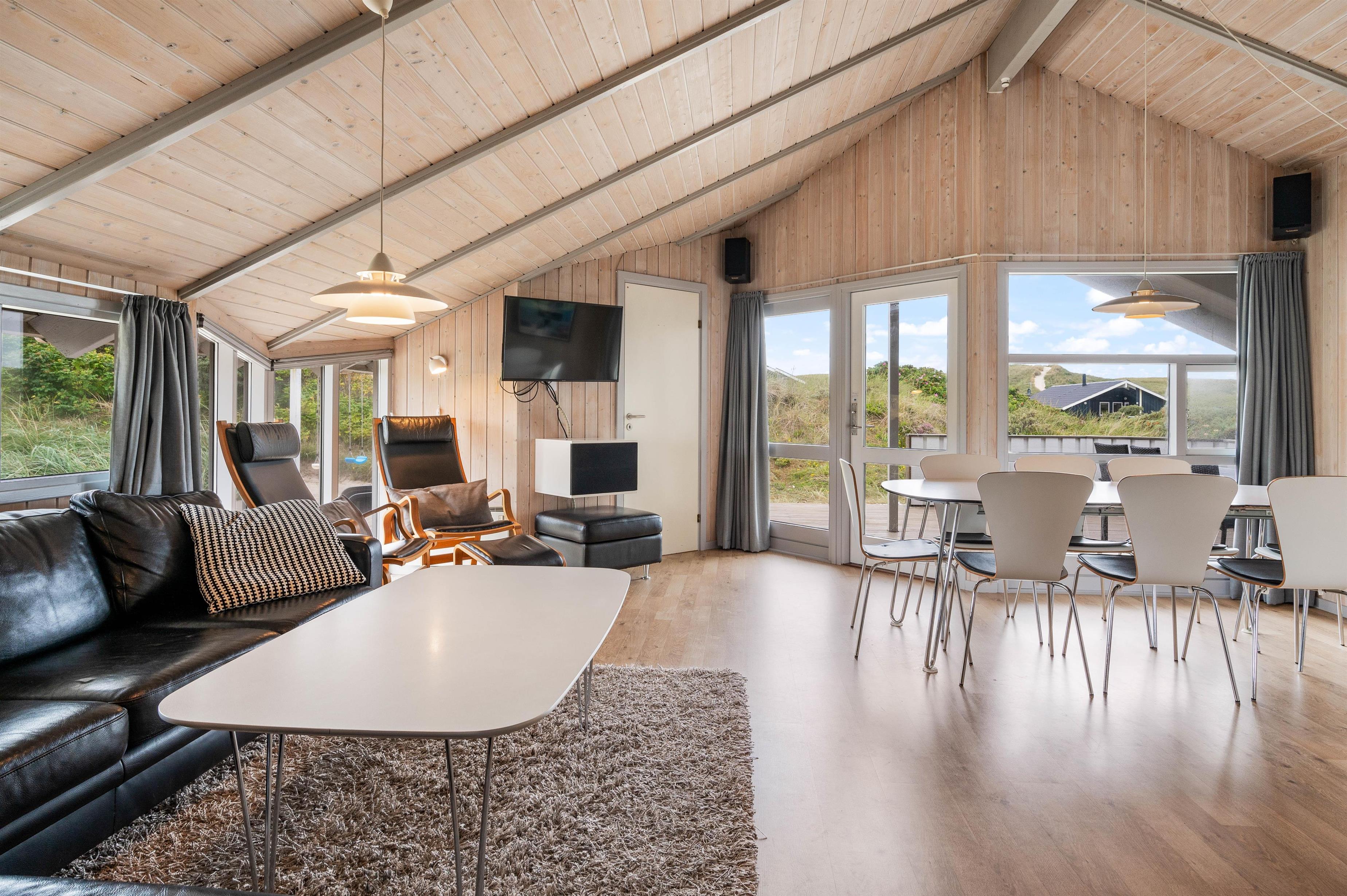 Lyst og velindrettet feriehus med bl.a. sauna og spa. Huset er beliggende tæt på Vesterhavet og på en skøn grund med klit mod syd, som giver gode muligheder for at finde et ugeneret sted på den store og delvist overdækkede træterrasse.
