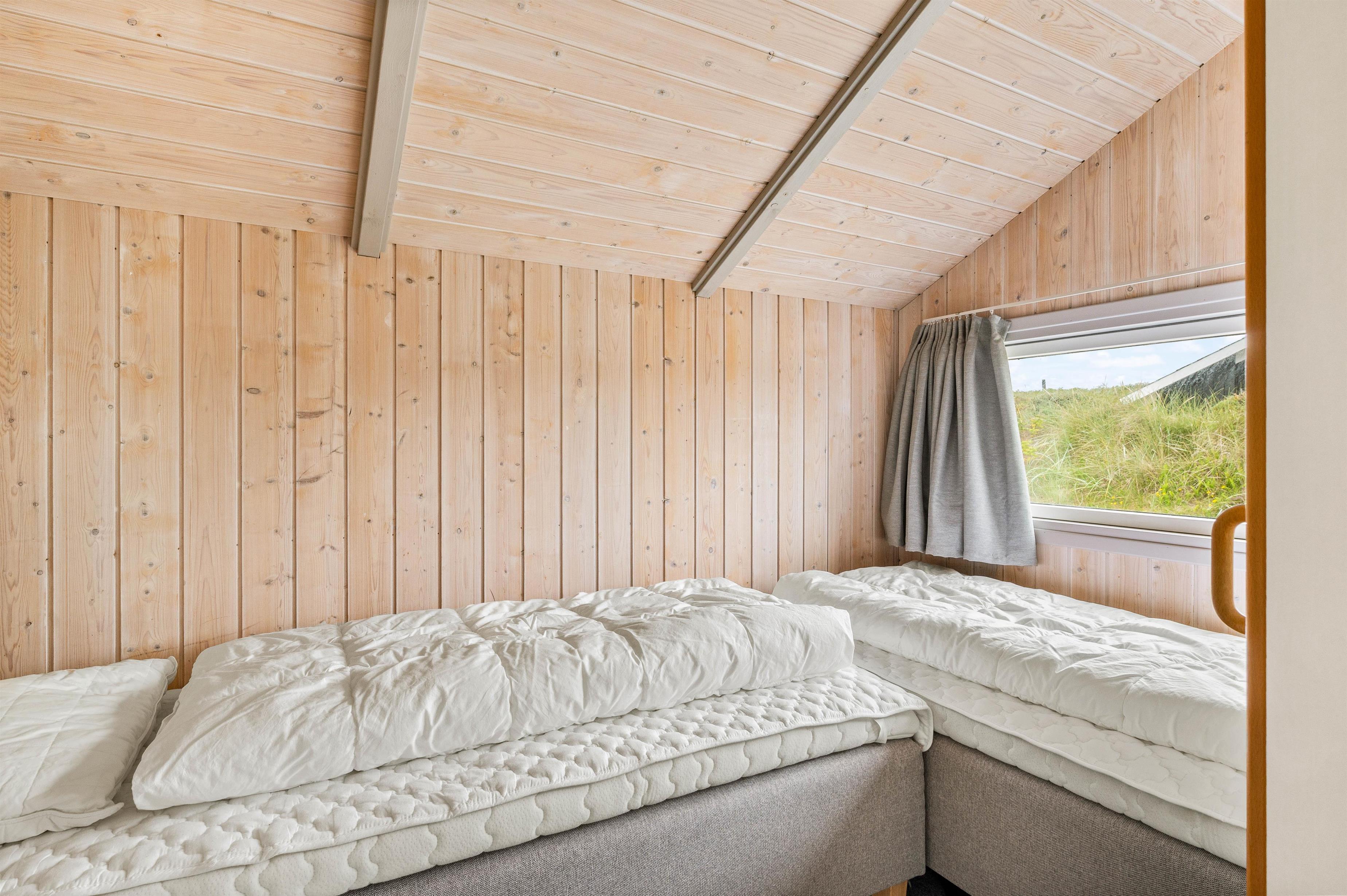 Man føler sig hurtig hjemme i dette dejlige sommerhus. Huset indrettet til 8 personer. Her er 4 separate soverum, hvoraf 2 er med dobbeltsenge og de andre med 2 enkeltsenge. Nogle af værelserne er indrettet med gulvtæppe, mens de alle har en god seng, så batterierne kan blive ladet op til feriens aktiviteter. Her er et gæstetoilet samt et stort badeværelse med sauna og spabad. På den måde undgår I for meget kø til toiletterne om morgenen.