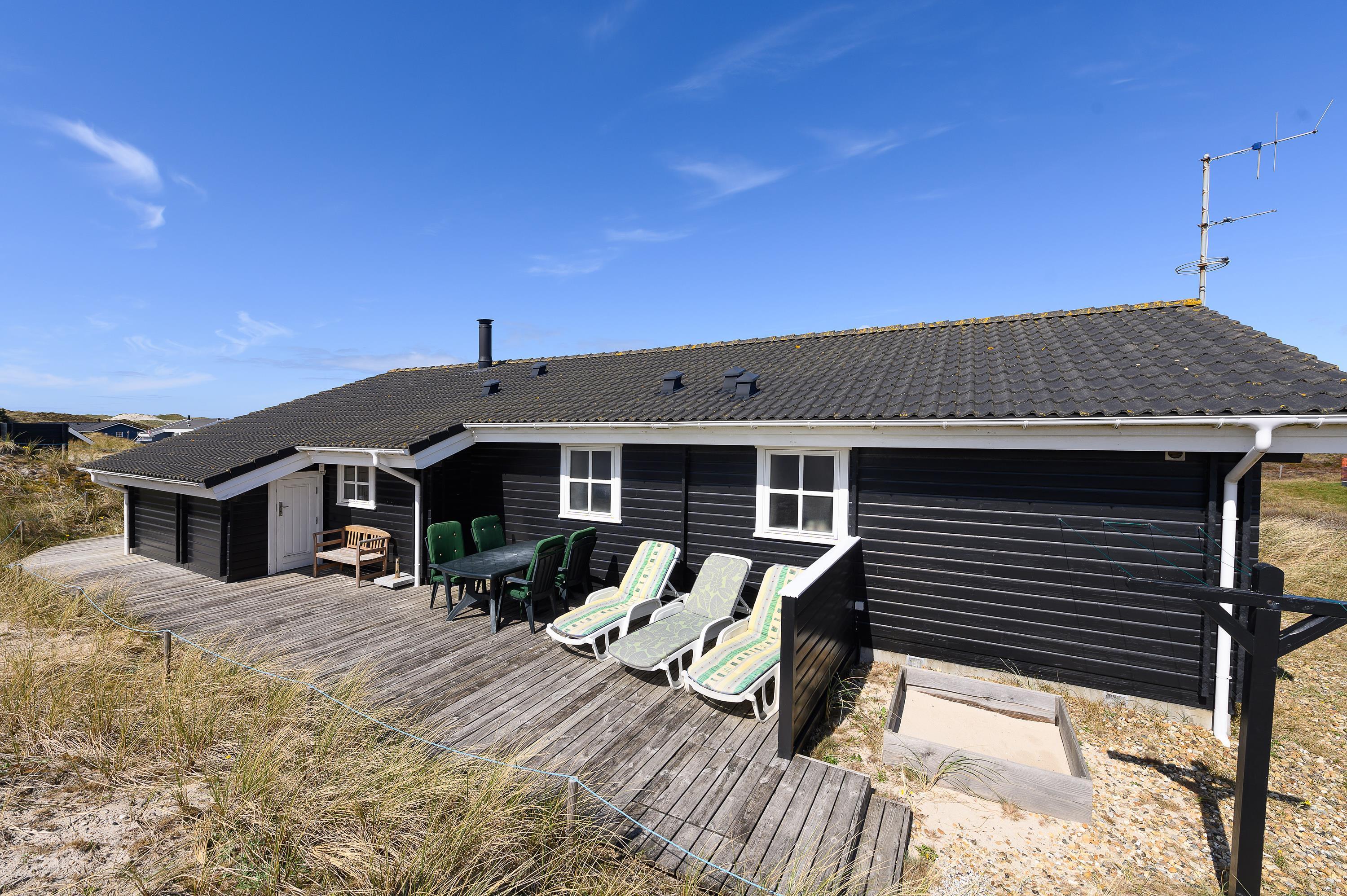Sommerhuset er omgivet af skønne terrasser, hvor den friske luft og smukke natur kan nydes i fulde drag. Mod syd er der en skøn naturlig afskærmet terrasse, hvor du kan hygge dig med familie og venner i rolige omgivelser. Fra den vestvendte overdækkede terrasse har du smuk udsigt til hede og klitter, og her er de perfekte forhold til en hyggelig grillaften med familie og venner.