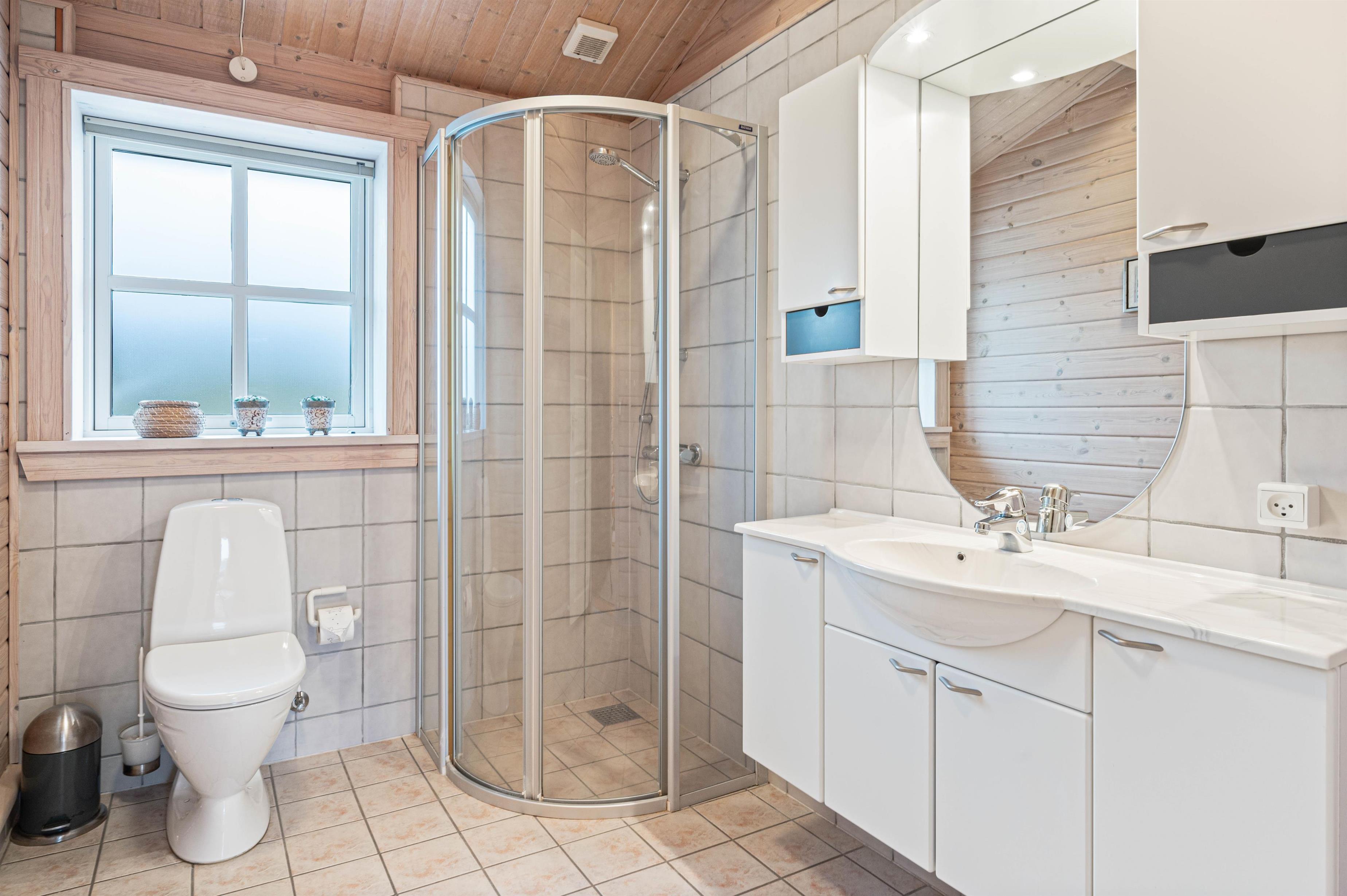 Sommerhuset er indrettet i en lys og indbydende stil og er med til at give den helt rigtige feriestemning. Her er plads til 6 personer, som til natten kan fordele sig på 3 gode værelser - alle indrettet med dobbeltseng. Der er 2 badeværelser i sommerhuset, som begge har gulvvarme.