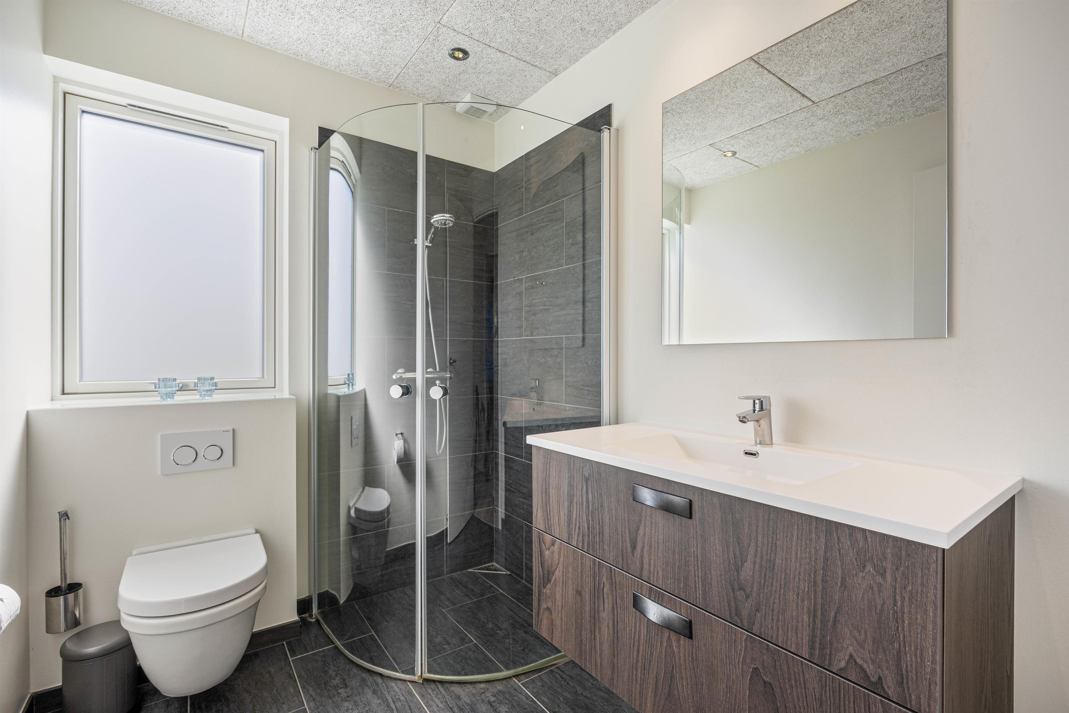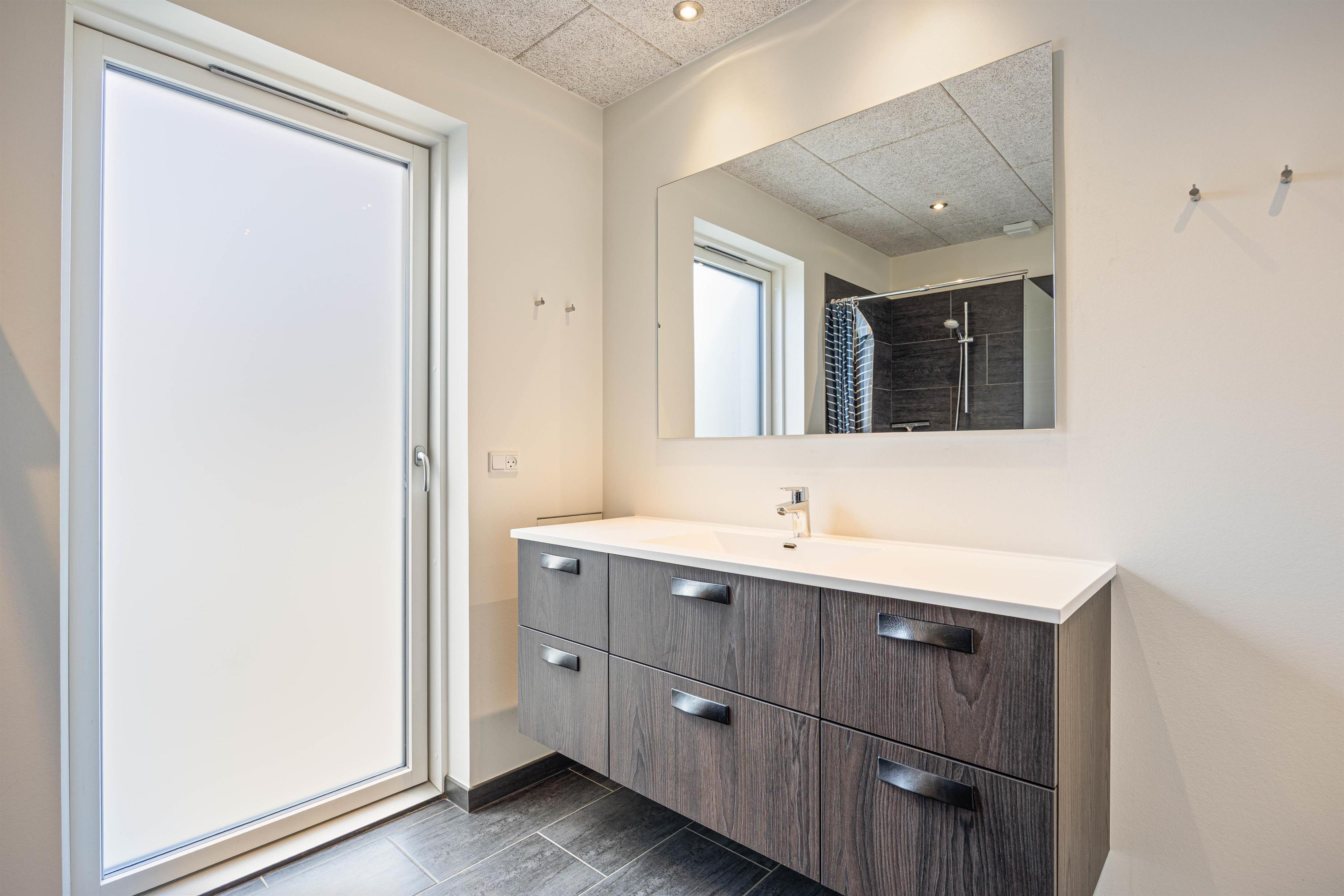 Huset er samtidig rigtig praktisk indrettet med 2 fine badeværelser, hvoraf der fra det ene er adgang til husets sauna. Her kan I forkæle jer selv med lidt ekstra wellness og velvære på ferien.