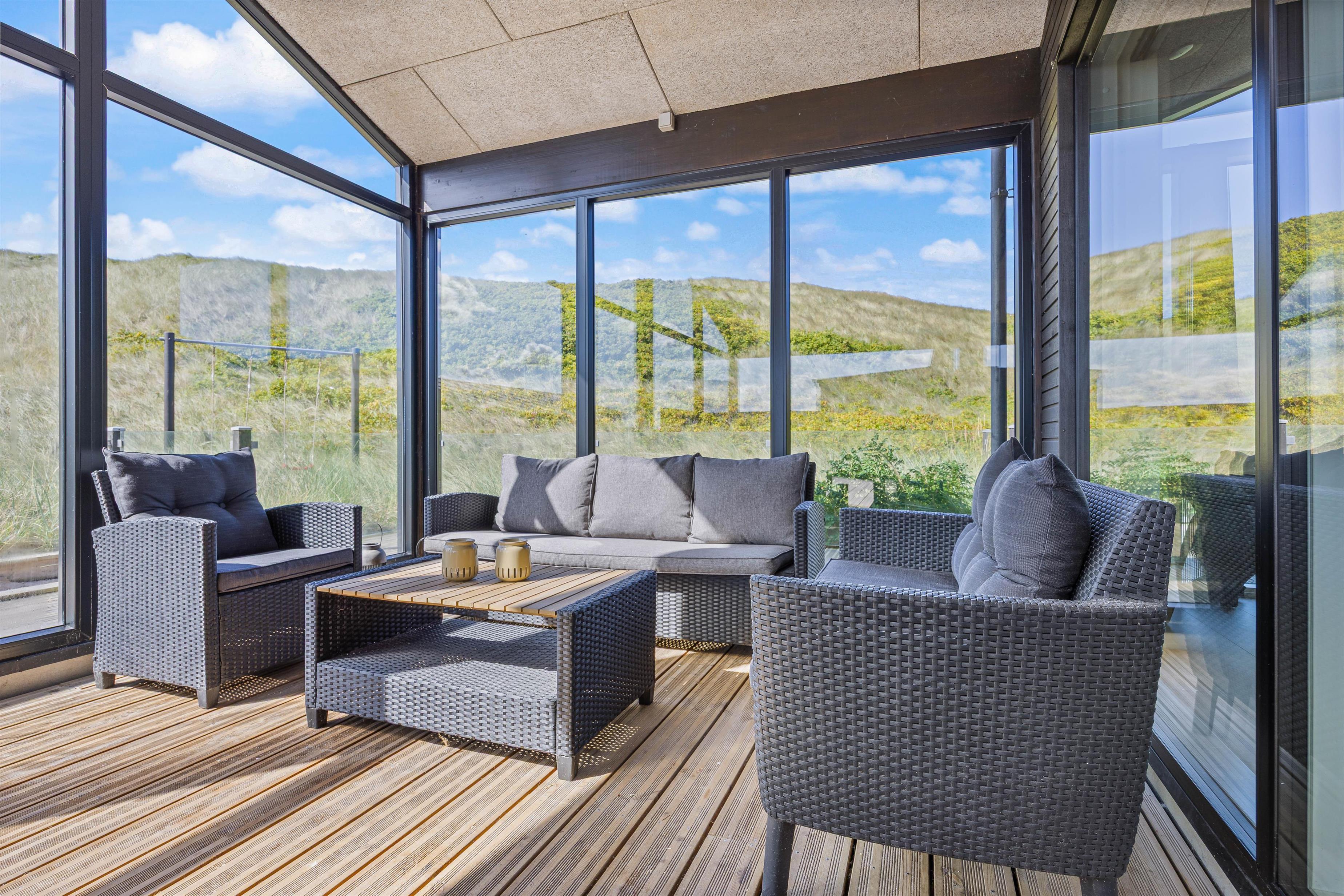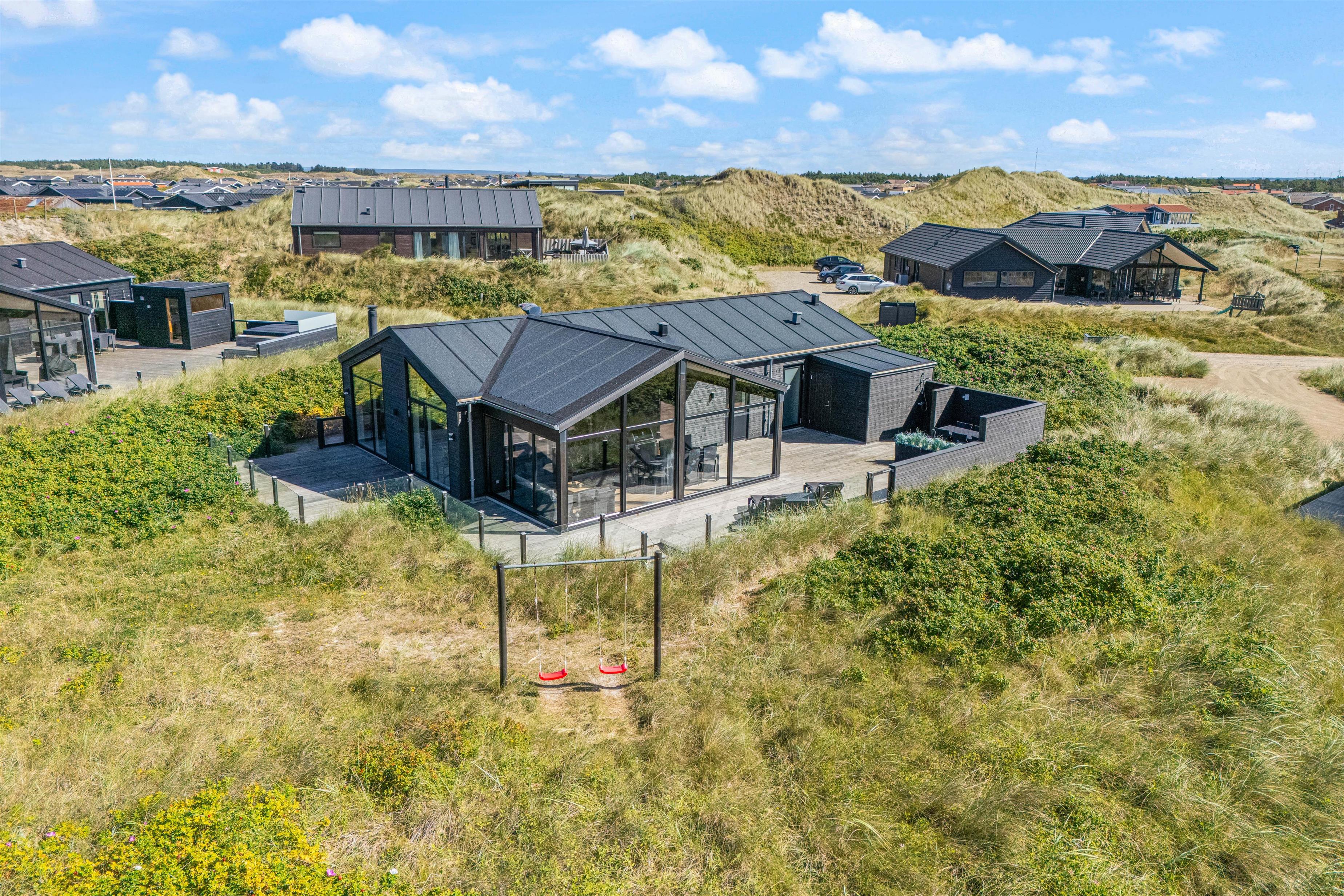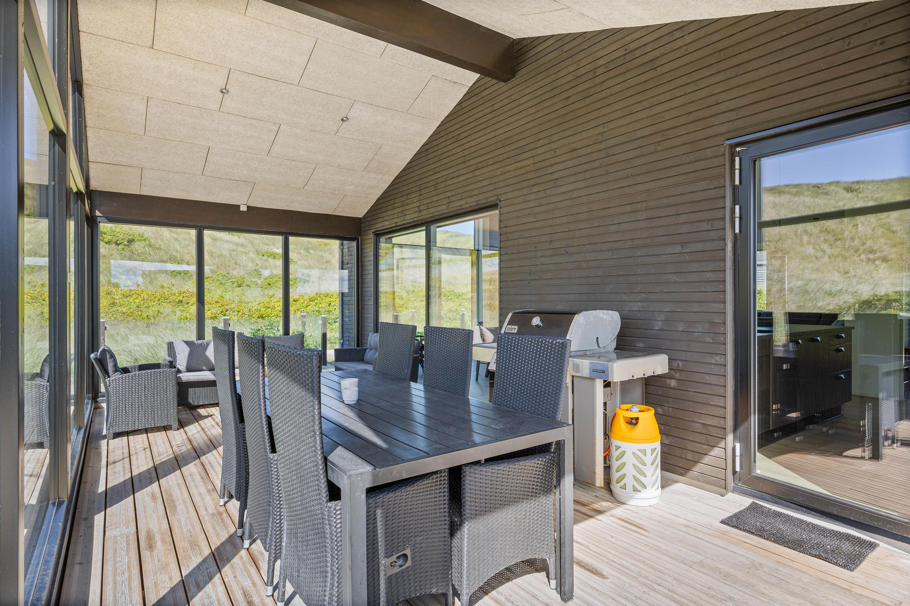 Kun et stenkast fra det brusende Vesterhav ligger dette fantastiske feriehus med plads til 6 personer. Den moderne og stilfulde indretning vil opfylde selv den mest kræsne feriegæsts drømme, og på den lækre terrasse - med udebruser - kan det dejlige solskinsvejr nydes i fulde drag. Udebruseren kan benyttes fra april til november. Hunden er også tilladt her.