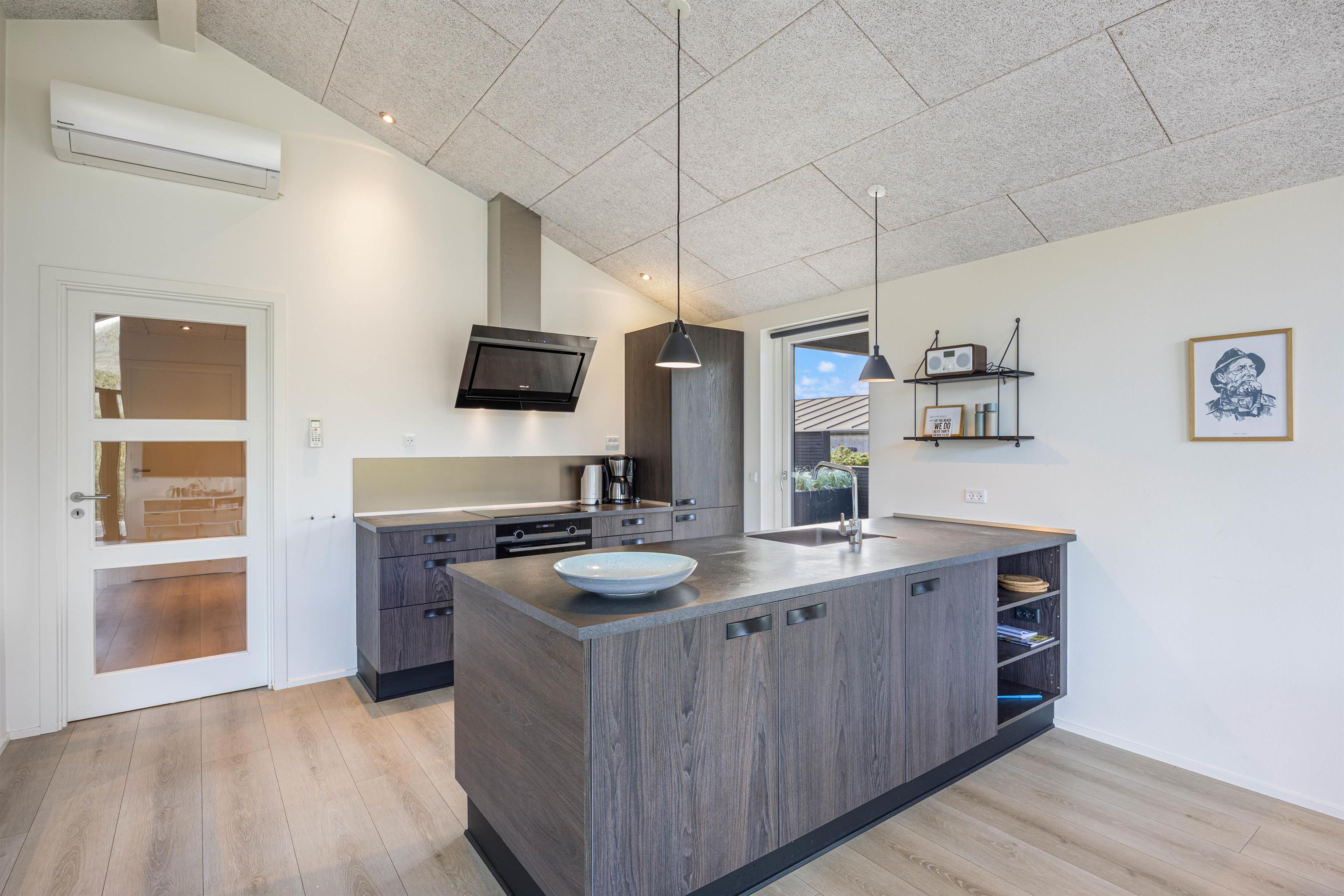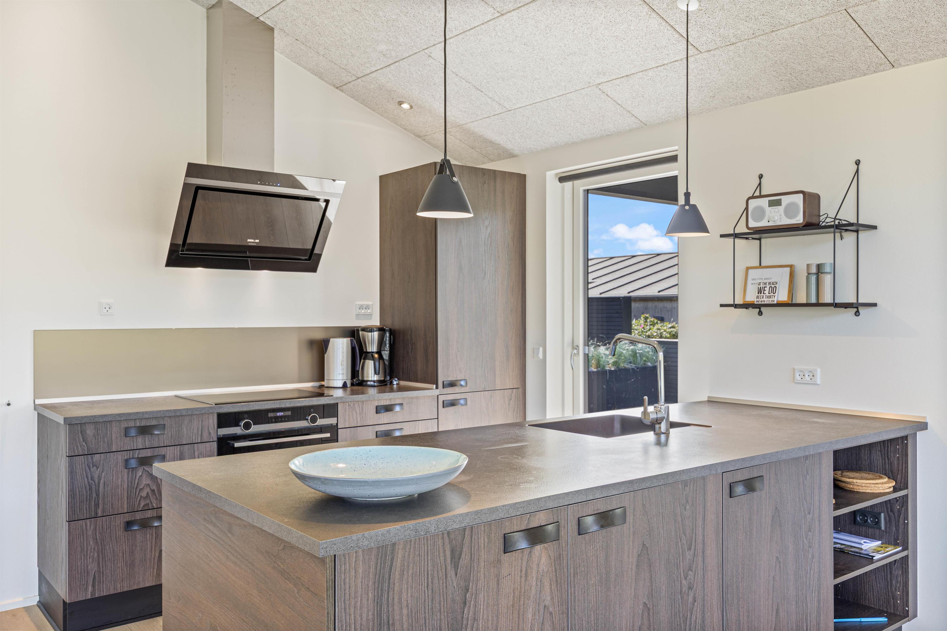 Feriehuset på Bjerregårdsvej 435 er opført i 2019 i flotte materialer, og den stilfulde og moderne indretning sætter rammerne for en luksuriøs ferie lidt ud over det sædvanlige. De lækre møbler passer perfekt ind, og de små dekorationer skaber en hyggelig atmosfære.