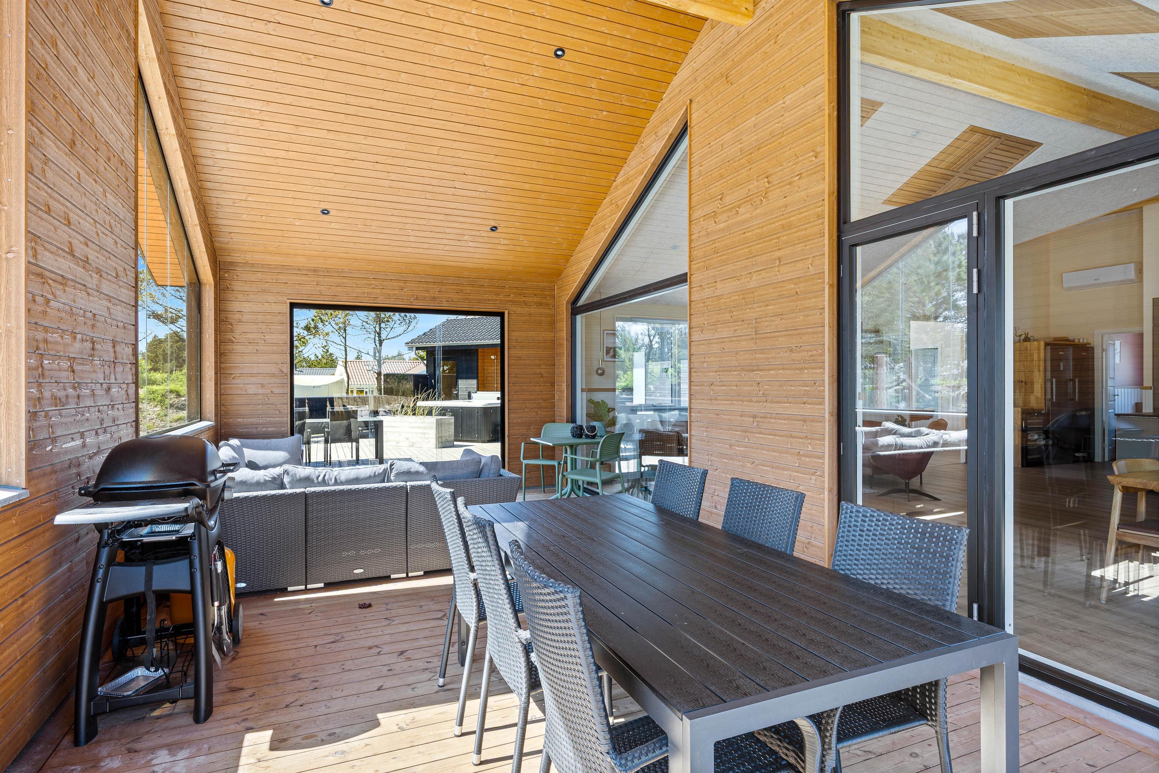 Det er ikke kun indvendigt, at feriehuset på Bjerregårdsvej 57 står knivskarpt. Udenfor venter jer et lækkert, lukket og delvist overdækket terrasseområde. Her kan børnene og/eller hundene trisse frit omkring, mens der dases i solen, drikkes kaffe eller slappes af med en god bog. Havemøbler, liggestole og gasgrillen står klar til jer.
