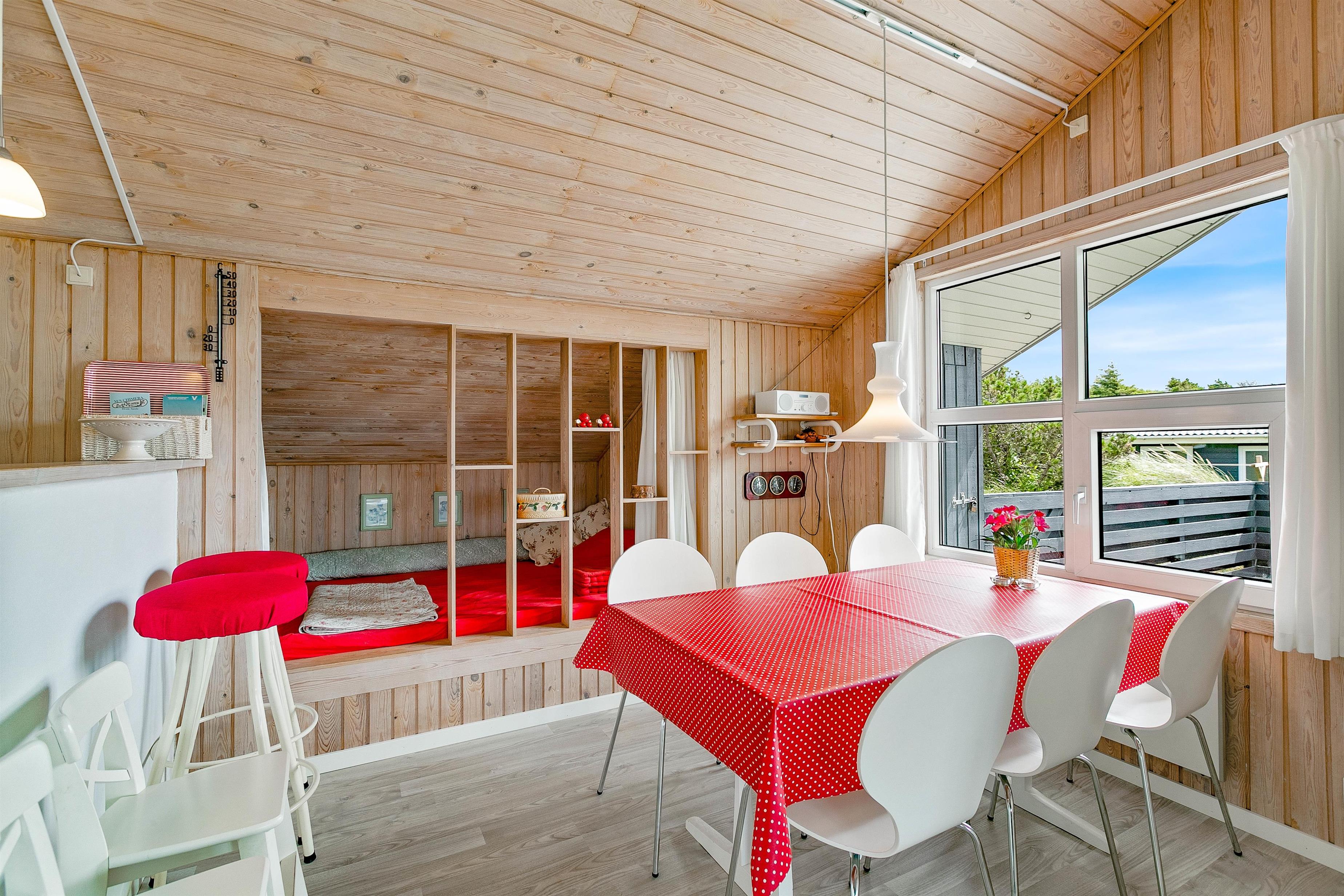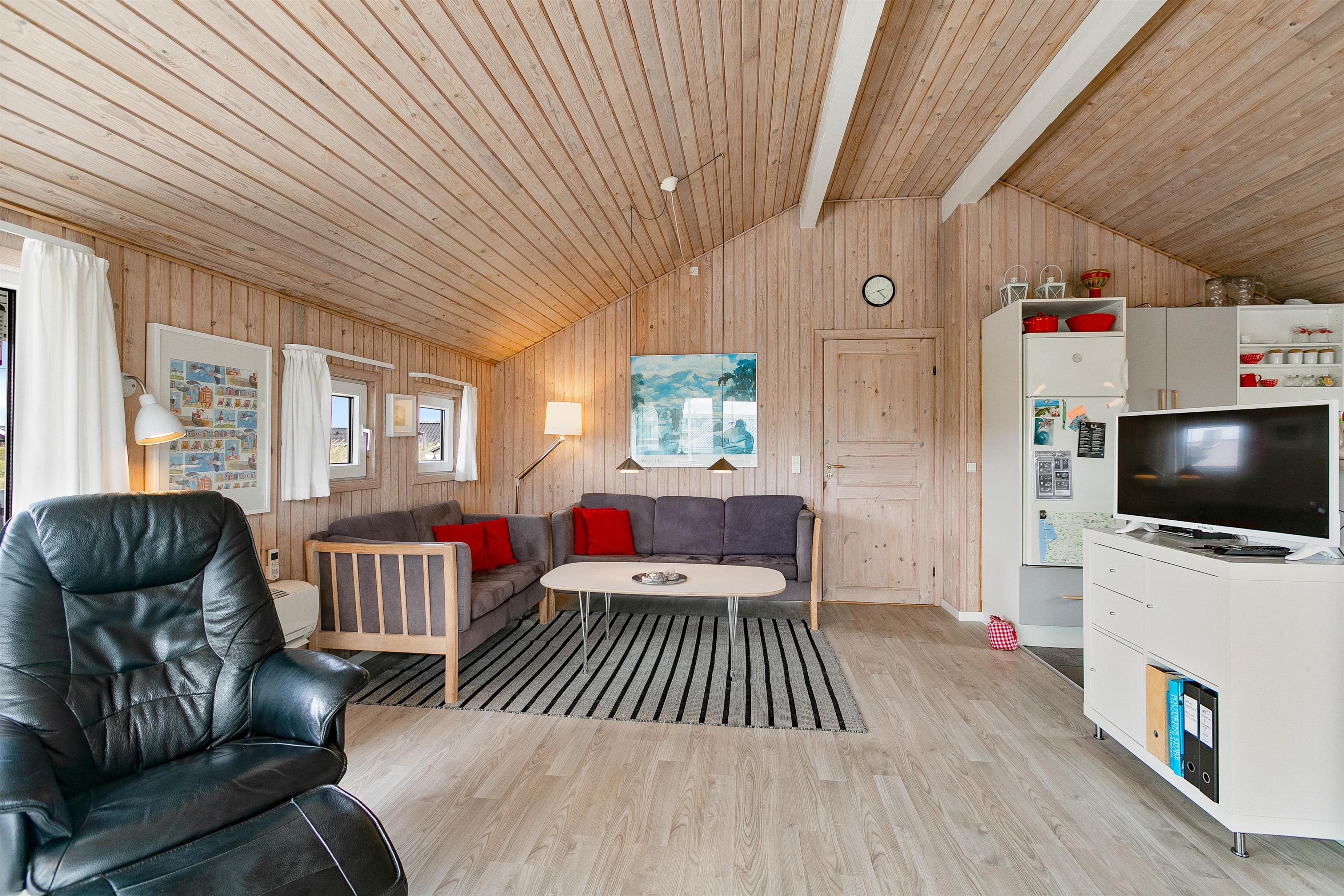 Dette hyggelige og lyse sommerhus finder du på Bjerregårdsvej 204. Feriehuset har en stor, lukket terrasse, hvor det altid er muligt at finde læ, og både stranden og købmanden ligger kun et kort stykke væk.