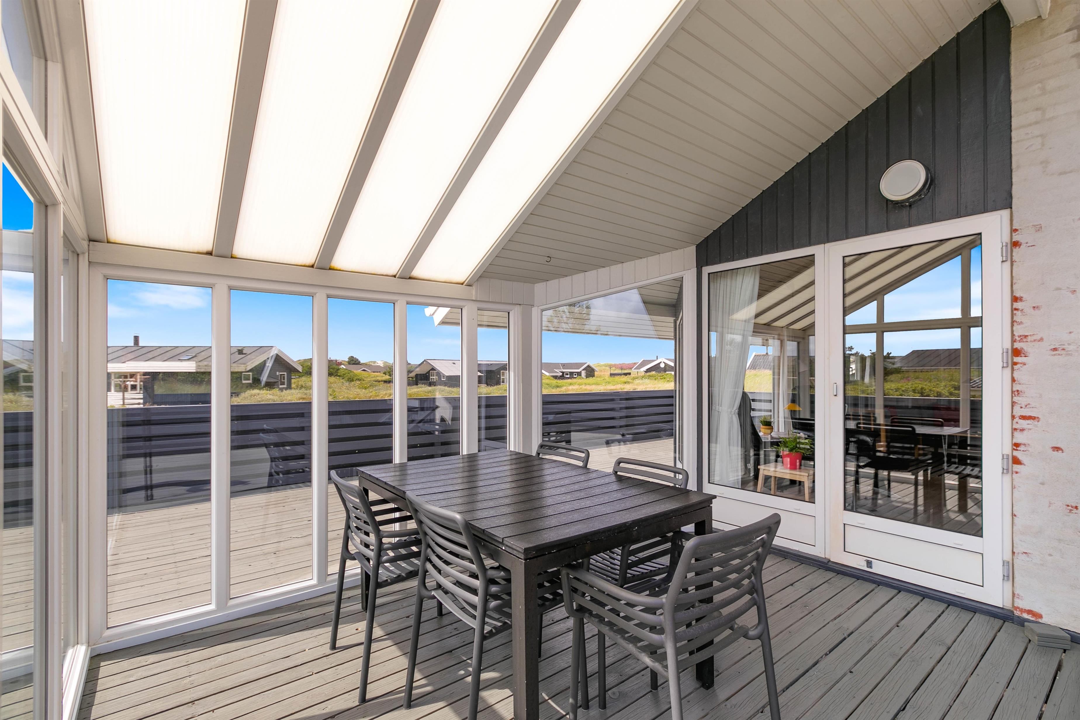 De store vinduespartier på terrassen gør, at I kan sidde udenfor og nyde udsigten, selv når vejret er mindre godt. En hyggelig grillaften for hele familien er en perfekt afslutning på dagen, hvor I kan sidde rundt om havebordet og planlægge den næste udflugt.