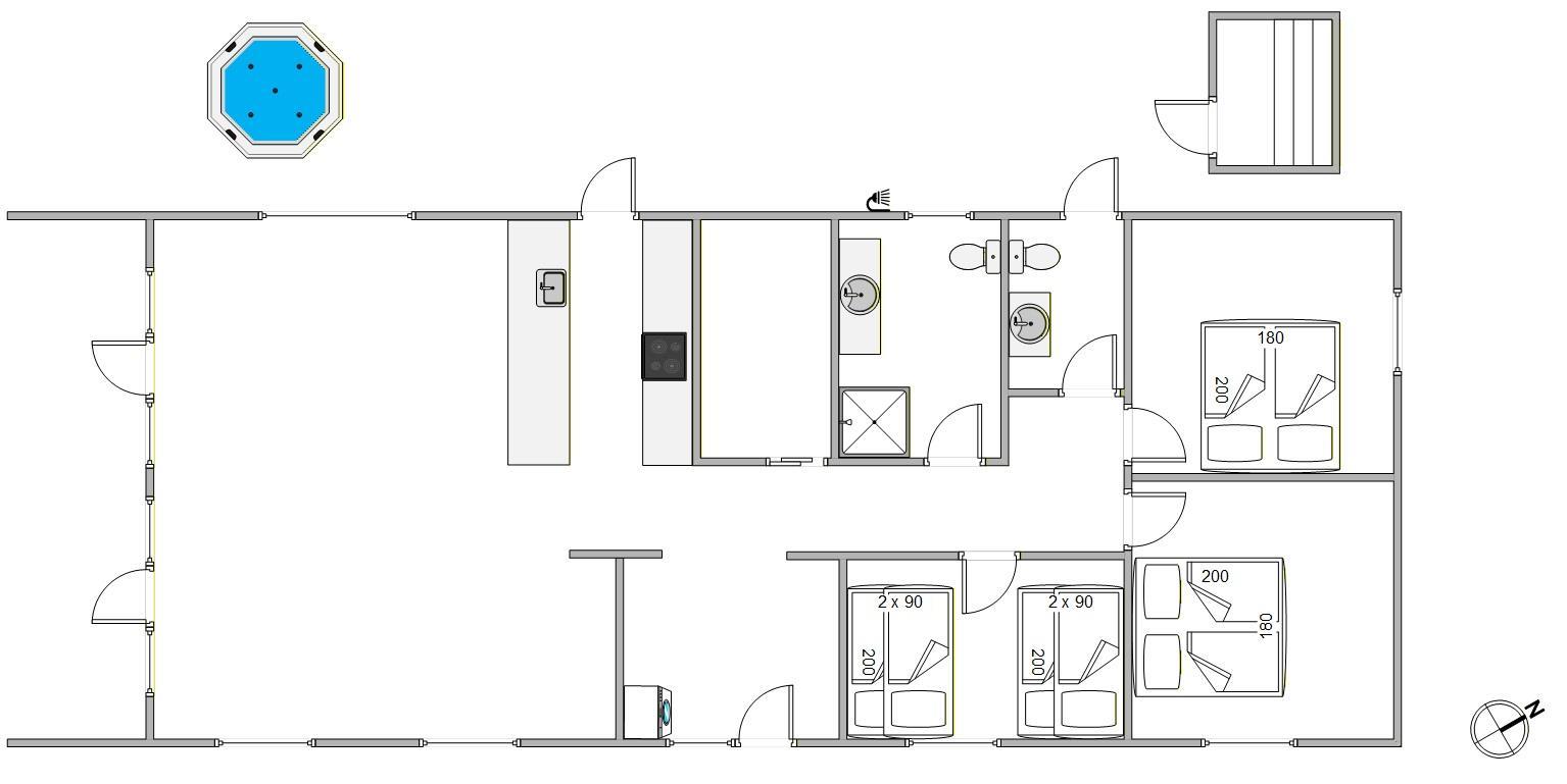 Sommerhuset rummer alle hverdagens hjælpere såsom opvaskemaskine, separat fryser (60L) plus vaskemaskine og tørretumbler, som gør det let at holde tøjet frisk, selv på længere ferier. Desuden er der naturligvis gulvvarme i hele sommerhuset.