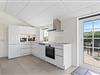 Det moderne feriehus er godt indrettet med åbent køkken i forbindelse med stuen. Det moderne køkken er selvfølgelig udstyret med opvaskemaskine og mikroovn, og det bliver en ren fornøjelse for feriens kok at tilberede dagens måltider. I både køkken og stue er der flot klinkegulv med gulvvarme, der giver en behagelig temperatur. Og om det så bare skulle være for hyggens skyld, kan der tændes op i brændeovnen, der er centralt placeret i rummet.