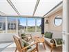 Et særligt højdepunkt ved huset er den dejlige udestue. Med sine komfortable møbler er den det ideelle sted til mange afslappede timer – selv når vejret ikke viser sig fra sin bedste side.