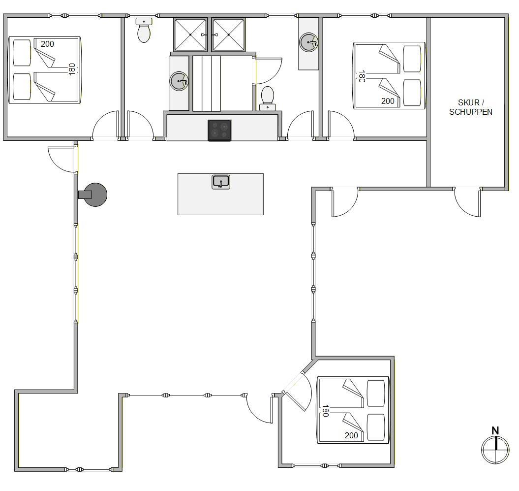 Sommerhuset byder på 3 indbydende soveværelser, som alle er indrettet med en dobbeltseng og giver jer gode rammer for afslappende nætter. De 2 moderne badeværelser – hvoraf det ene har gulvvarme – sørger for høj komfort, selv når huset er fuldt belagt med 6 personer. Køkkenet er fuldt udstyret, så I nemt kan tilberede feriens måltider. Opvaskemaskinen gør hverdagen ekstra bekvem, og vaskemaskinen bidrager til et ubekymret ophold.