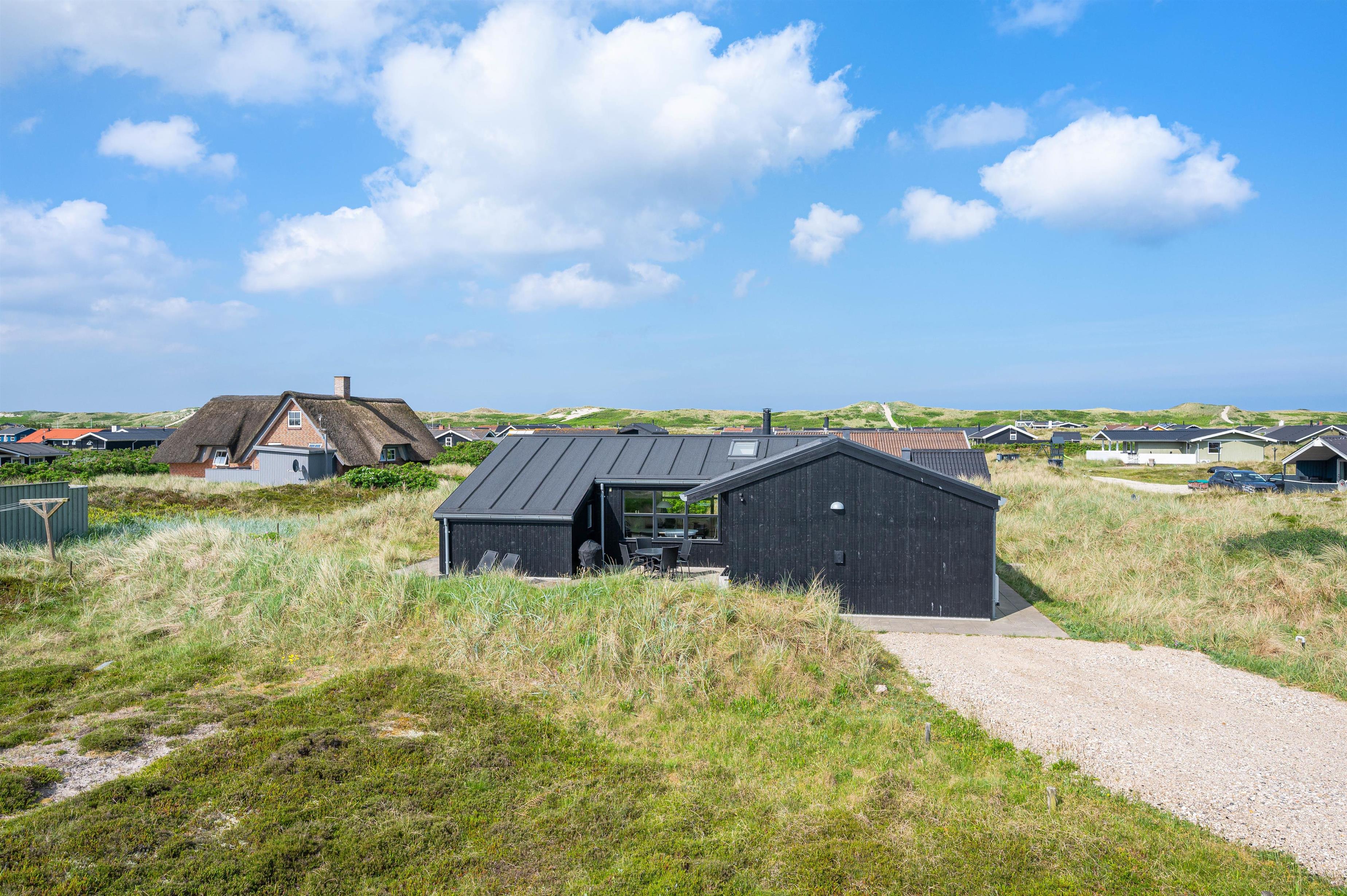 Det moderne feriehus på Arvidvej 258 har en rigtig fin beliggenhed. Stranden ligger blot 500 meter fra sommerhuset og kan hurtigt nås til fods. Her kan I nyde skønne solskinstimer og gå lange ture i sandet – måske endda med de bare fødder i vandkanten?