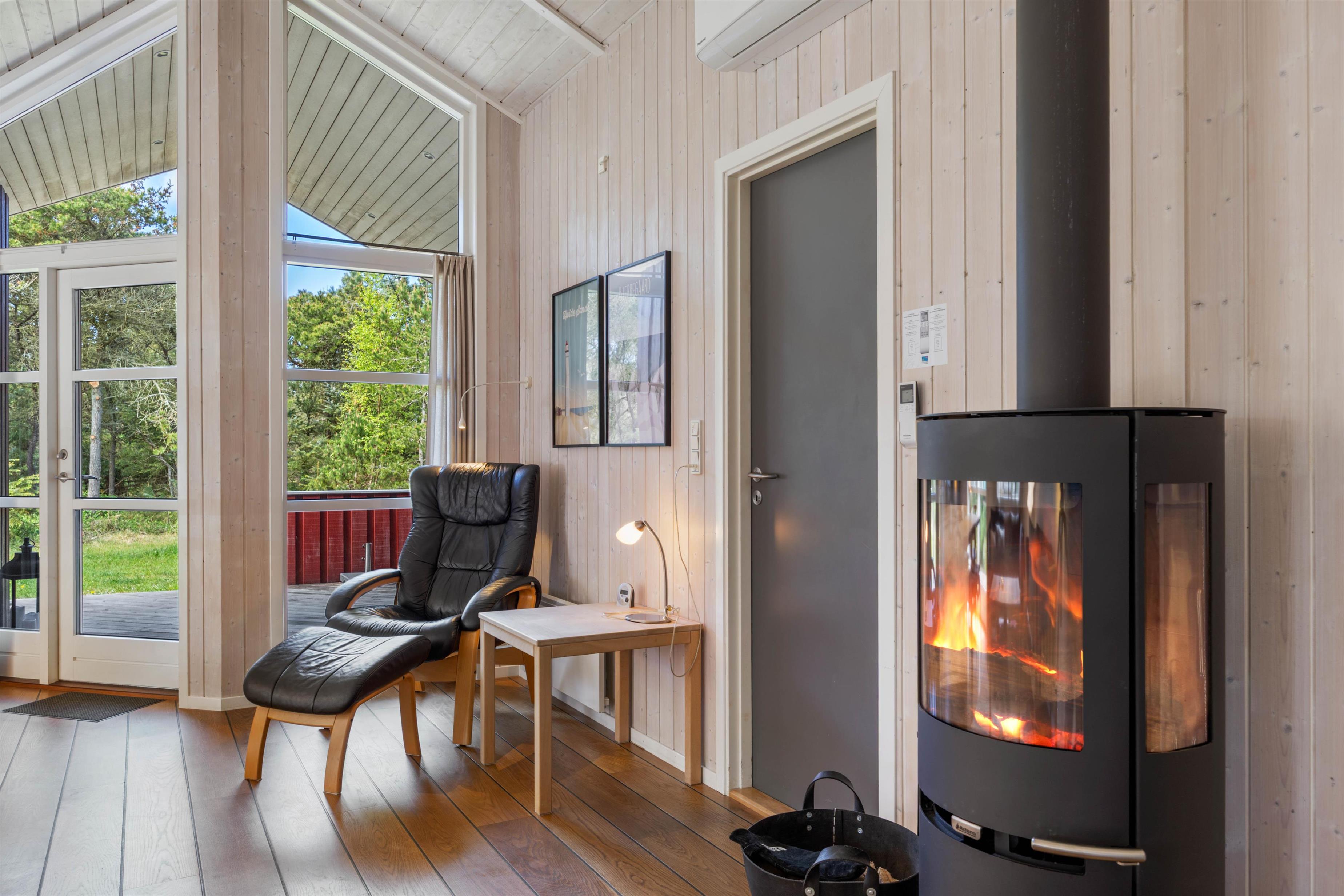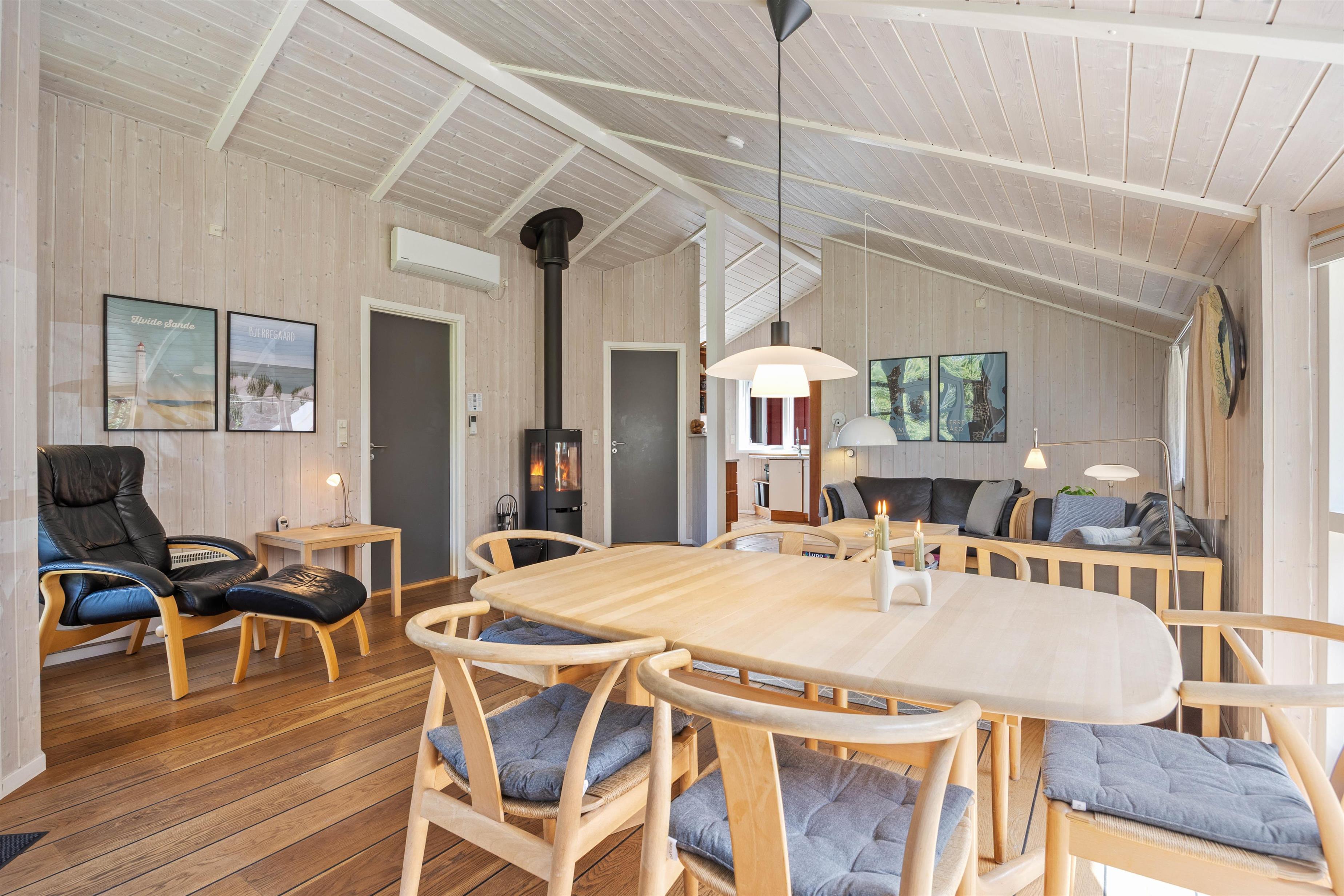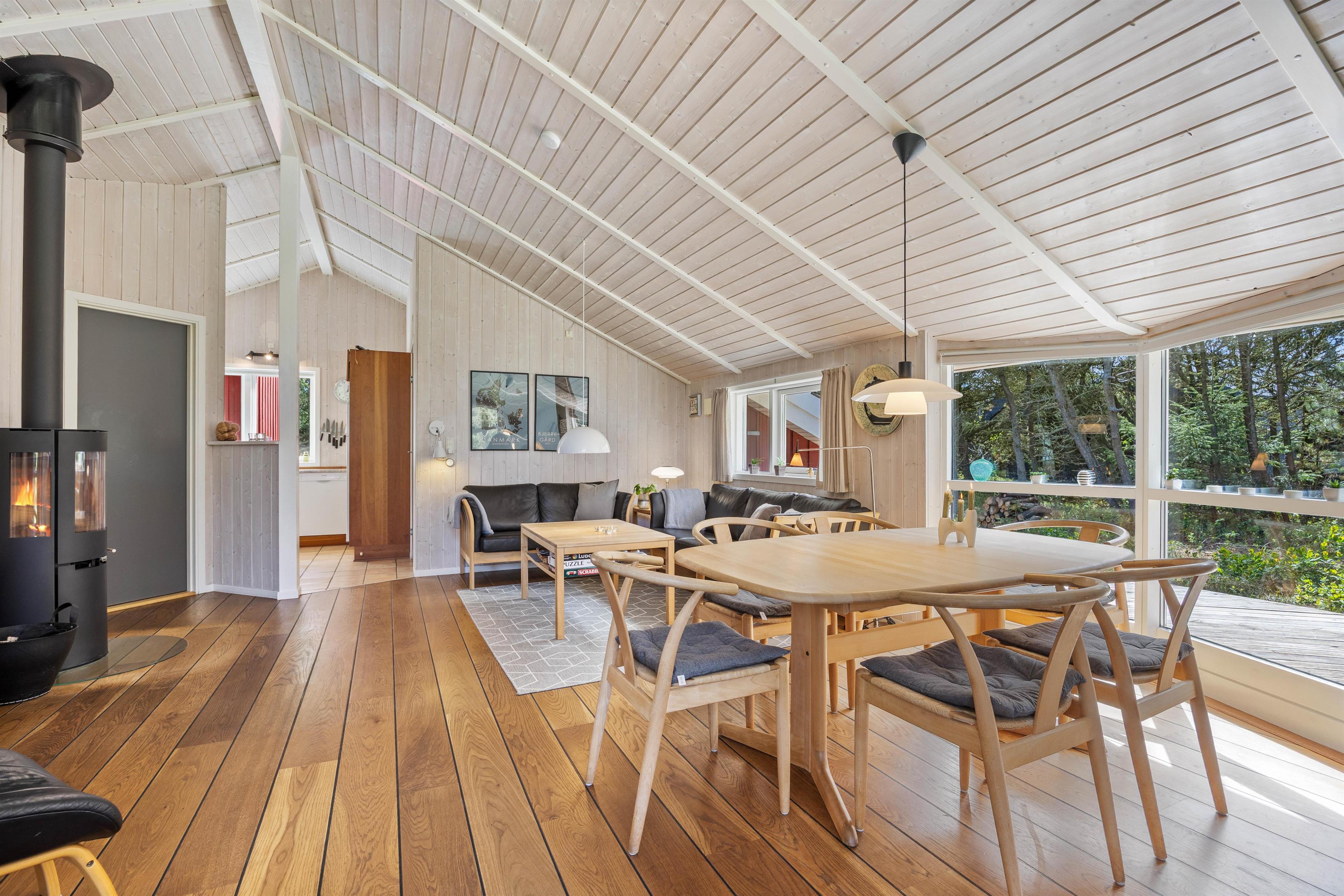 Når I træder ind i dette fine sommerhus, kan I rigtig mærke stemningen af ferie og afslapning. Feriehuset er lyst og dejlig indrettet. Et ”rigtigt” træferiehus med trægulve, trævægge/lofter og synlige bjælker, hvilket giver en rigtig hyggelig atmosfære.