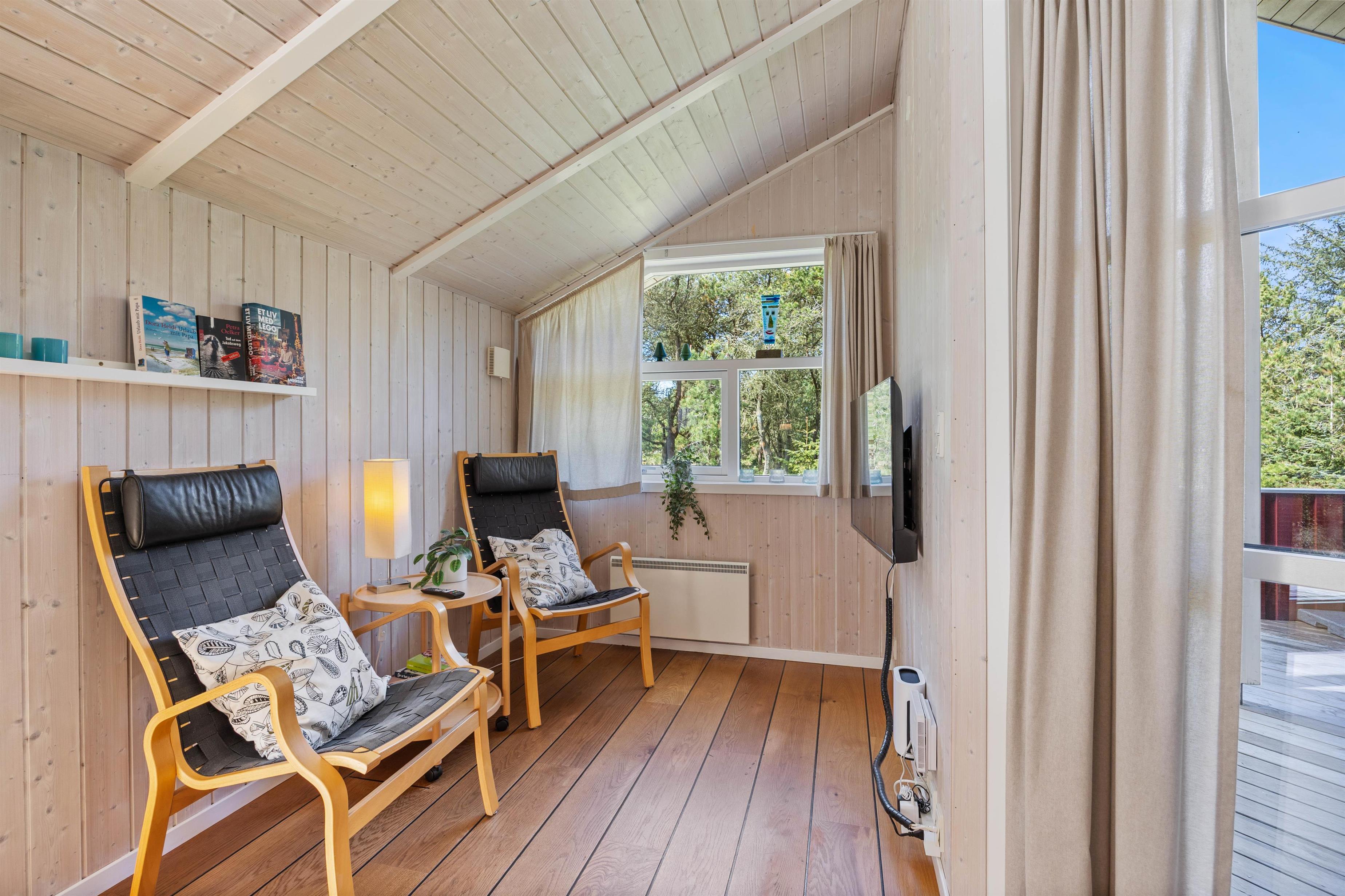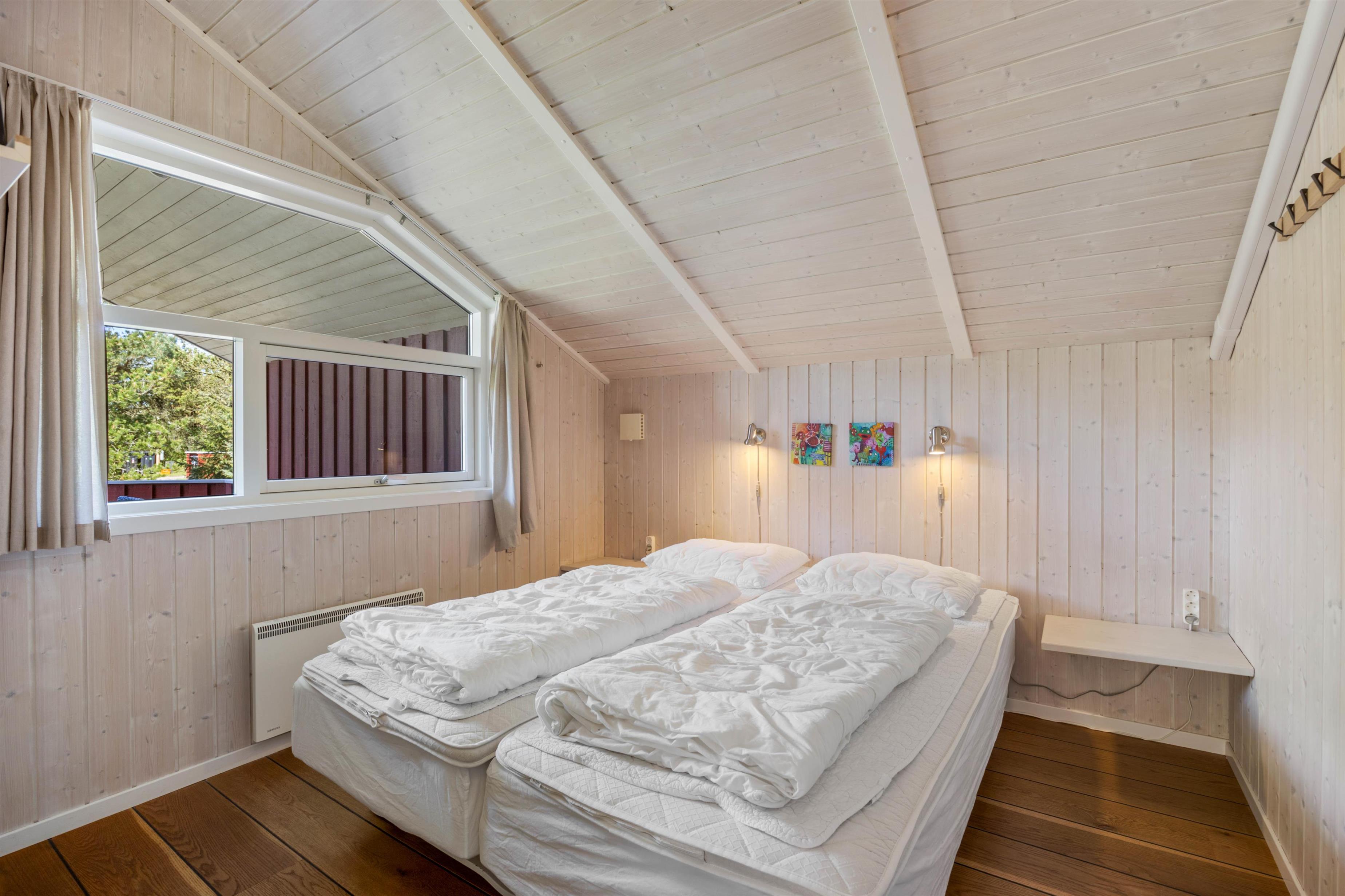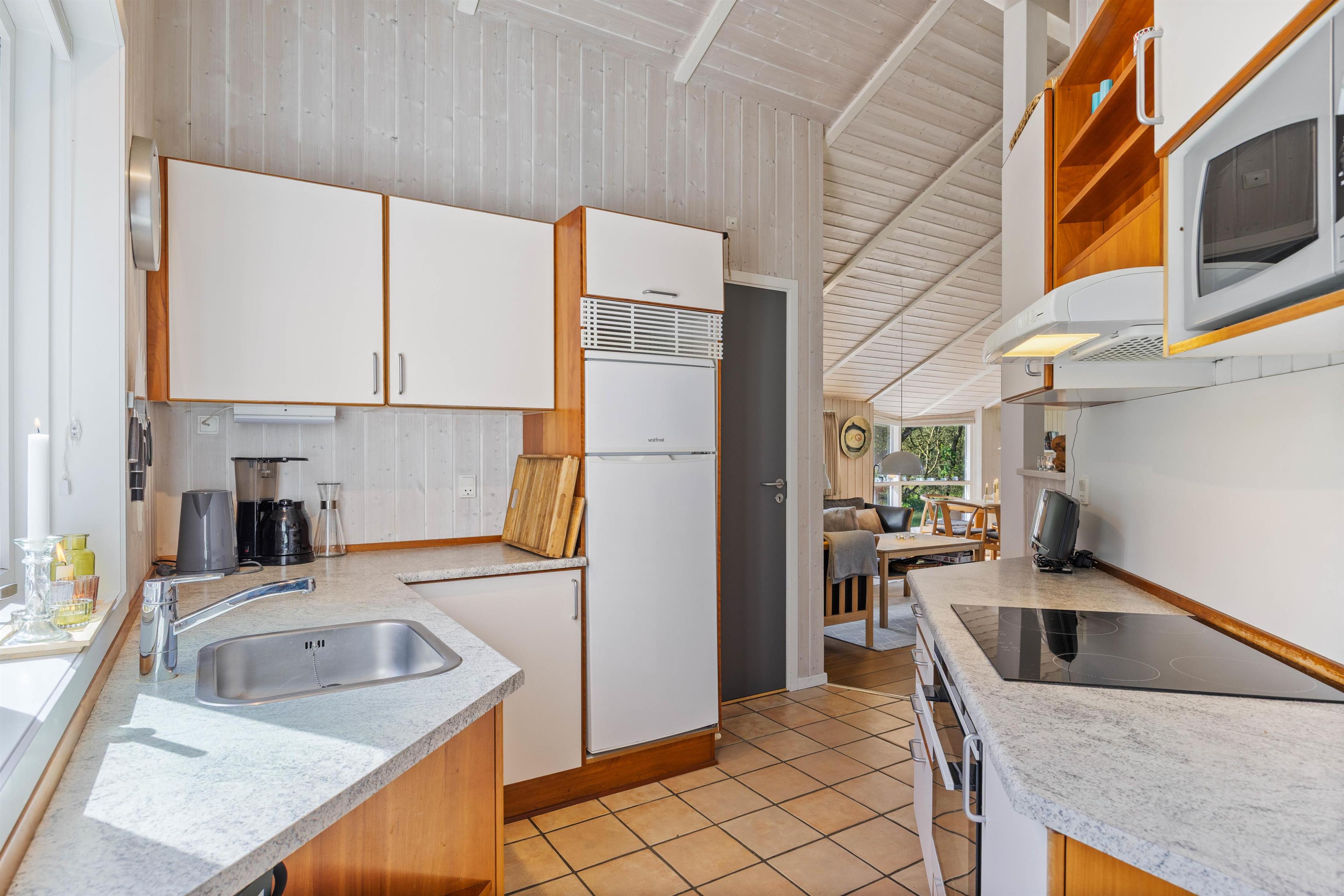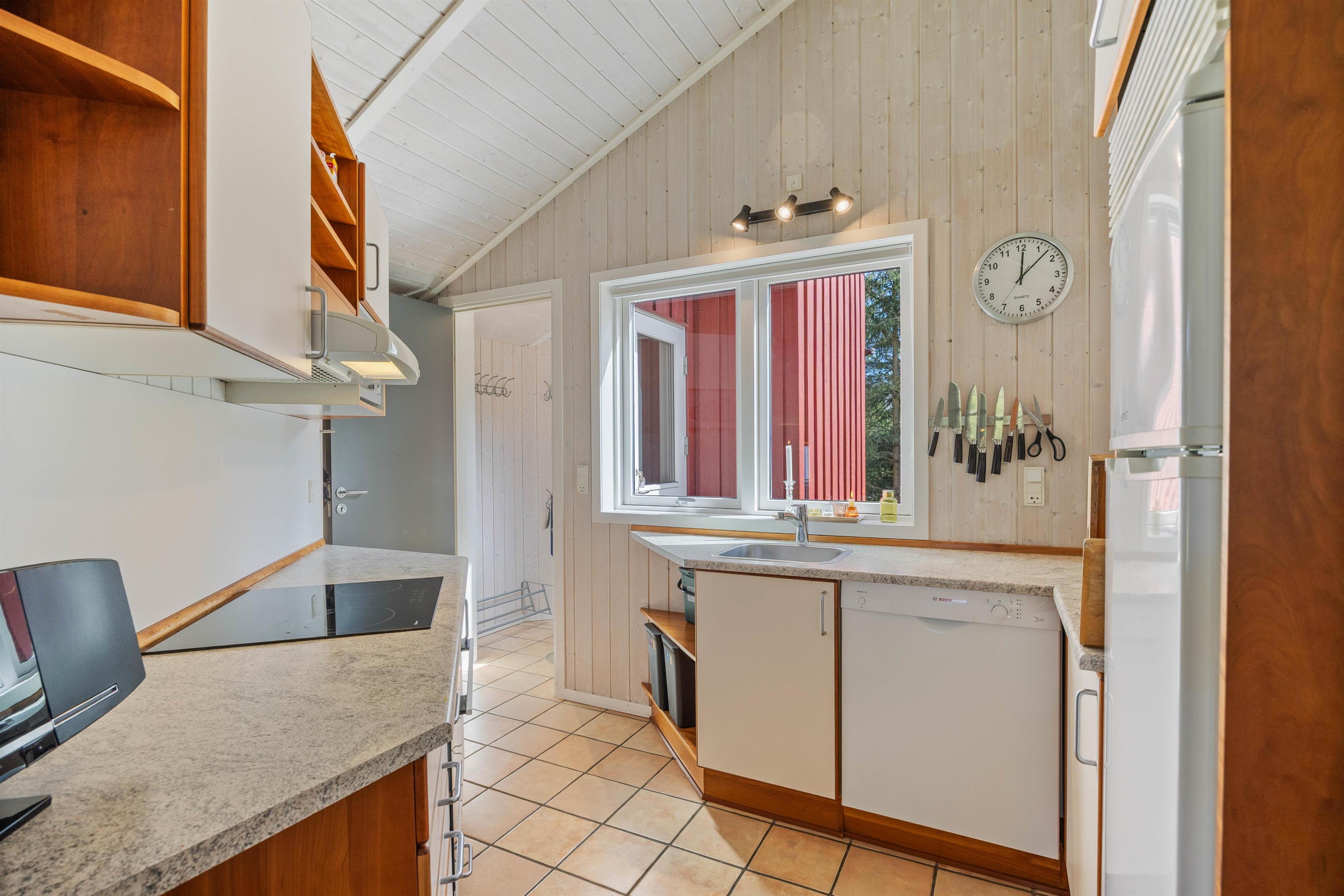 Når I træder ind i dette fine sommerhus, kan I rigtig mærke stemningen af ferie og afslapning. Feriehuset er lyst og dejlig indrettet. Et ”rigtigt” træferiehus med trægulve, trævægge/lofter og synlige bjælker, hvilket giver en rigtig hyggelig atmosfære.