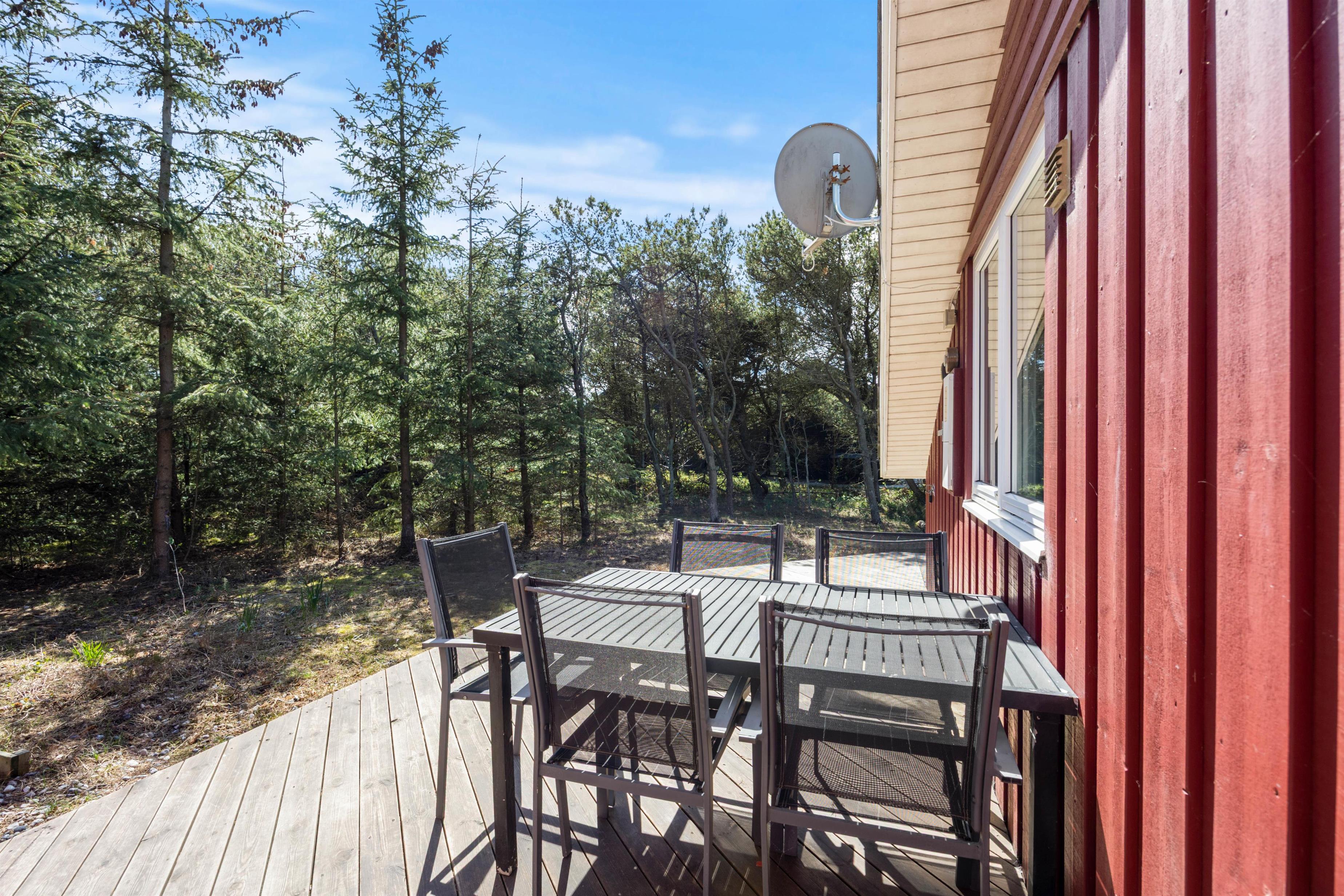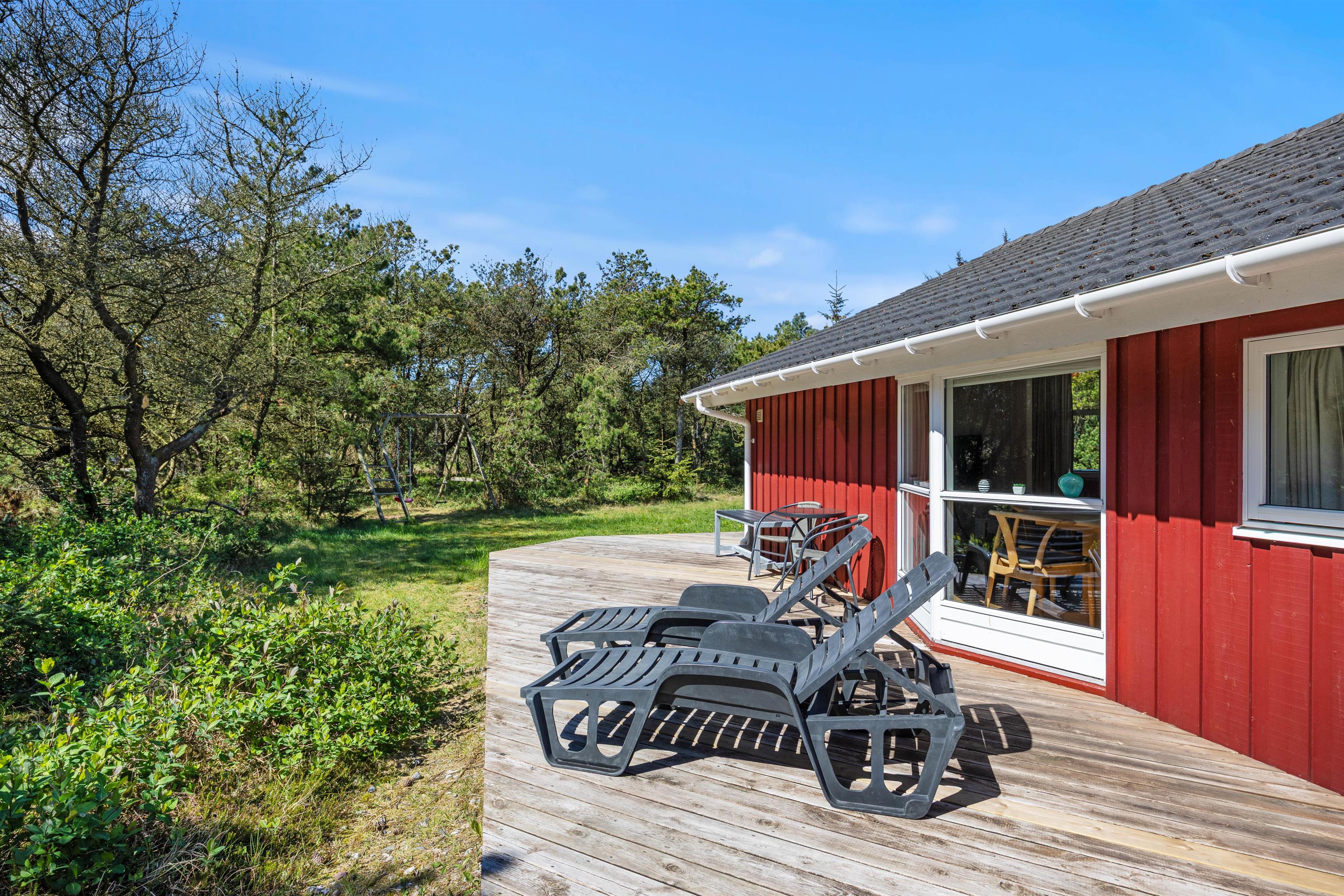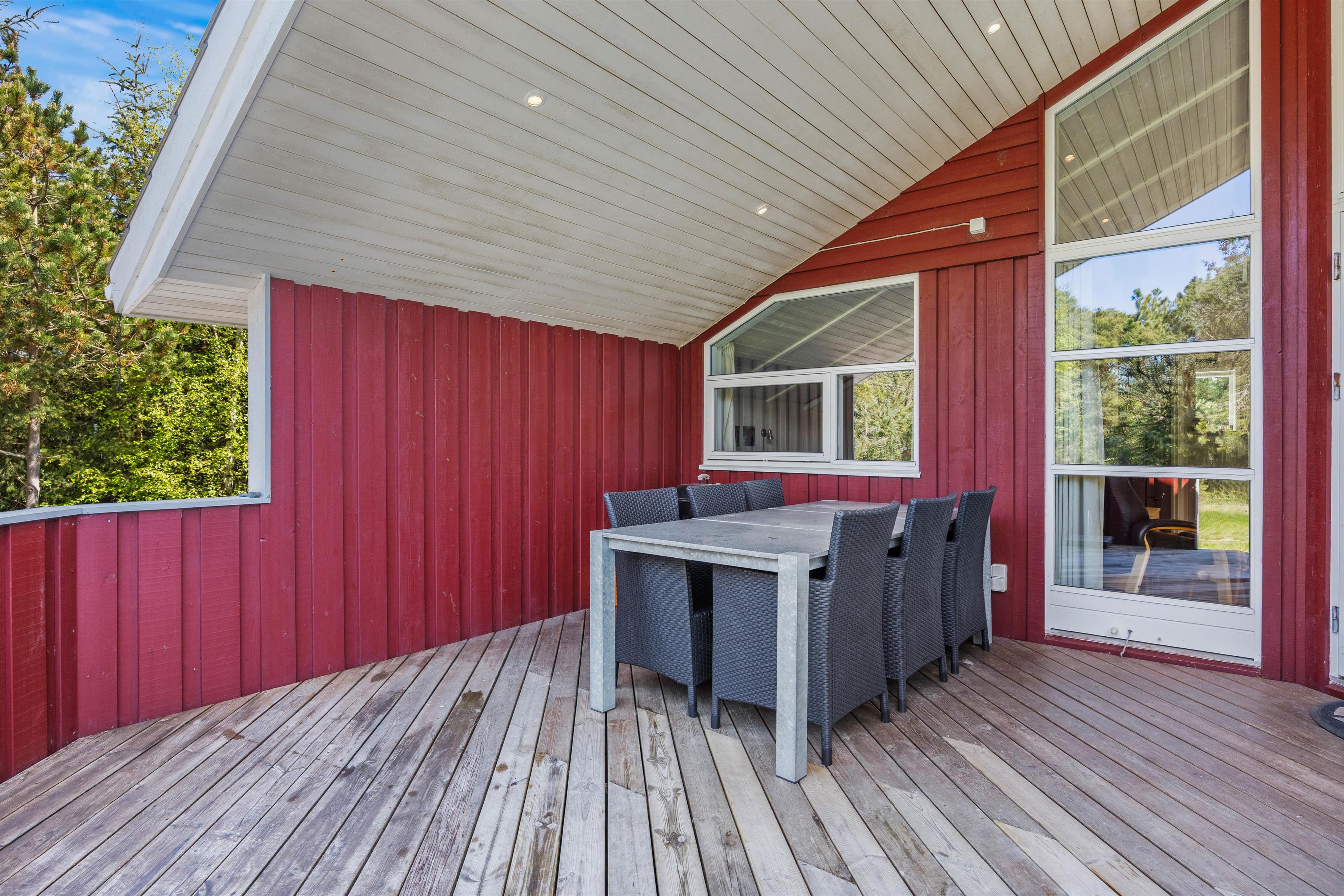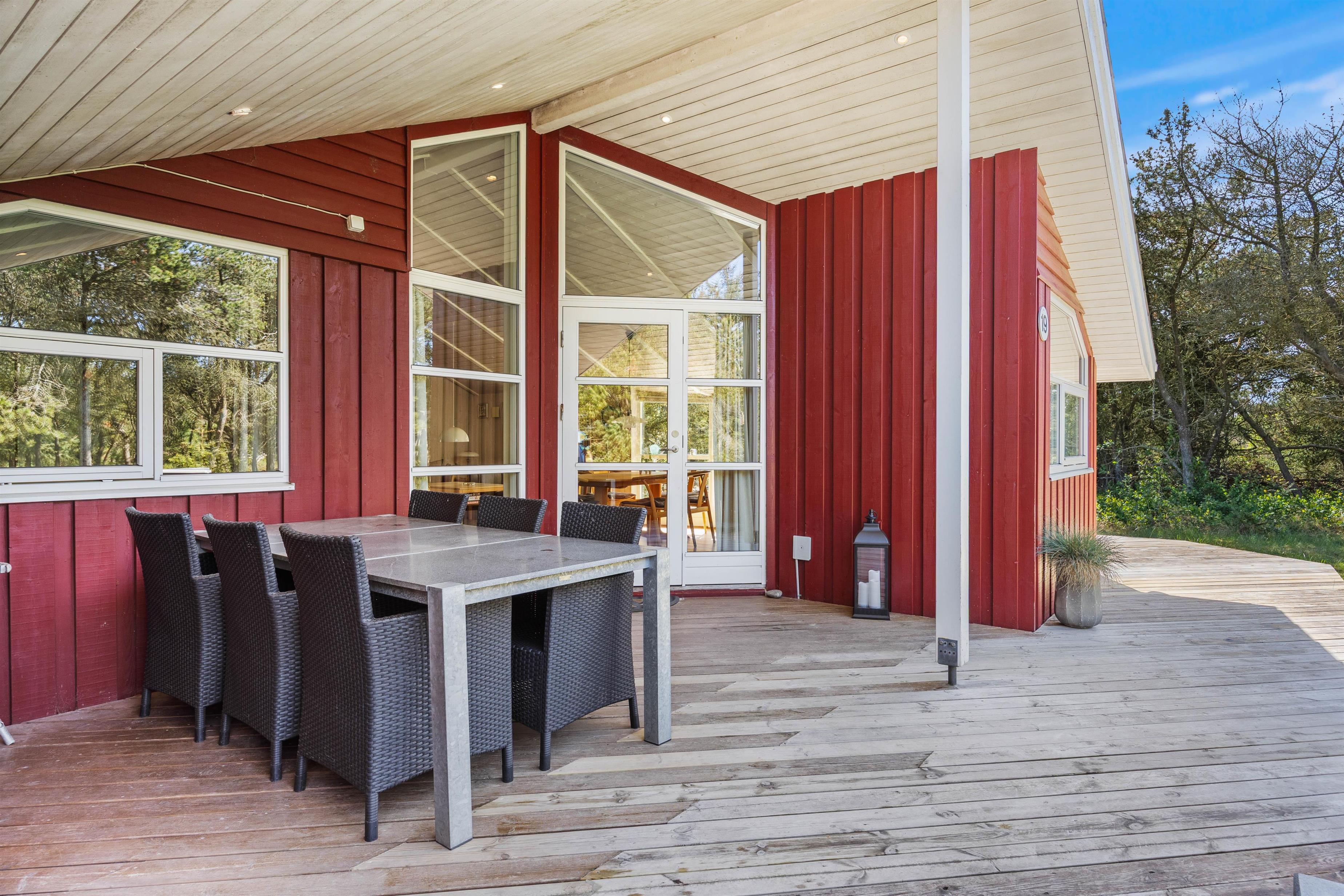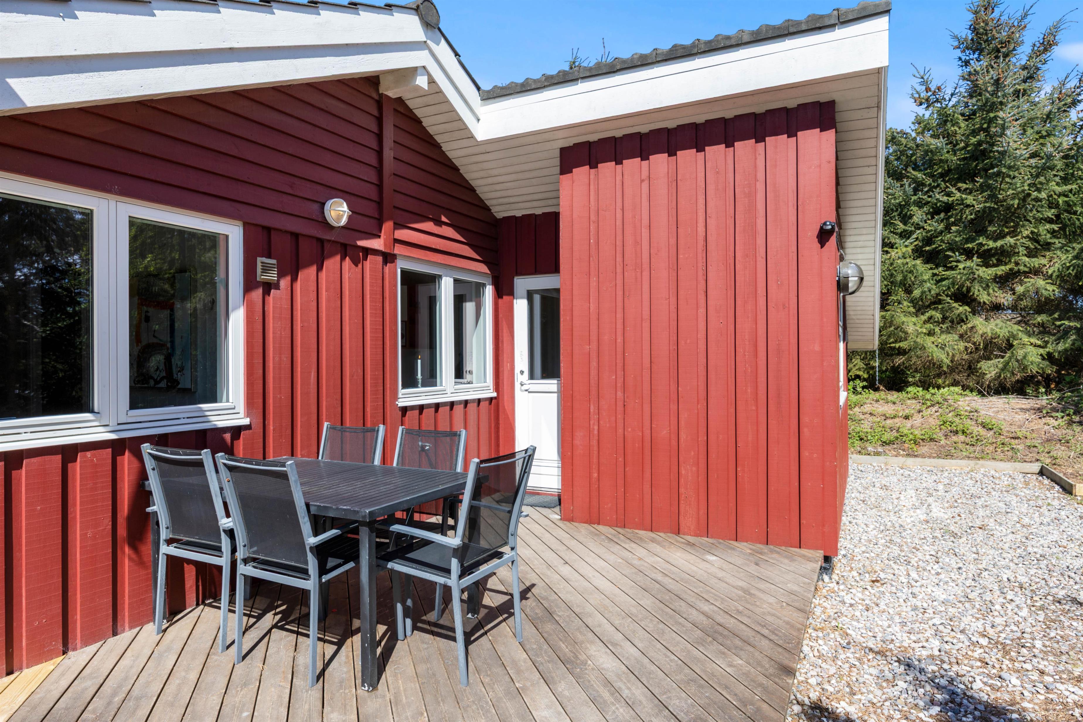 Det store terrasseareal mod syd og vest indbyder til afslapning og ferie ved sommerhuset. Nyd eftermiddagssolen i liggestolene, mens børnene gynger og leger på grunden. Lav en dejlig middag på grillen og hyg jer med aftensmaden, mens I lytter til stilheden eller vindens susen og ser solen gå ned mod vest.