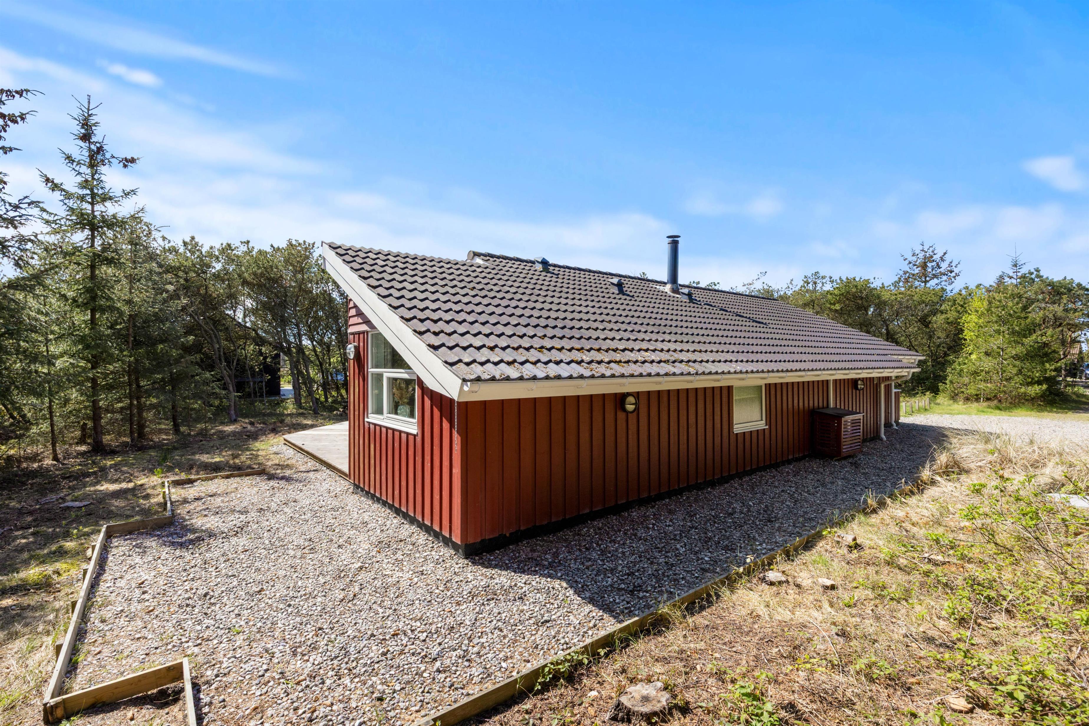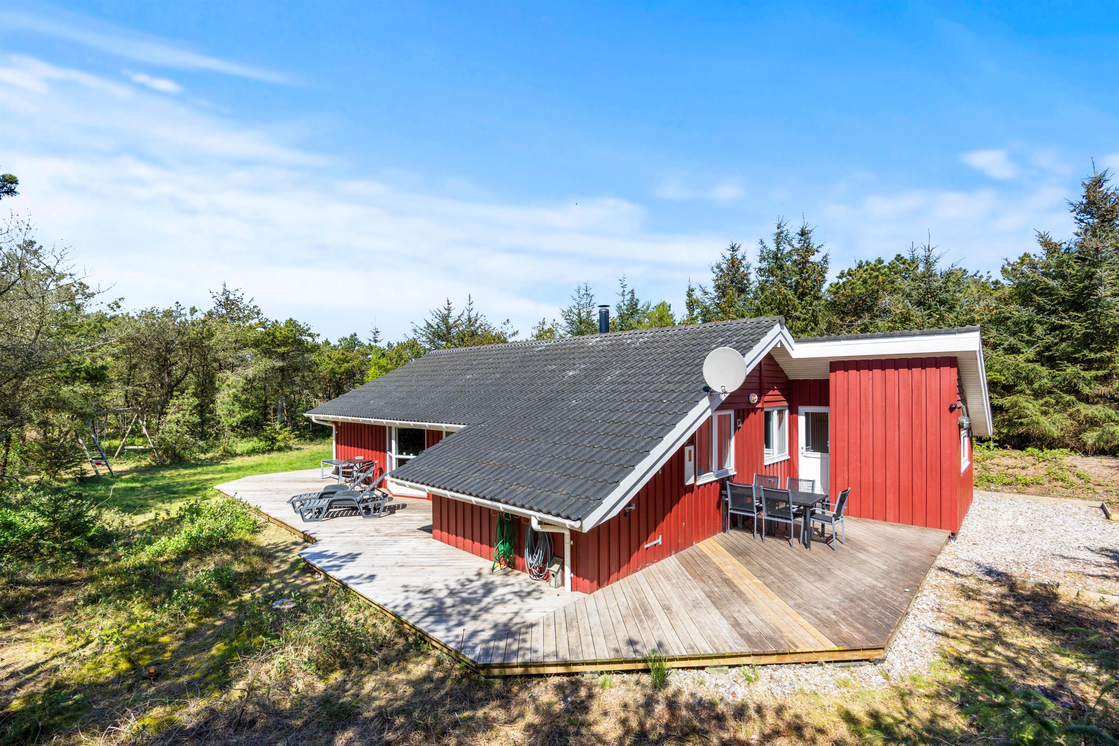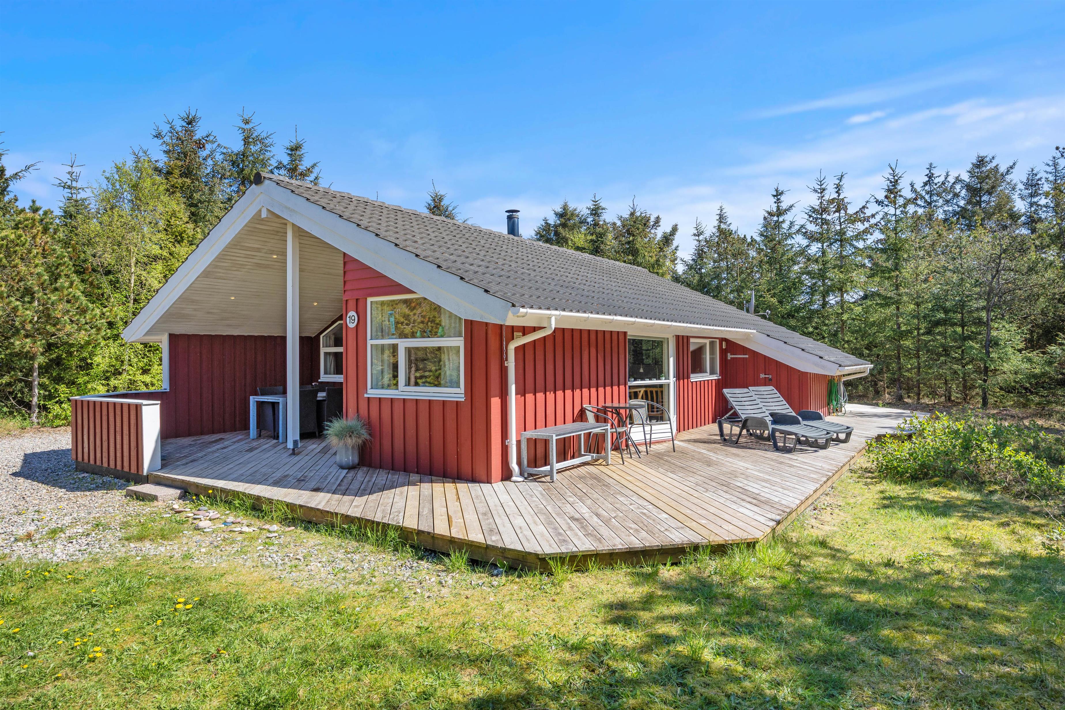 På Bilbergsvej 19 i det nordlige Bjerregård finder I dette hyggelige træhus med rigtig feriestemning. Sommerhuset ligger på en stor, helt lukket og ugeneret grund, omgivet af træer og kun 800 meter fra det smukke Vesterhav med de brede sandstrande. Perfekt til familieferien – og her må I gerne tage jeres bedste ven, hunden, med.