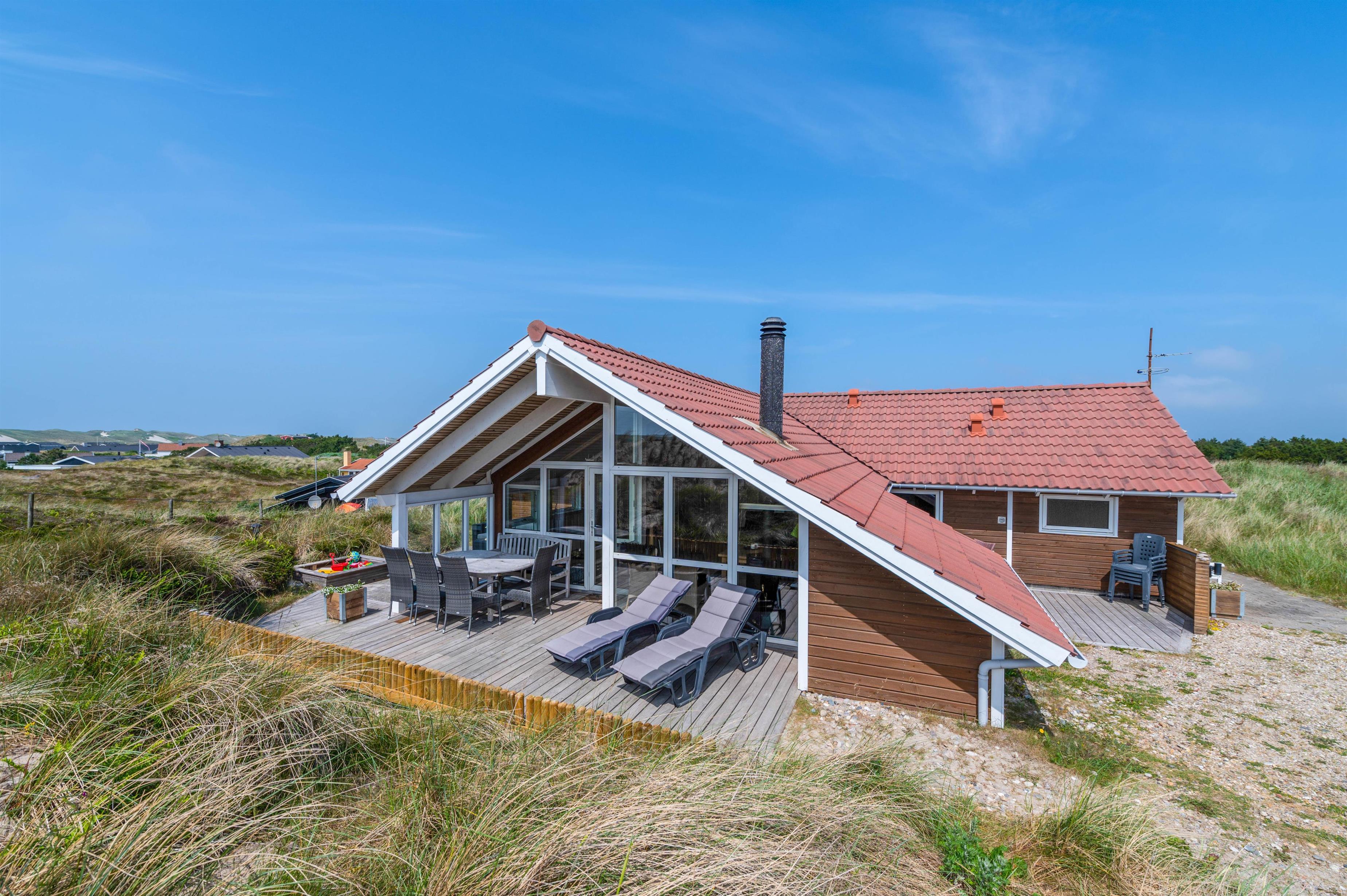 På Bjerregårdsvej 133 B ligger dette flotte og meget velholdte sommerhus med fantastisk skøn og uforstyrret beliggenhed. Feriehuset er bygget på toppen af en klit og fra hus og terrasse har man en vidunderlig udsigt over området. Sommerhuset har plads til 8 personer i de 4 soveværelser.