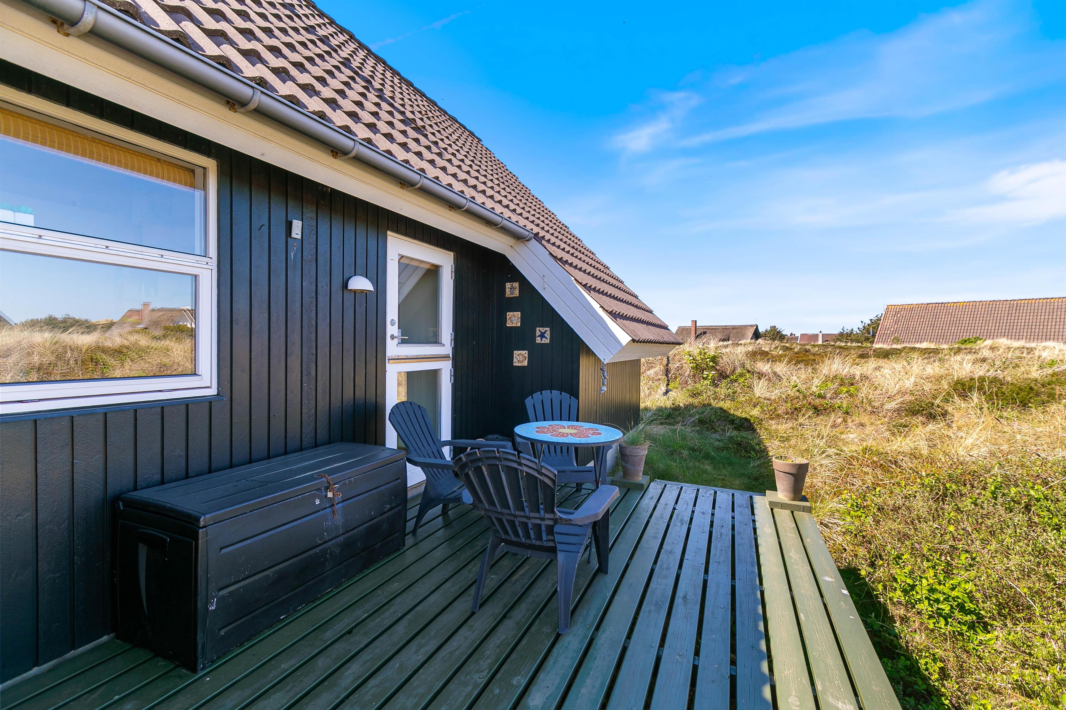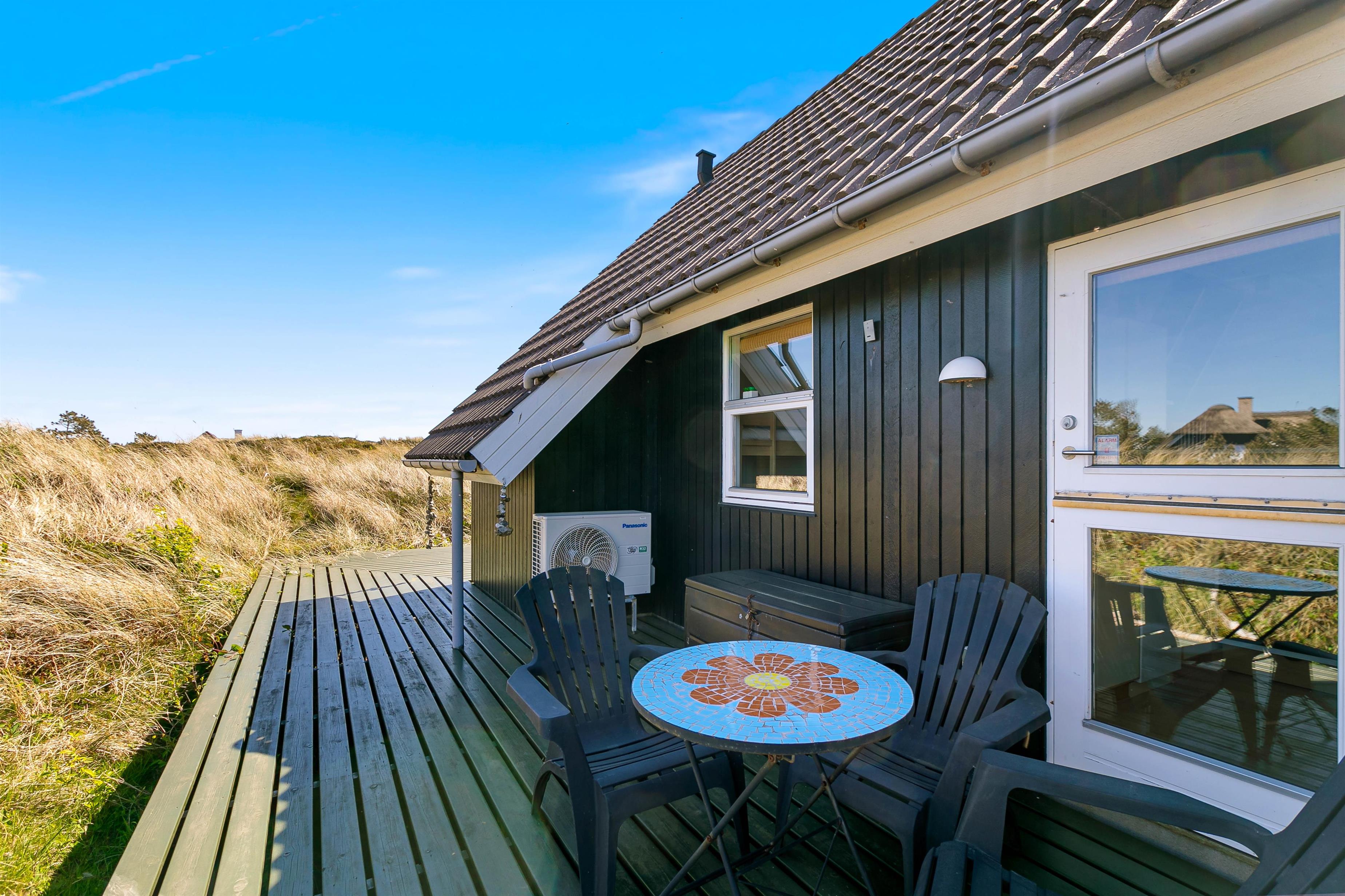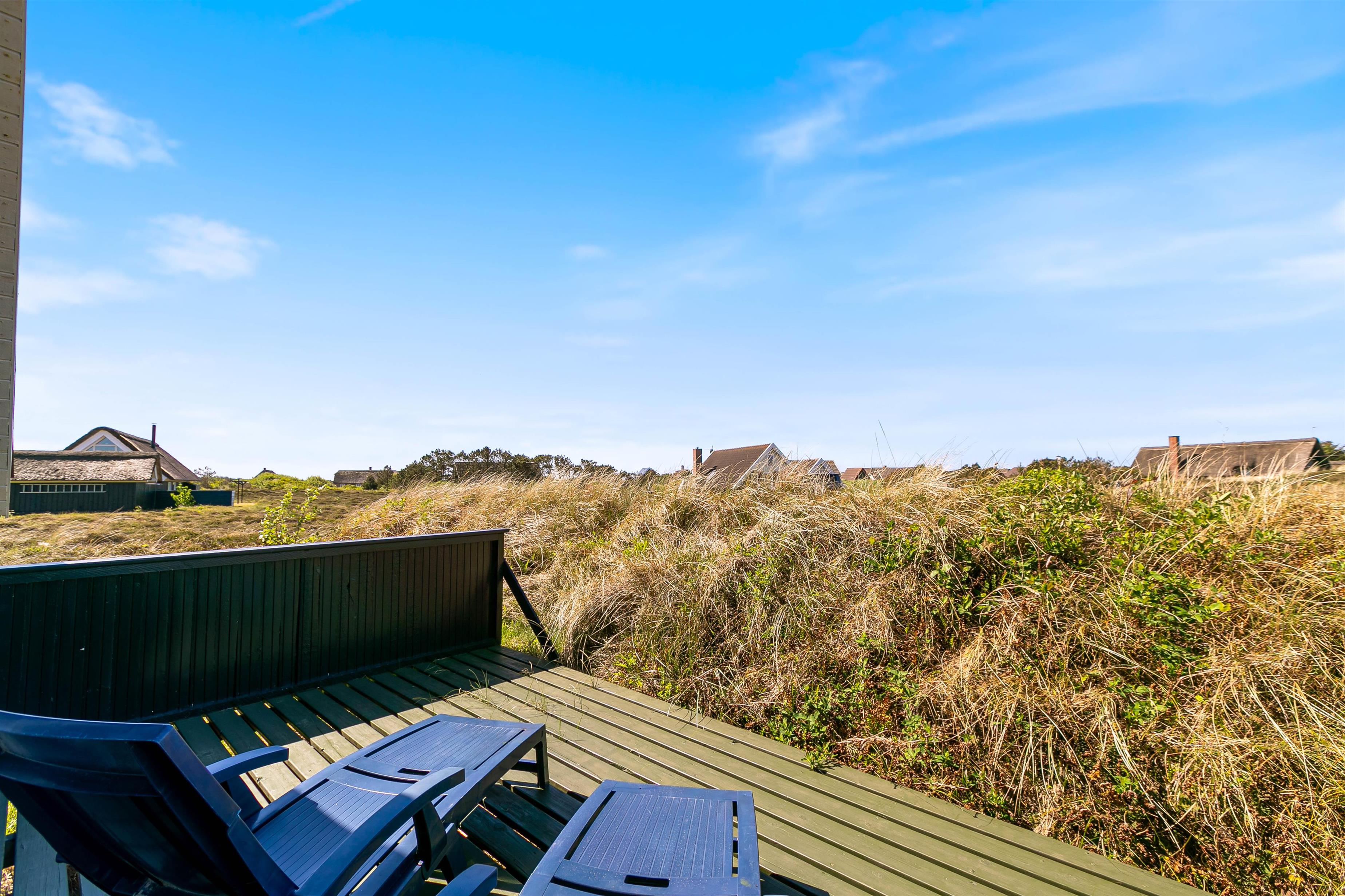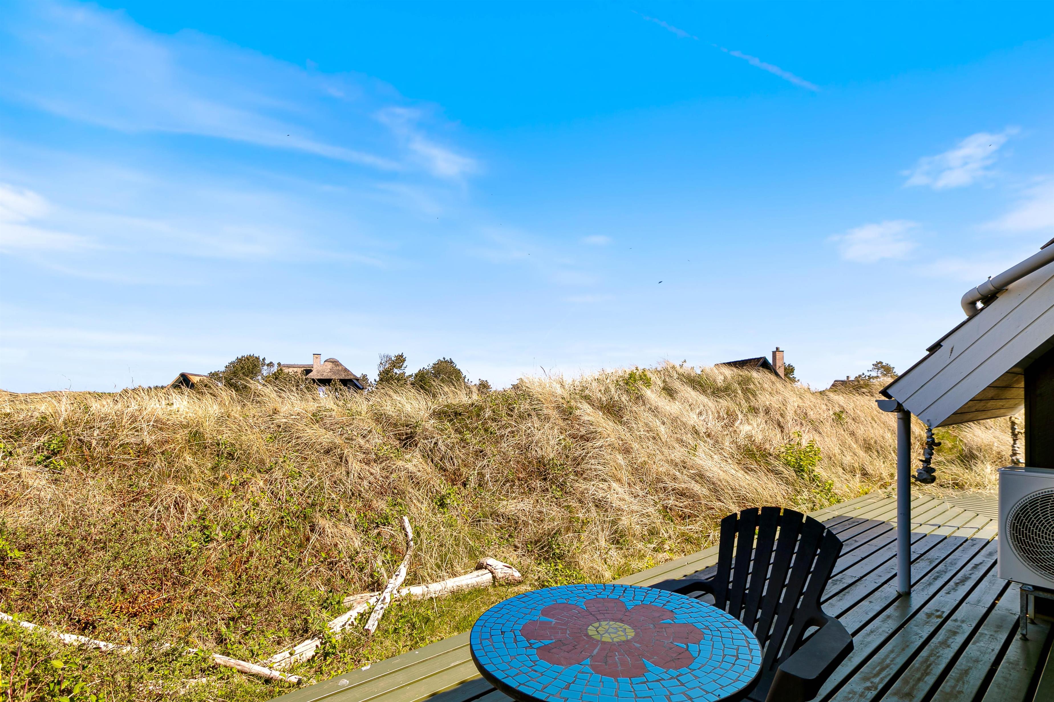 Rundt om feriehuset findes flere hyggelige kroge, og fra stuen har I adgang til ferielejlighedens lukkede terrasse. Duften af den salte havluft og en kop kaffe i hånden, så har I opskriften på den bedste start på dagen. På terrassen har I havemøbler og liggestole til rådighed, og I kan nyde de skønneste solskinstimer direkte på terrassen og nyde udsigten udover det smukke hedeområde.