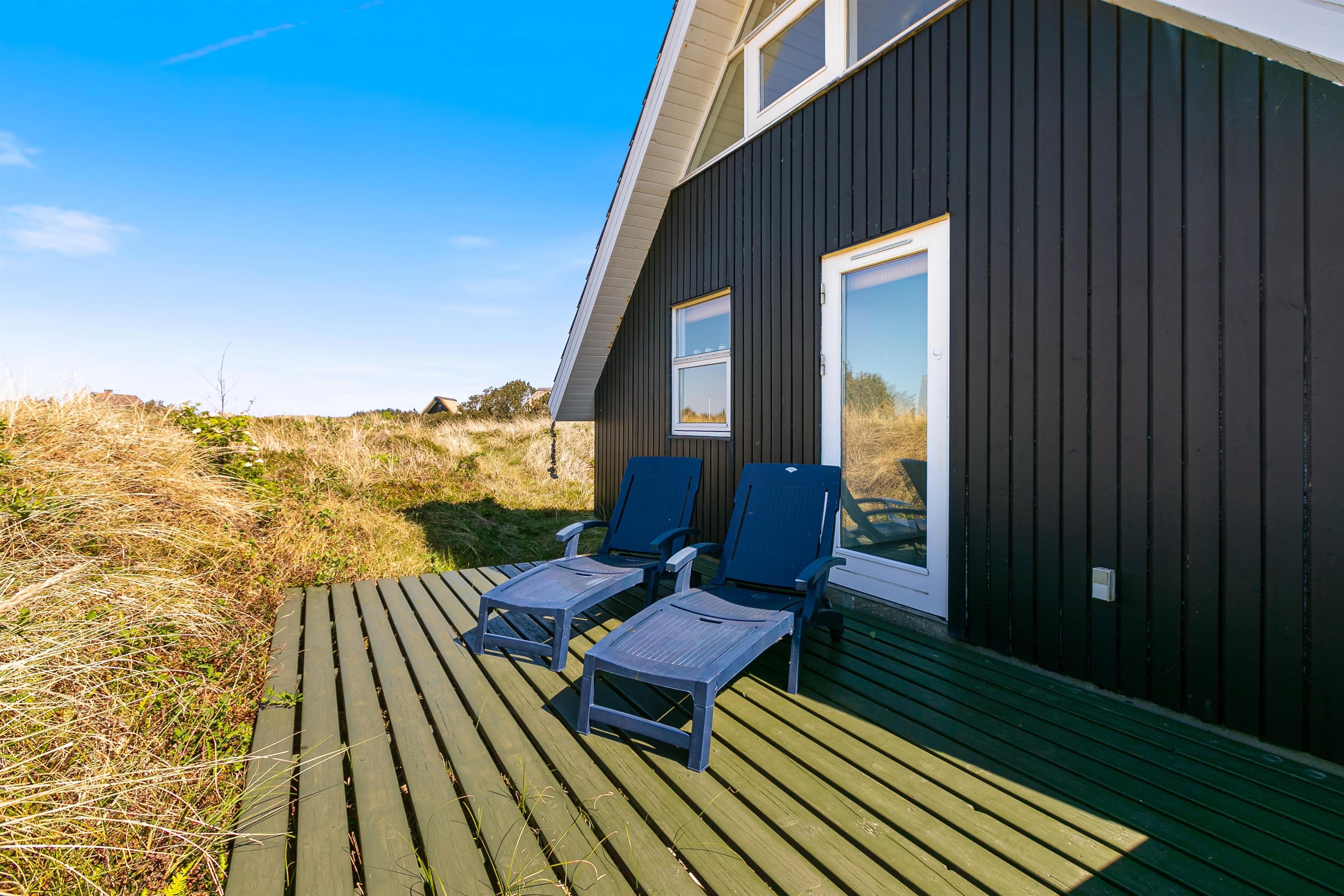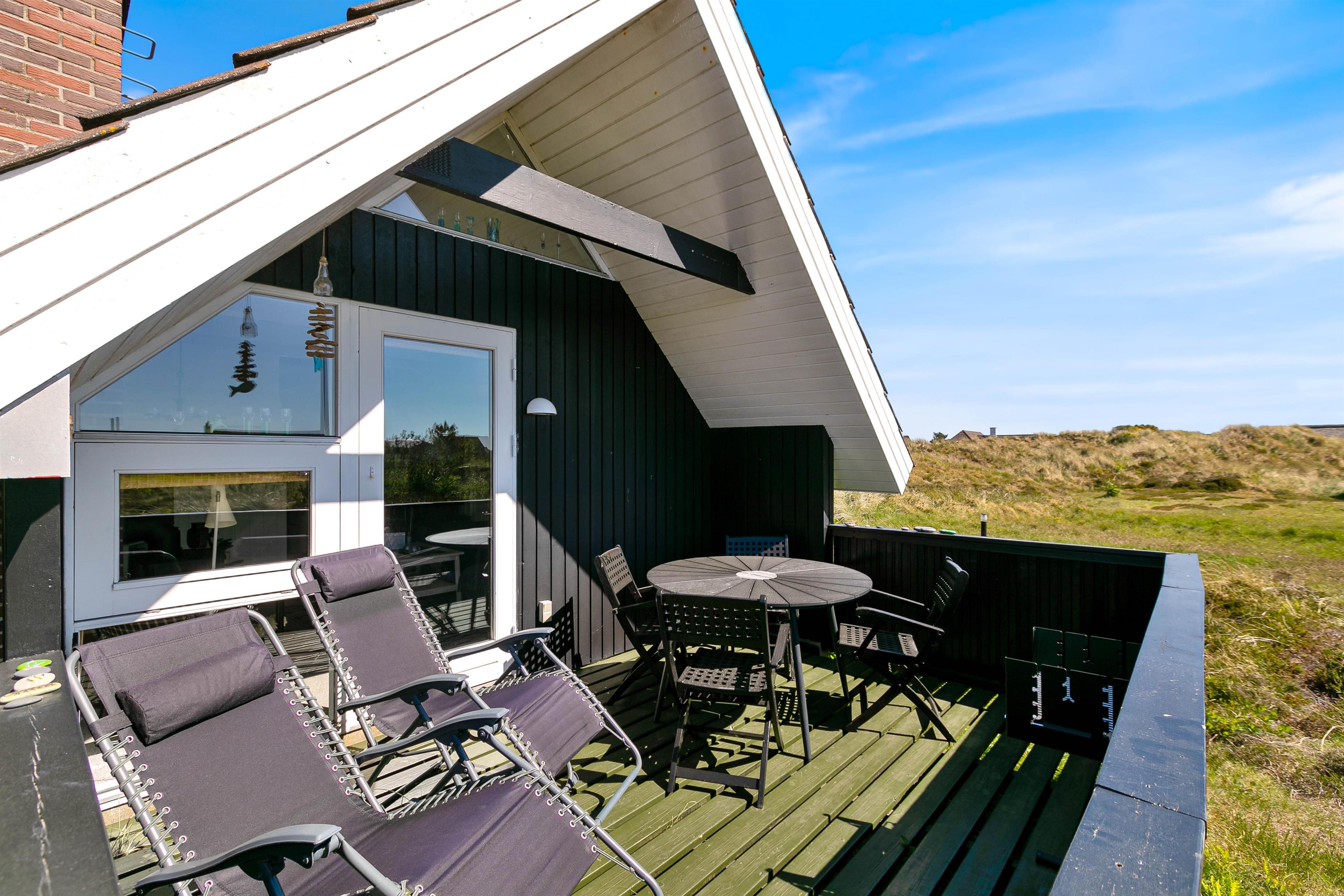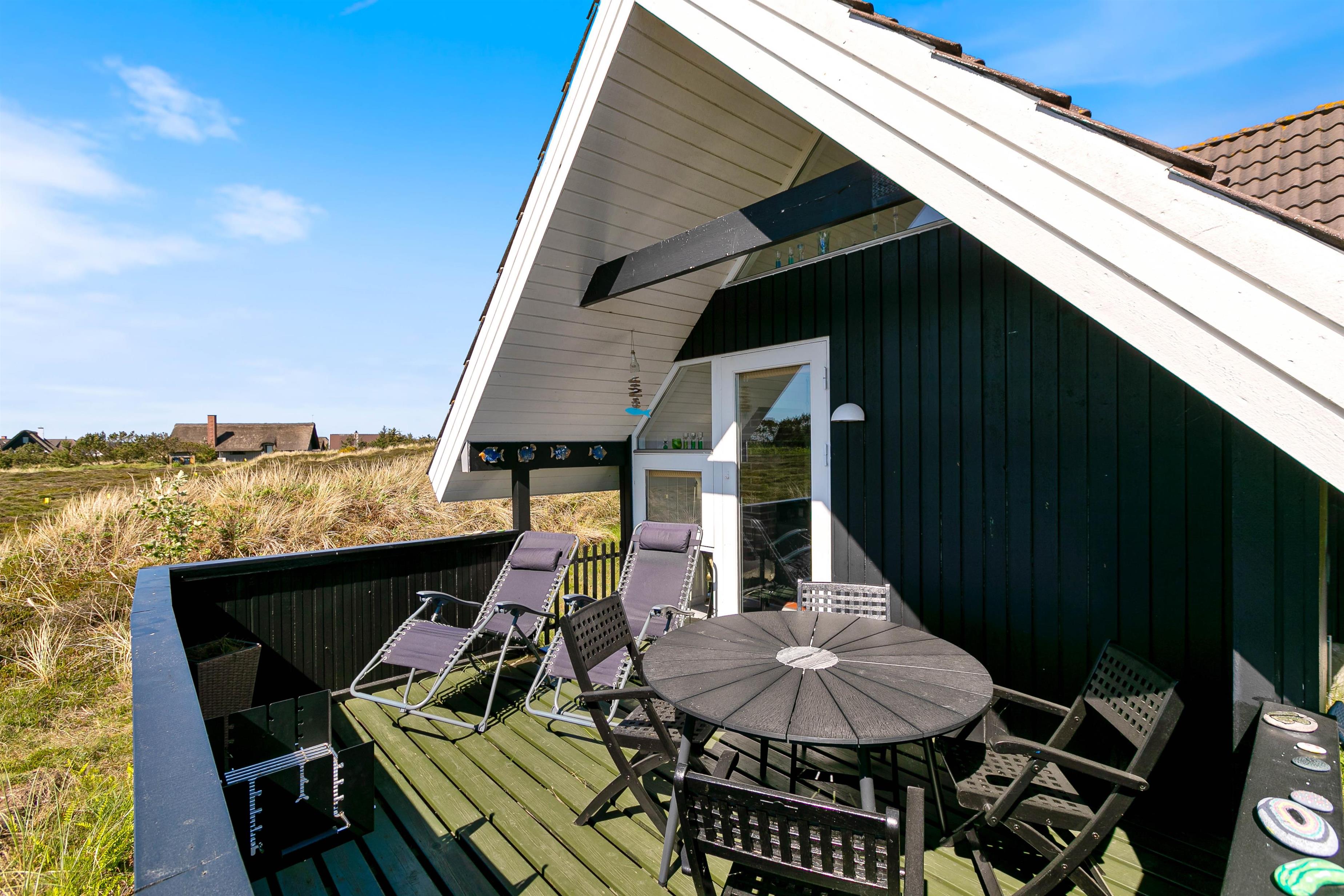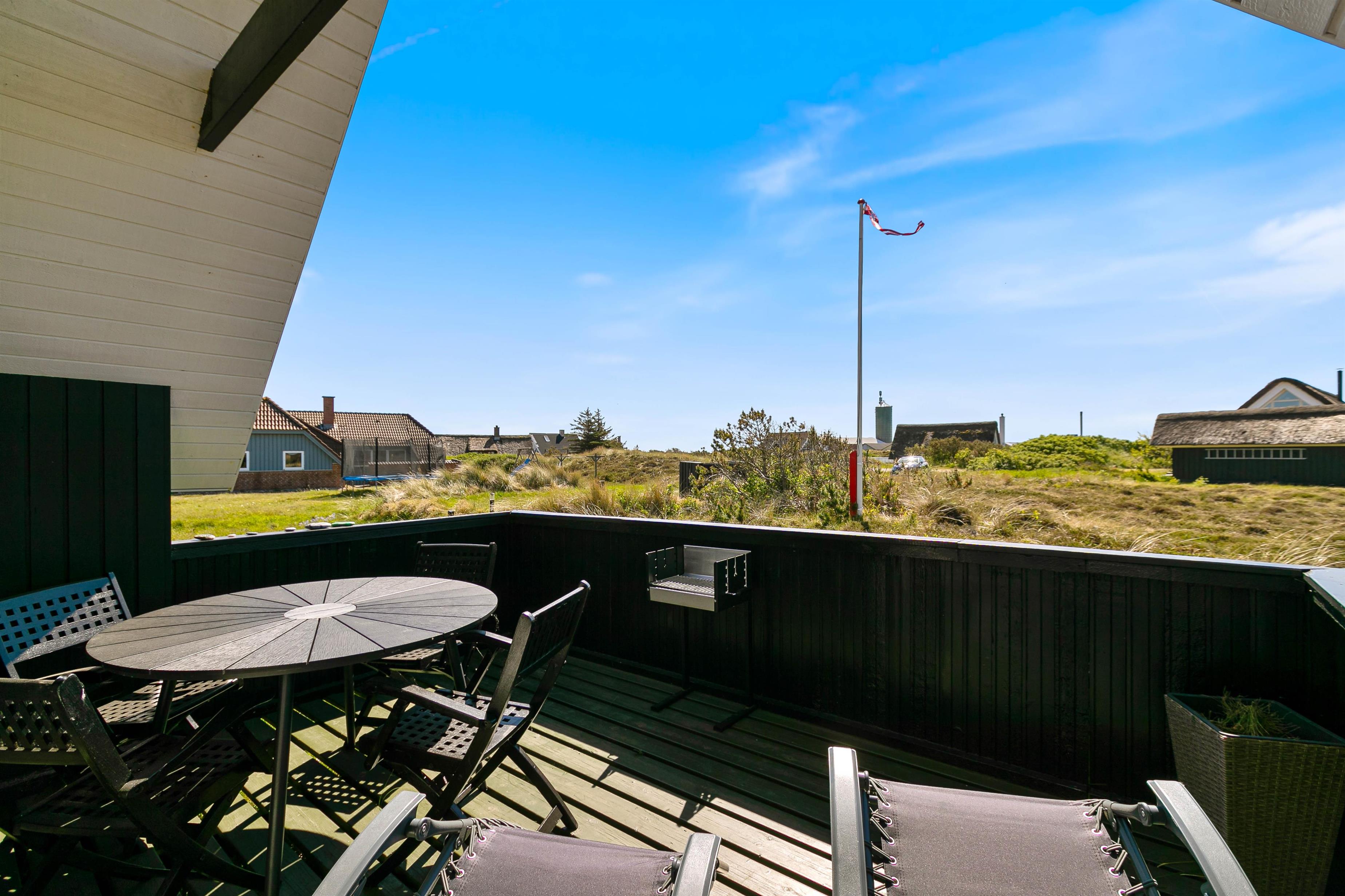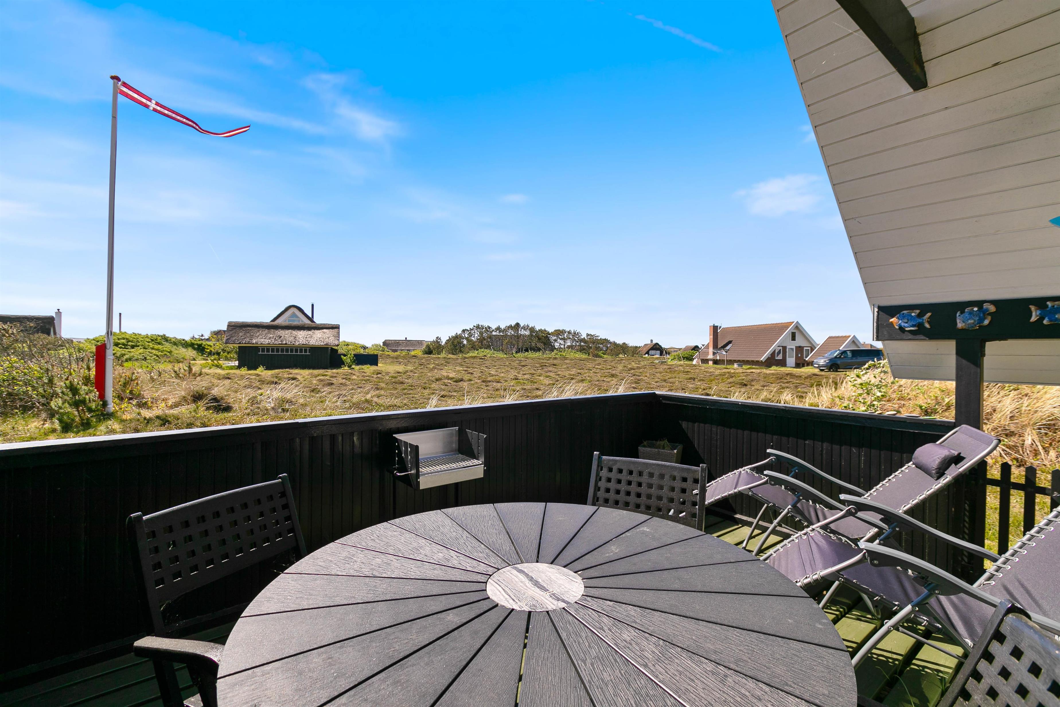 Rundt om feriehuset findes flere hyggelige kroge, og fra stuen har I adgang til ferielejlighedens lukkede terrasse. Duften af den salte havluft og en kop kaffe i hånden, så har I opskriften på den bedste start på dagen. På terrassen har I havemøbler og liggestole til rådighed, og I kan nyde de skønneste solskinstimer direkte på terrassen og nyde udsigten udover det smukke hedeområde.