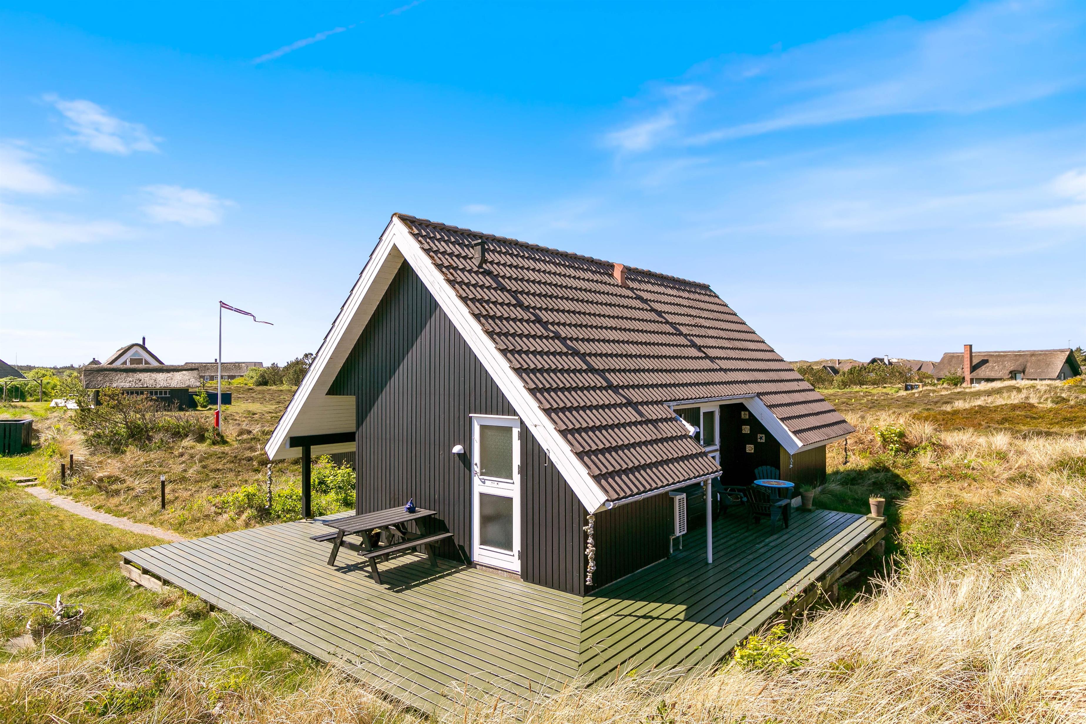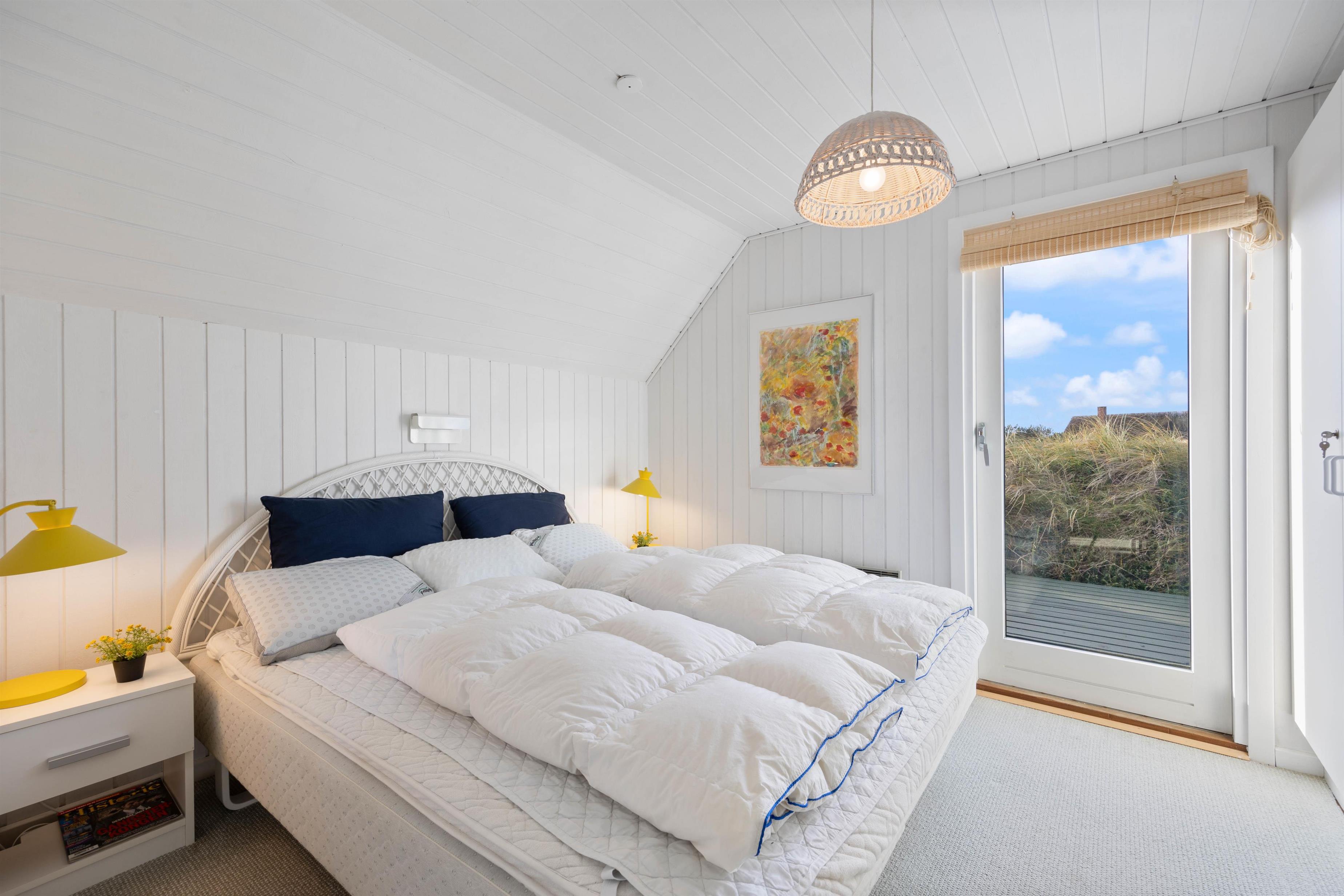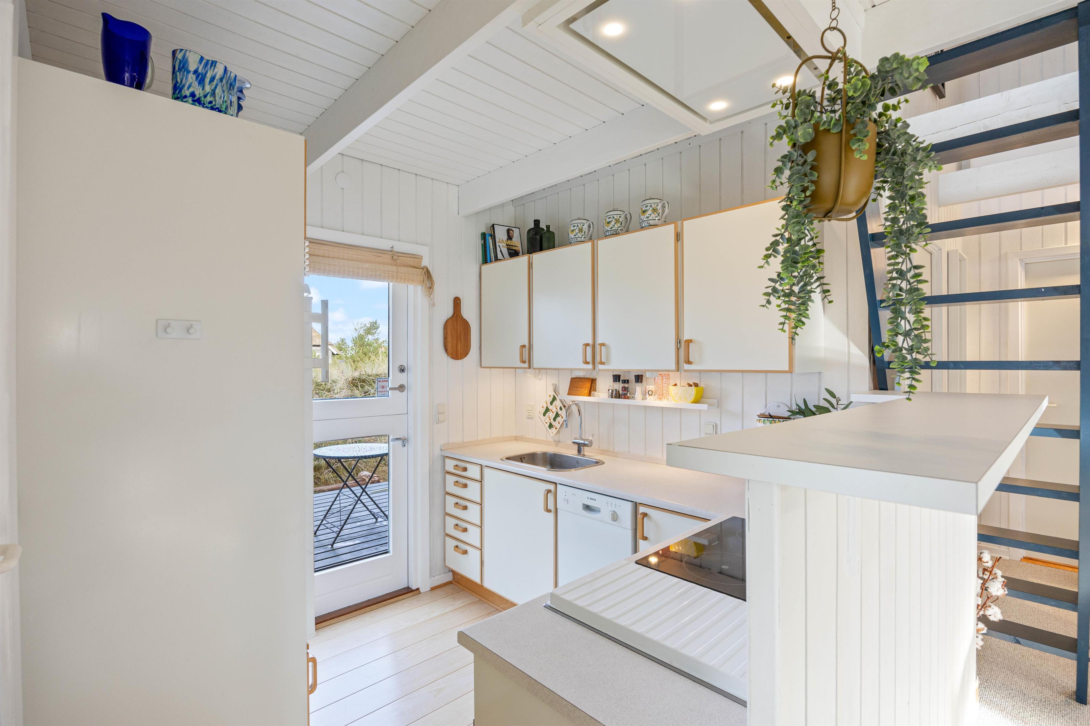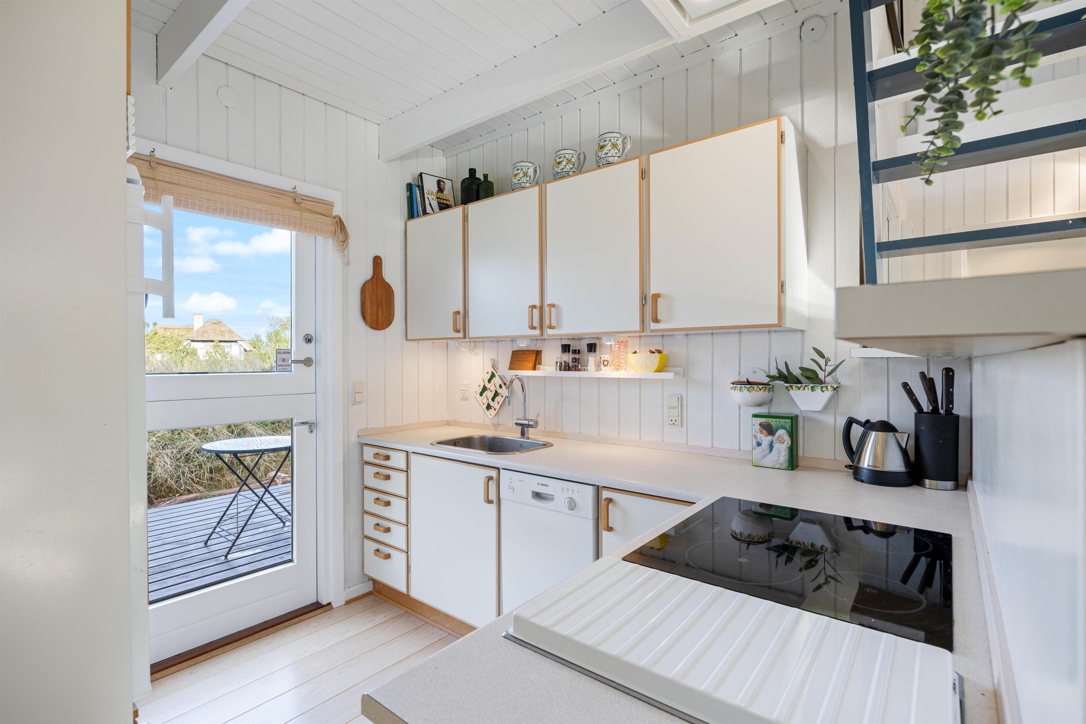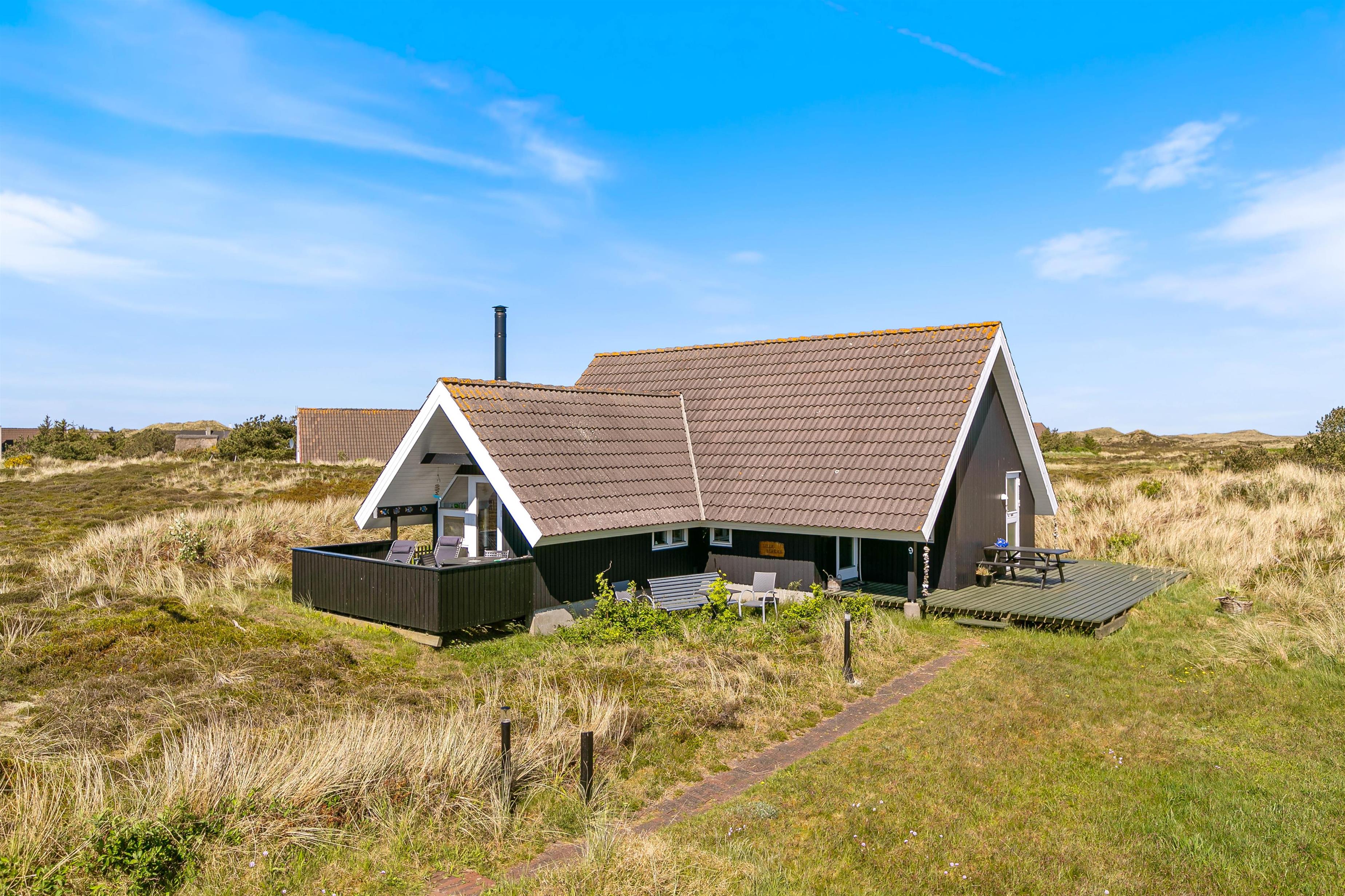 Dette sommerhus har lige det, der skal til for at få en afslappet ferie ved Vesterhavet. Lyse trævægge, komfortable møbler samt klassiske sommerhusmøbler og en brændeovn, som både sørger for dejlig varme og afslappet stemning.