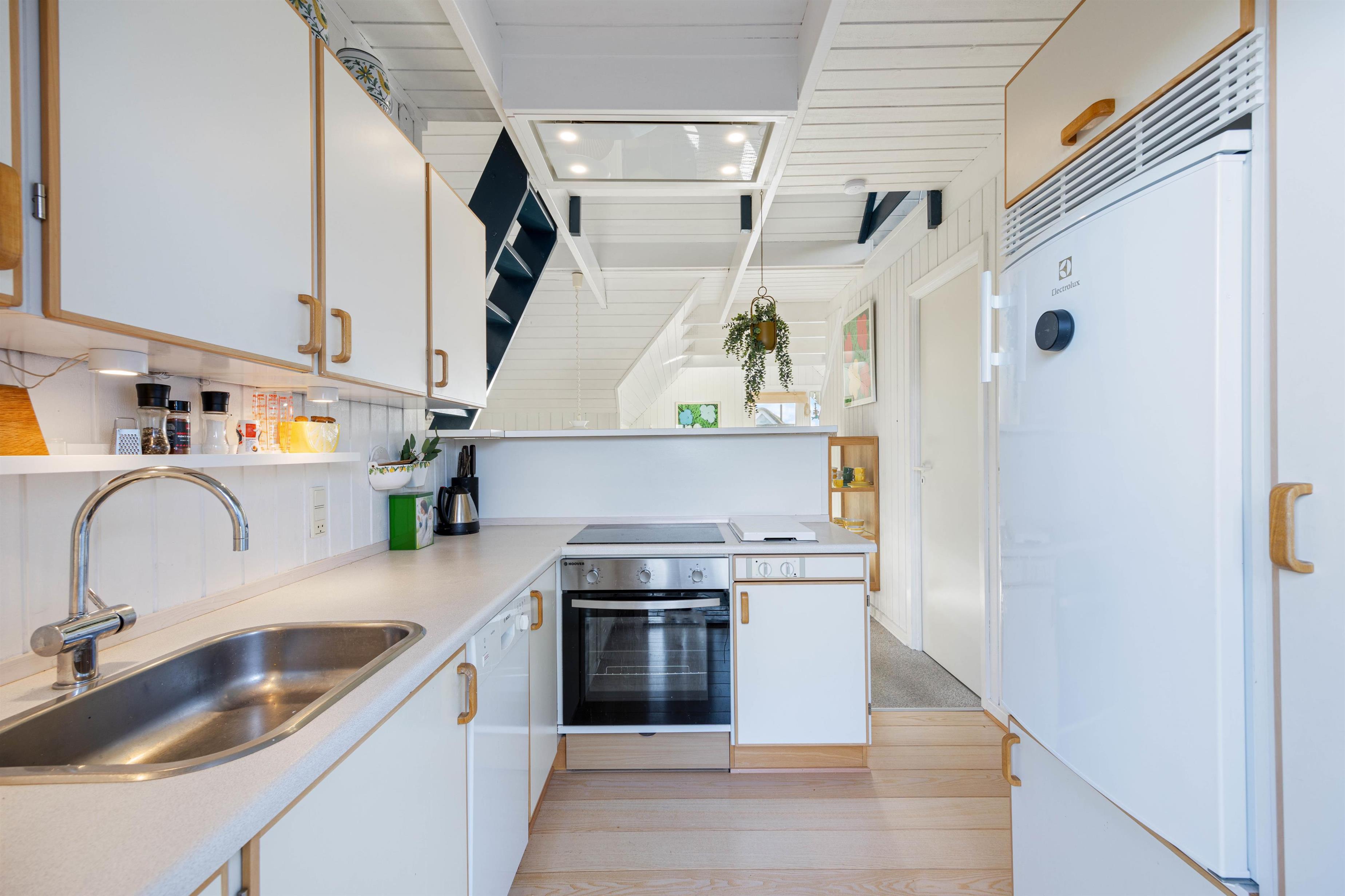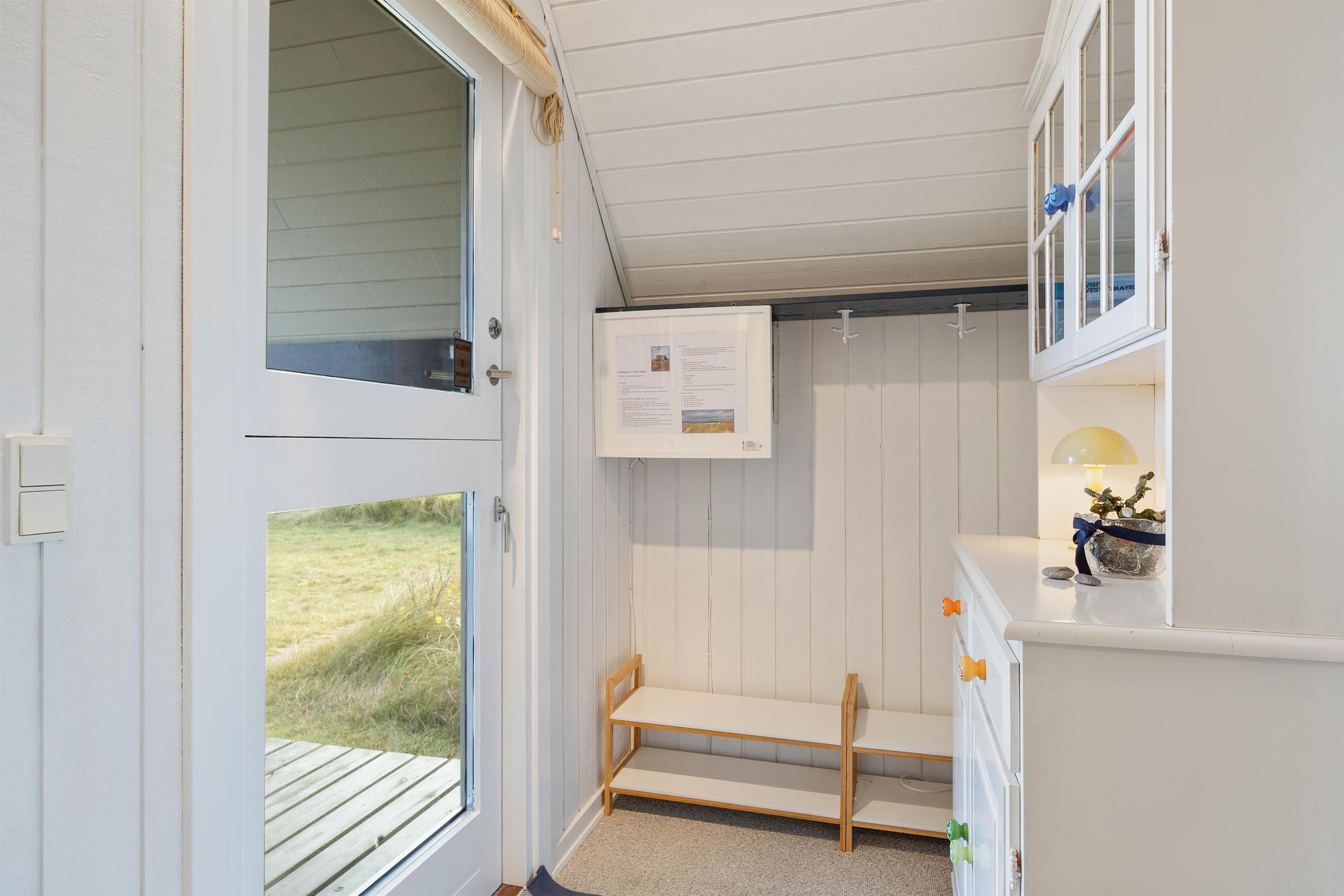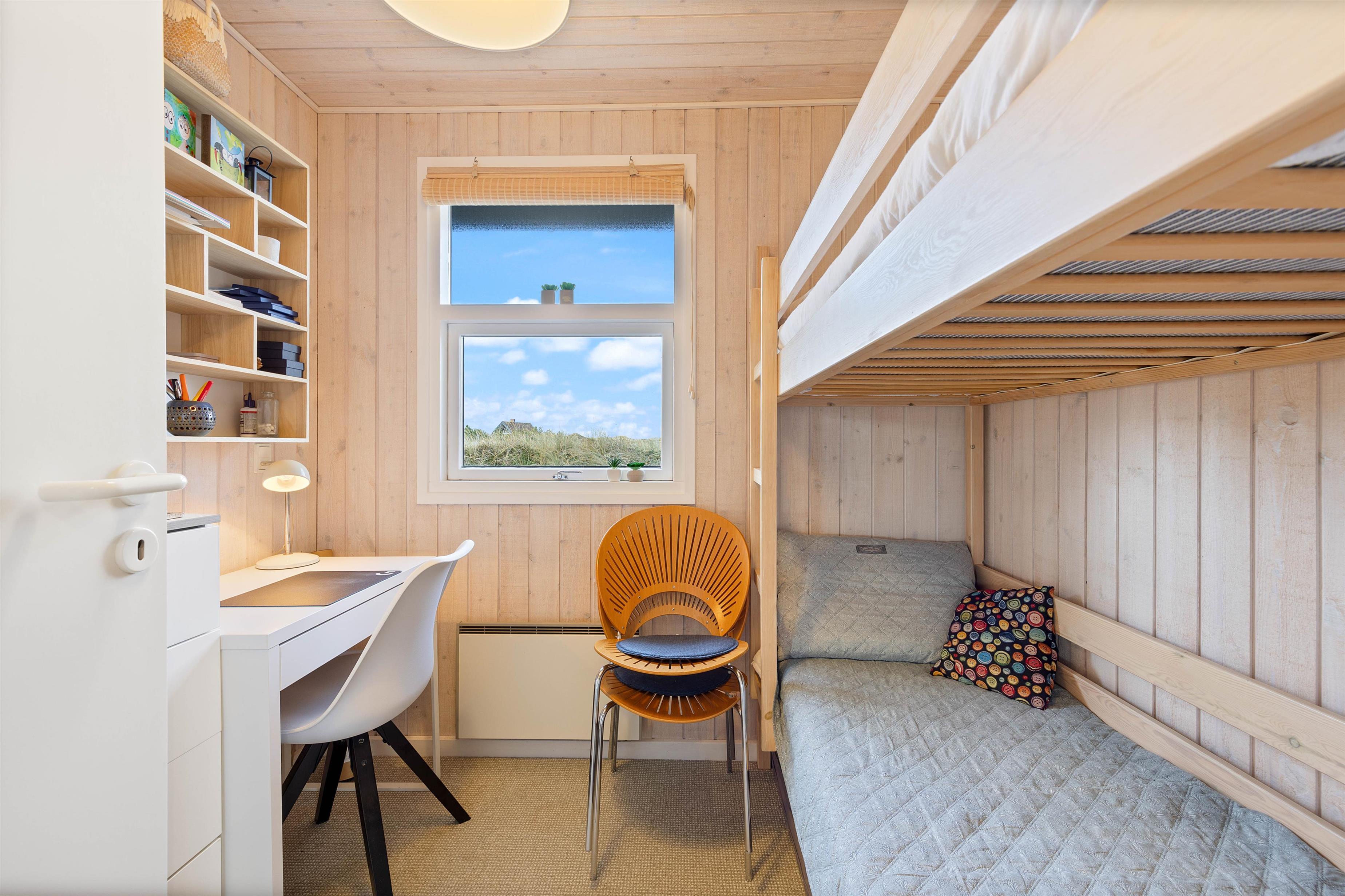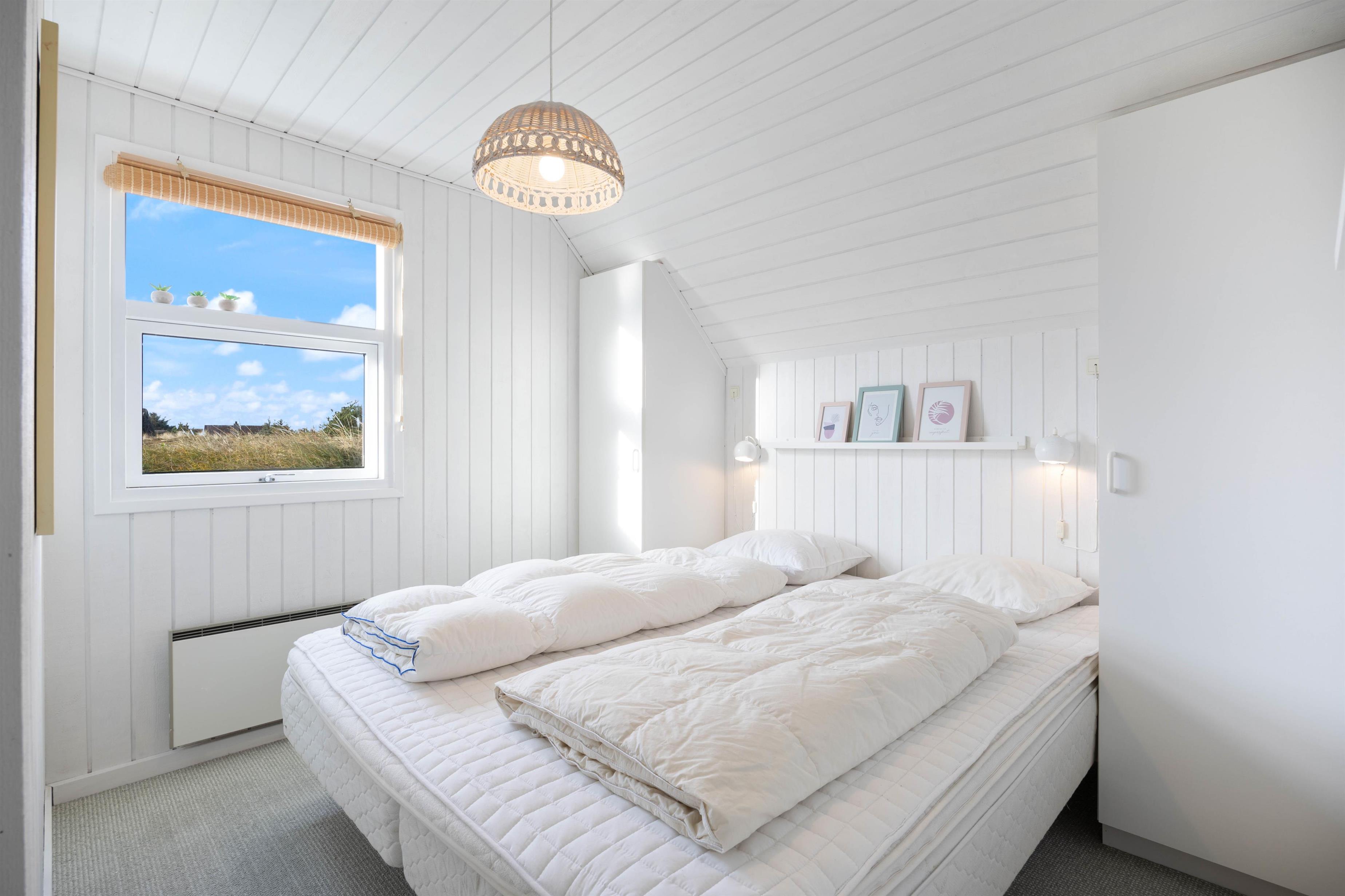 Dette sommerhus har lige det, der skal til for at få en afslappet ferie ved Vesterhavet. Lyse trævægge, komfortable møbler samt klassiske sommerhusmøbler og en brændeovn, som både sørger for dejlig varme og afslappet stemning.
