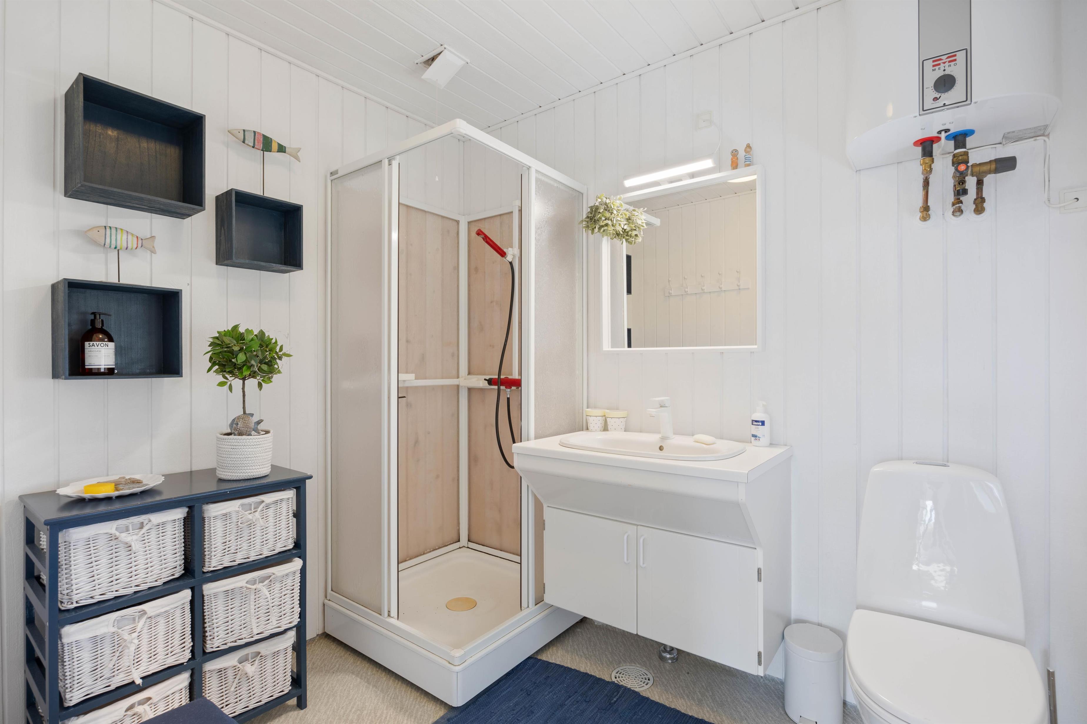 Sommerhuset på Nymandsbjerg 9 rummer plads til fire personer, men har tre soveværelser, to med dobbeltseng og ét med en køjeseng på 70x185cm. Fra entreen træder man ind i spiseafdelingen, der forbinder køkken og stue. I køkkenet kan I tilbringe mange timer sammen med fælles madlavning og ferieplanlægning, mens den står på afslapning foran brændeovnen i stuen. Slå jer ned i sofaen med jeres yndlingsfilm eller en god bog i lænestolen. Fra stuen har I adgang til terrassen.