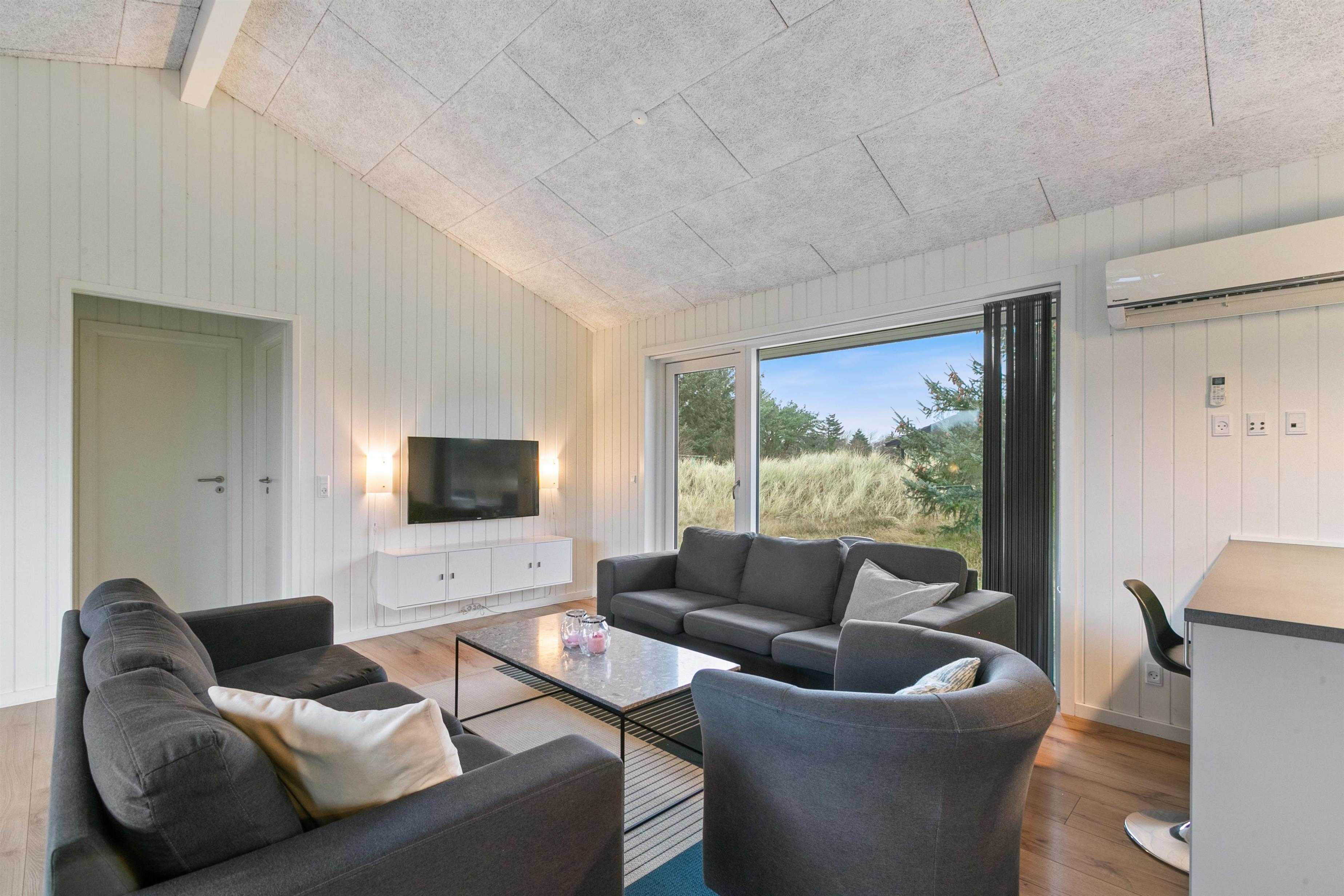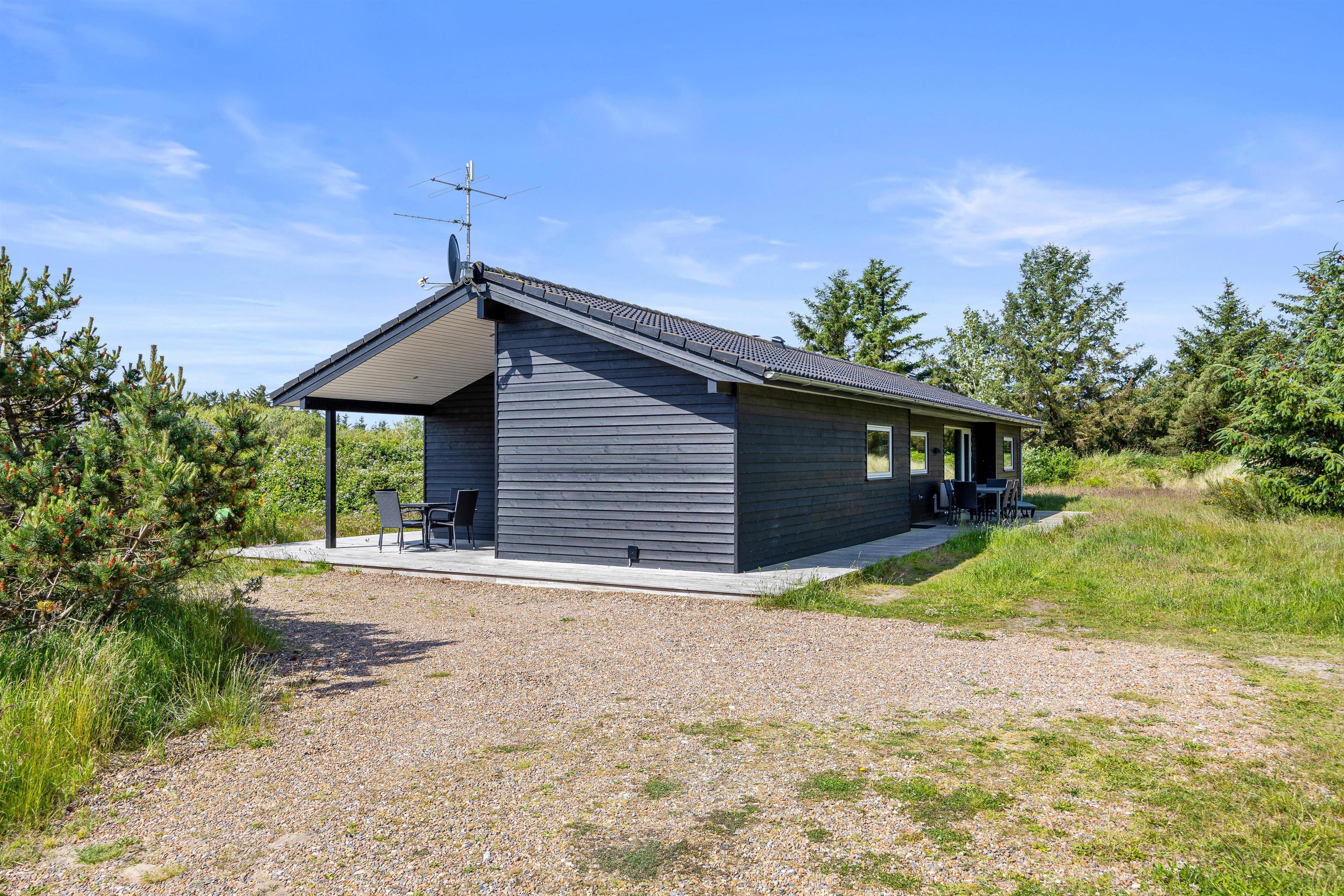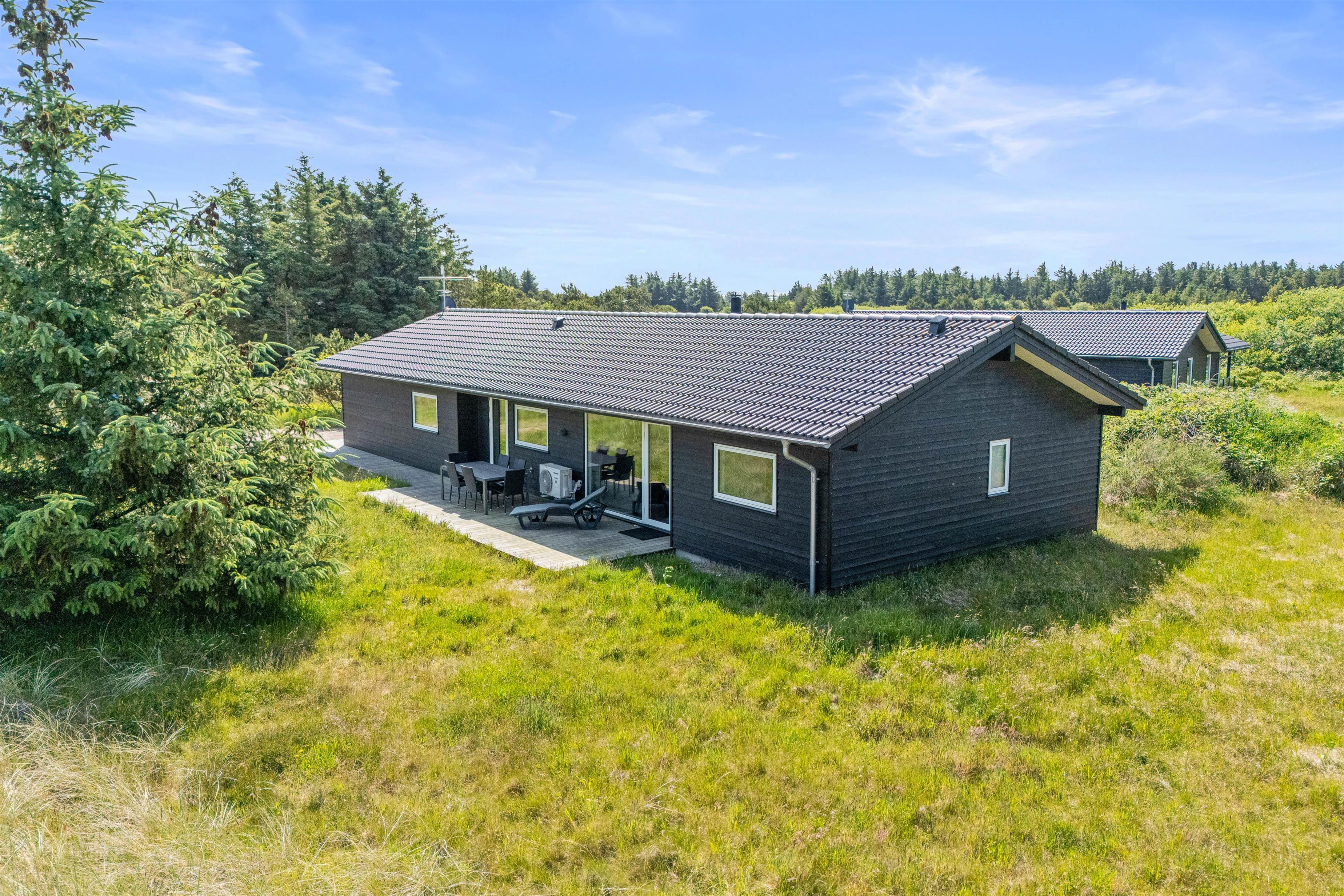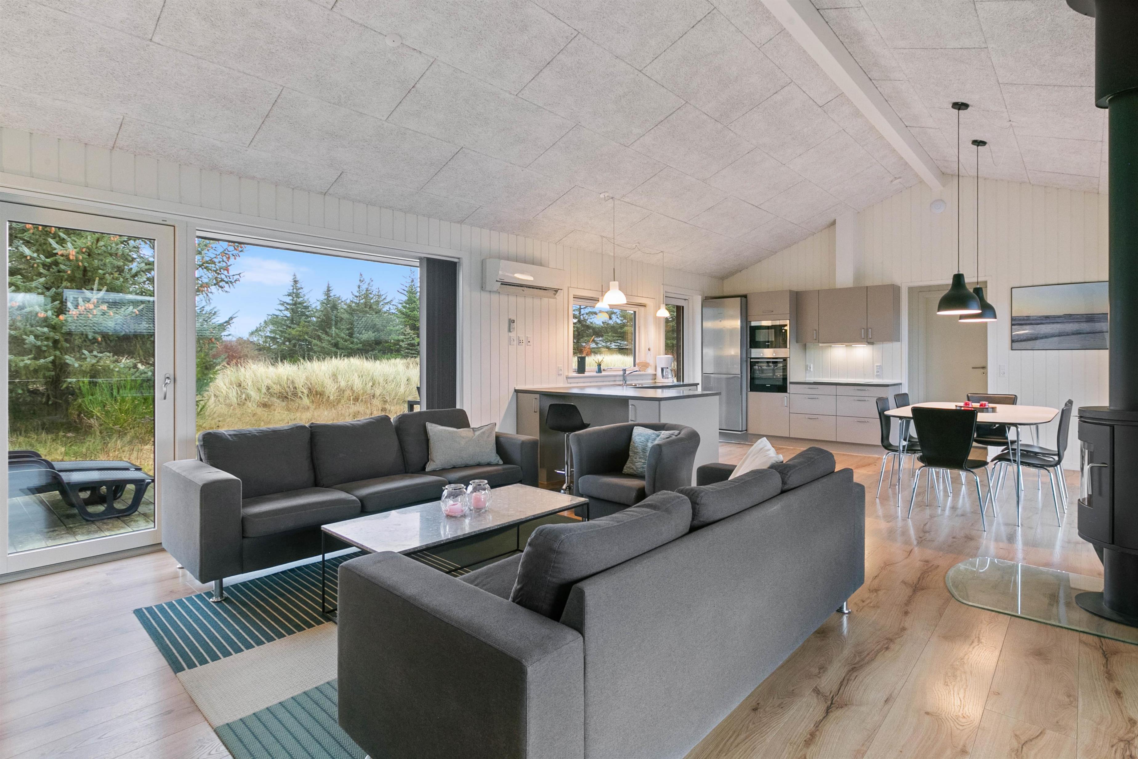 Ønsker man en fredfyldt ferie i et moderne feriehus i Bjerregård, så er dette hus et godt valg. Det er bygget i gode materialer og grunden er godt beskyttet af træer mod vest. Der er 3 gode værelser og 2 lækre badeværelser med gulvvarme, huset er velisoleret og har en varmepumpe, så energiomkostningerne kan holdes lave. Ud over en god fladskærm i huset er der også en brændeovn, som er fantastisk at varme sig ved efter en lang travetur langs Vesterhavet med børn og hund. På det største af de 2 badeværelser finder I både sauna og spa, som byder på afslappende wellness-dage. Få eventuelt varmen i saunaen efter en frisk dukkert i Vesterhavet, hvilket gør godt for både krop og sjæl.
