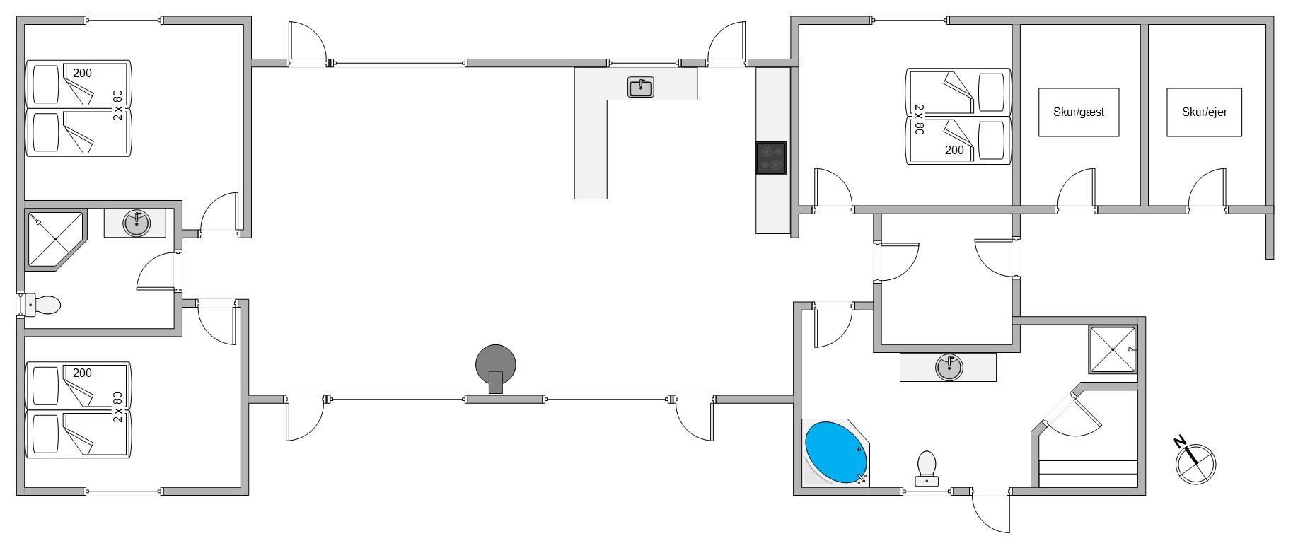 Det store og veludstyrede køkkenalrum er hjertet af huset, hvor I kan samles om madlavningen, filmhygge i sofaen eller brætspilsaftener. Tænd op i brændeovnen og nyd dens knitrende flammer i baggrunden, mens I rigtig feriehygger alle sammen.
